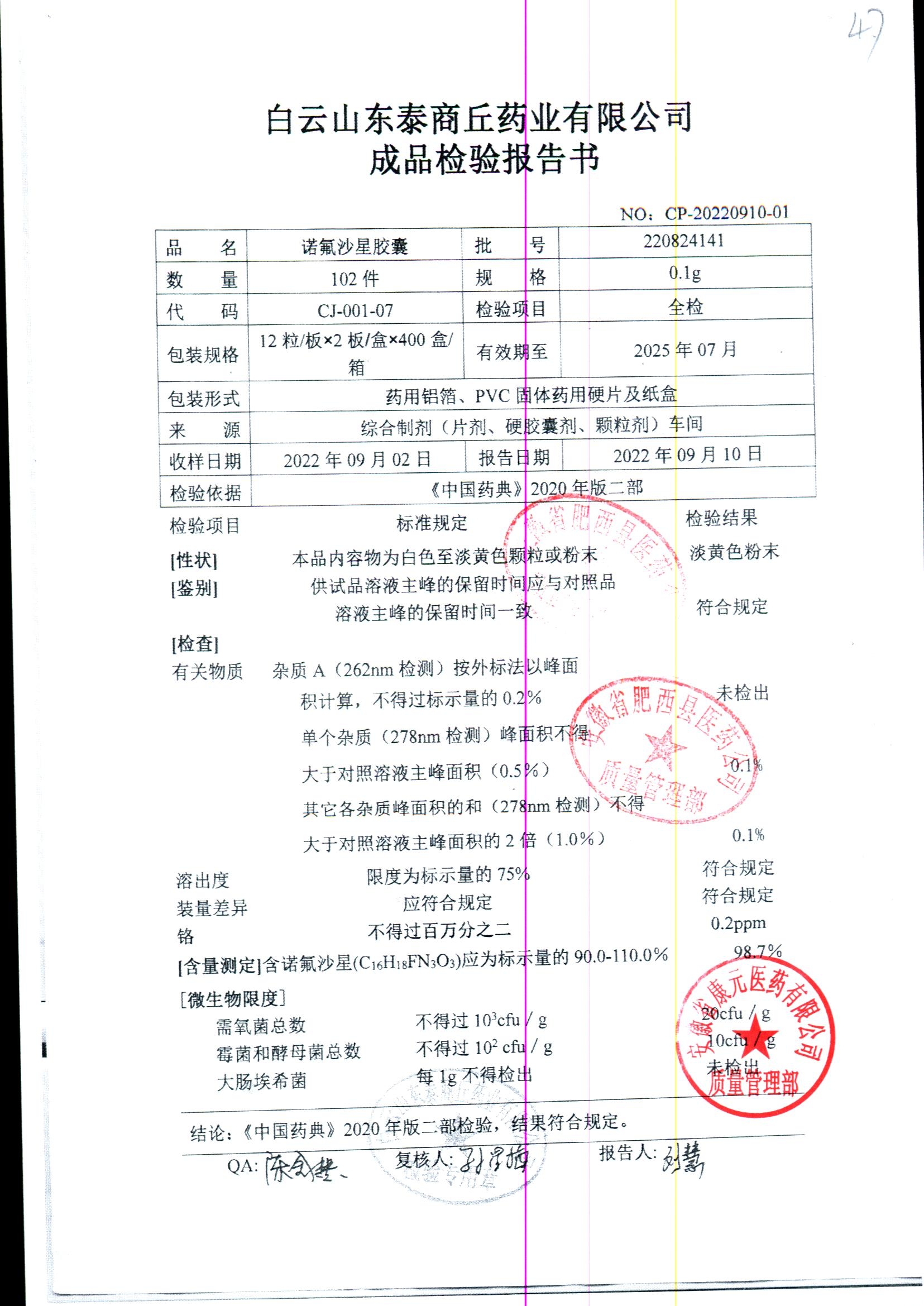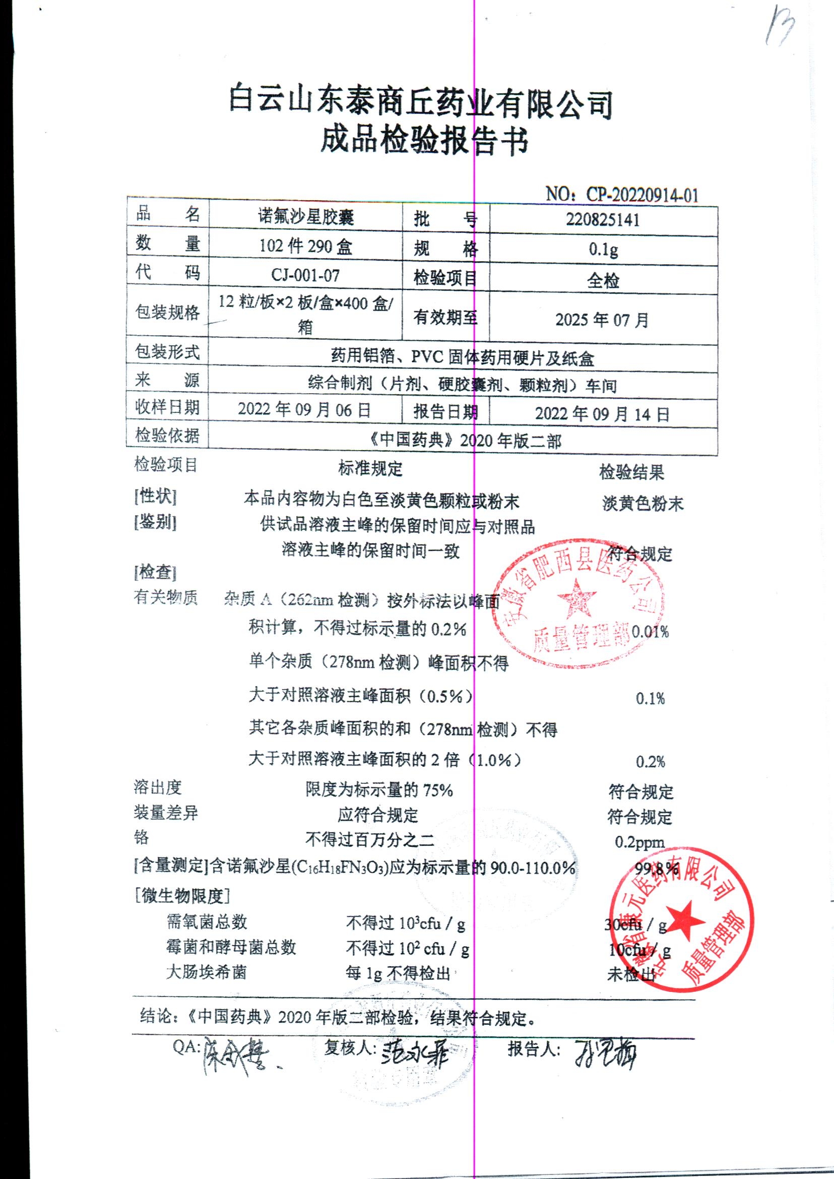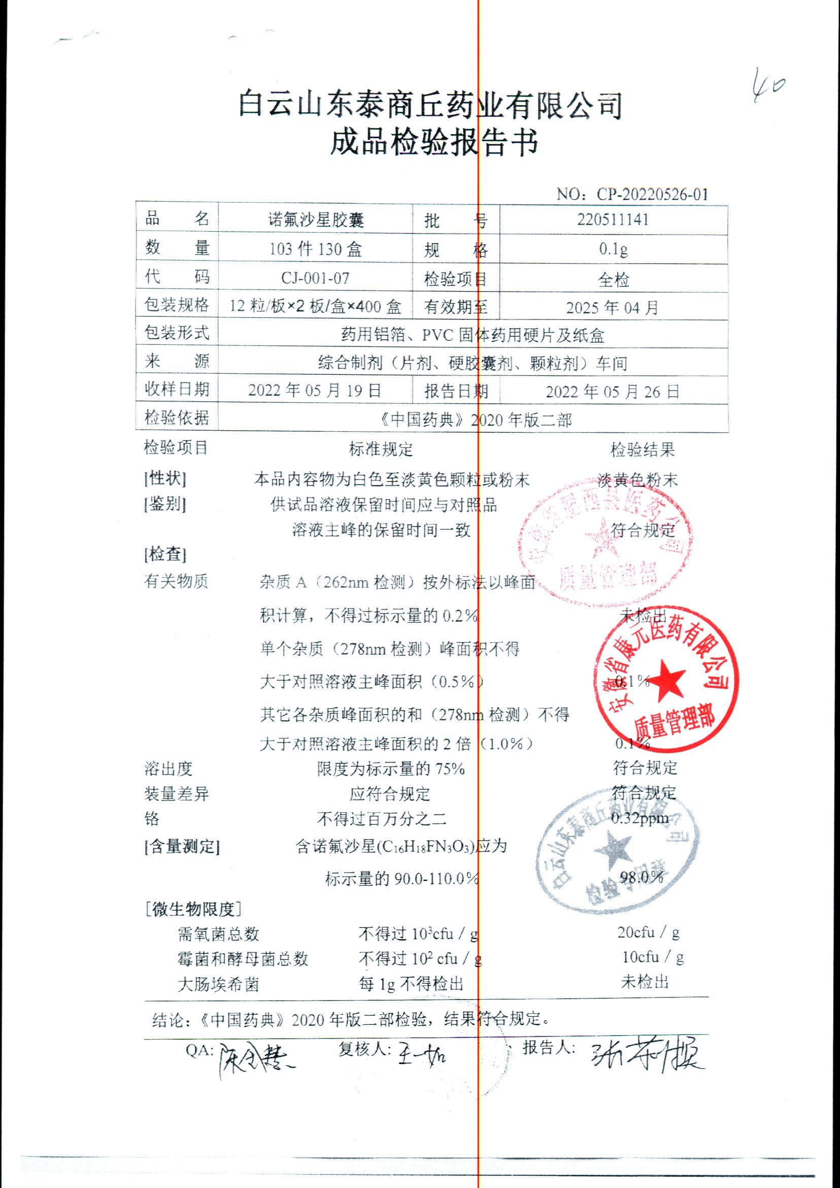 诺氟沙星胶囊 | 0.1g*24粒 | 220824141 | 查看详情 |