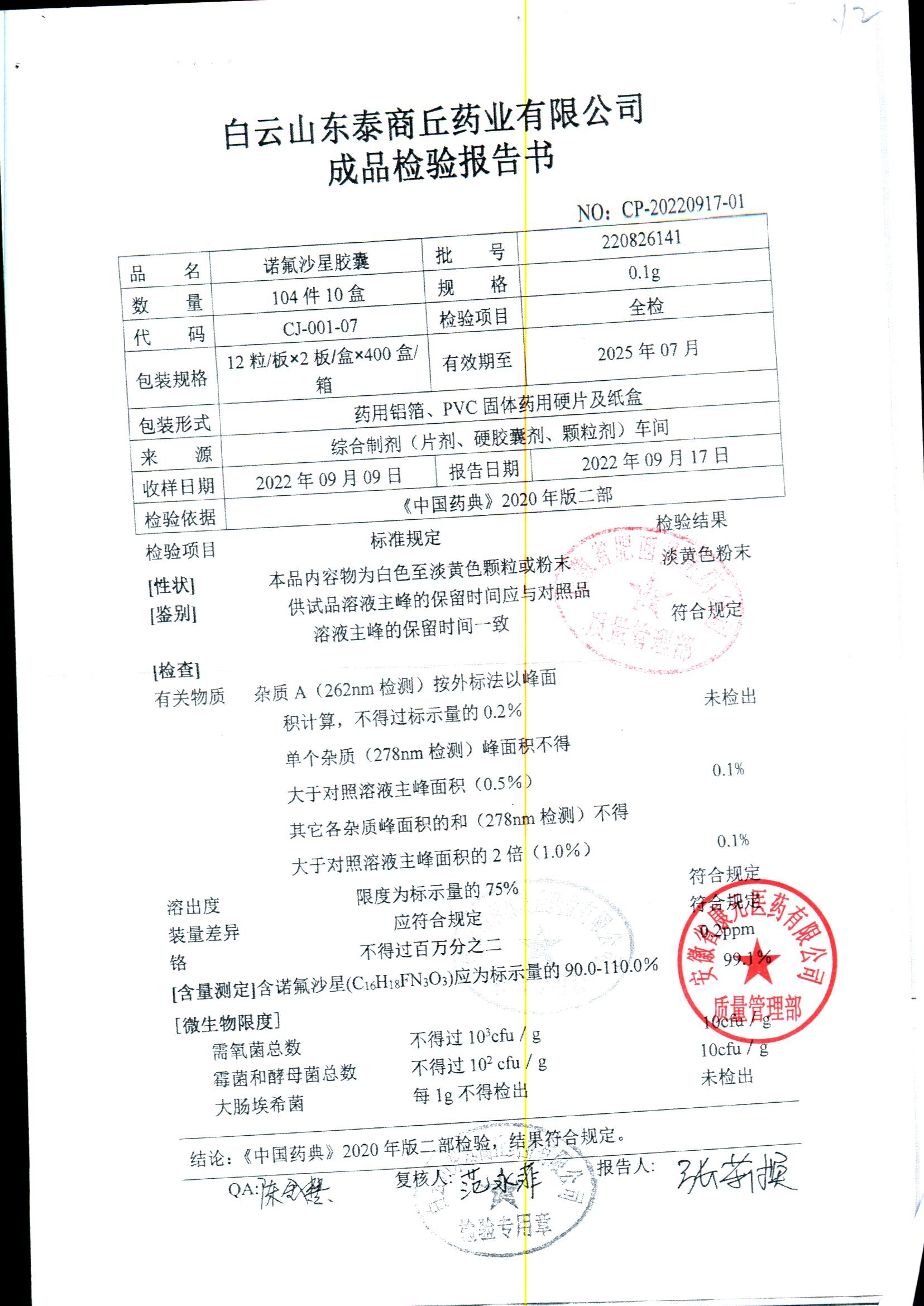 诺氟沙星胶囊 | 0.1g*24粒 | 220826141 | 查看详情 |