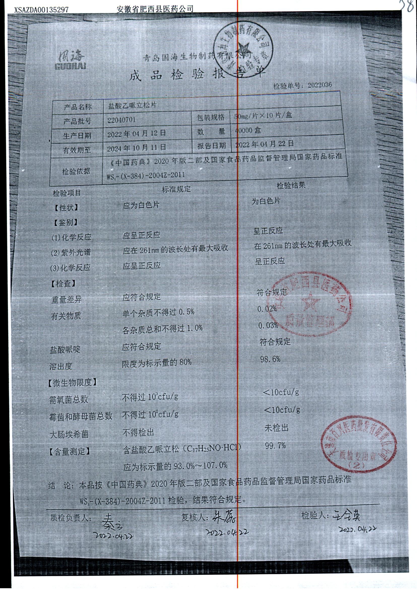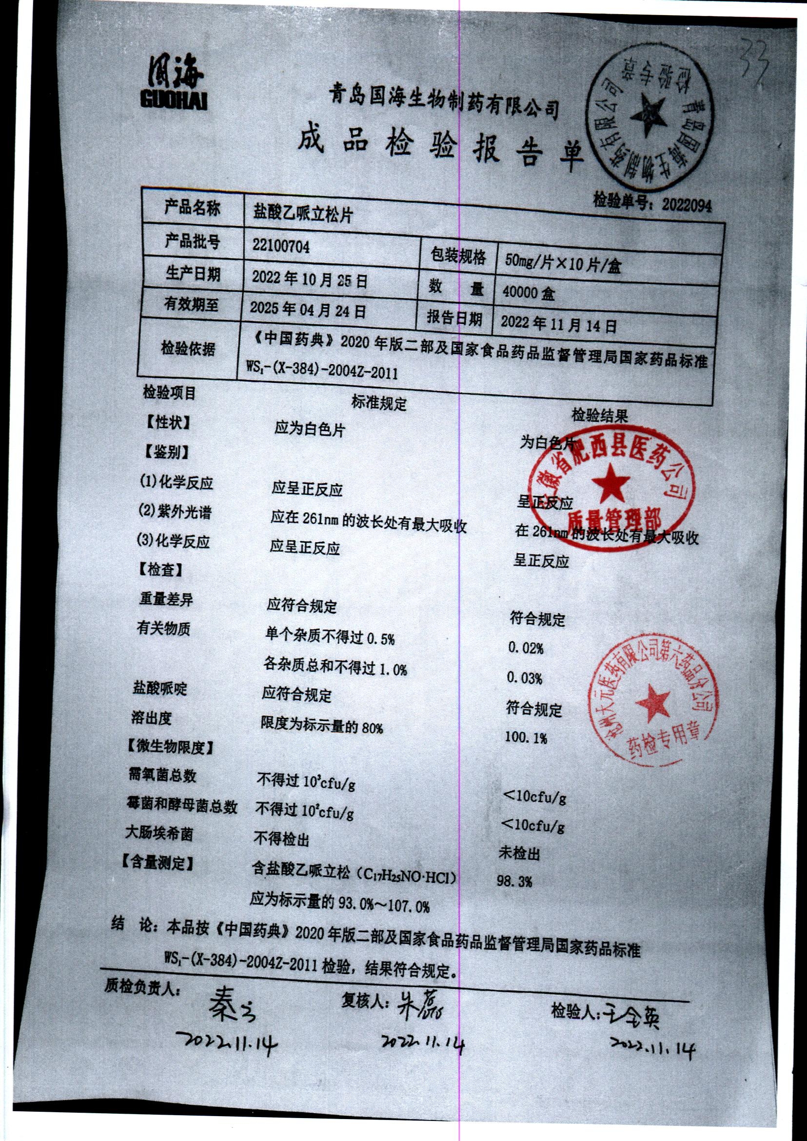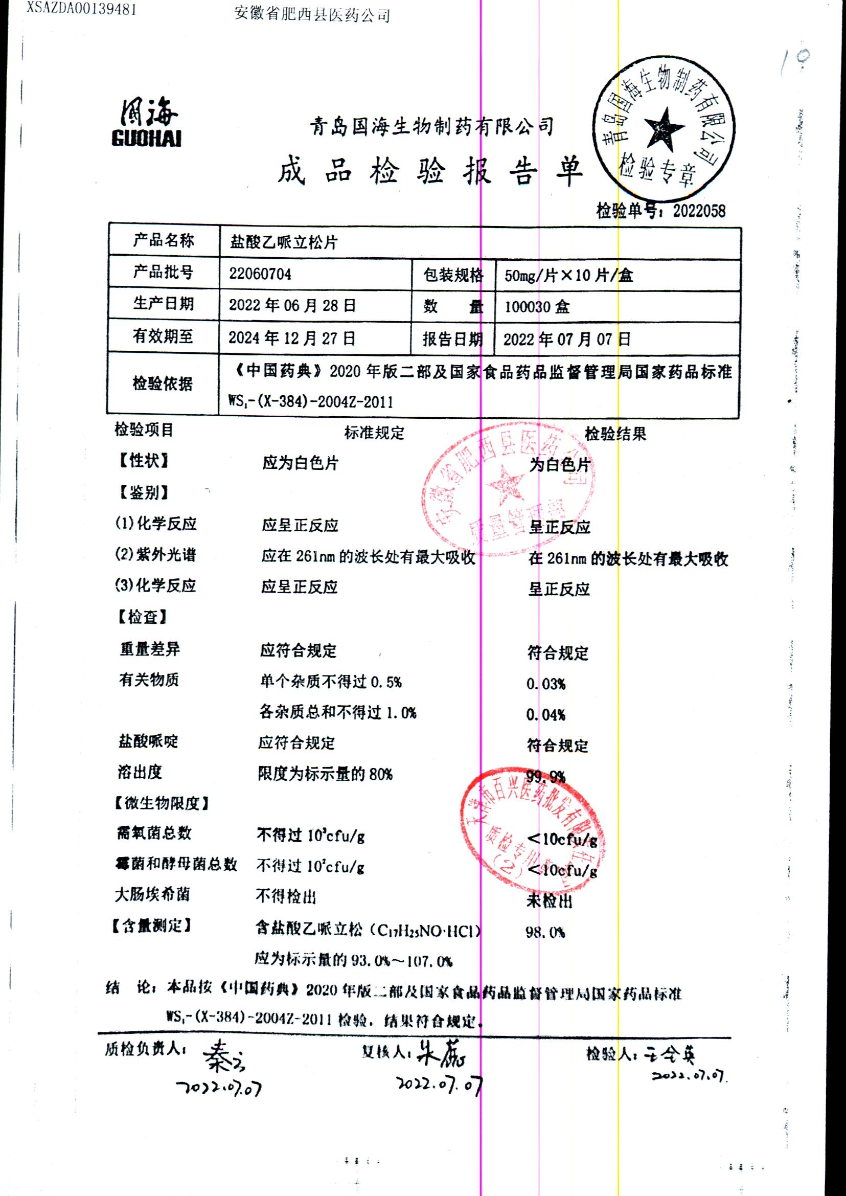 盐酸乙哌立松片 | 50mg*10片 | 22060704/1 | 查看详情 |