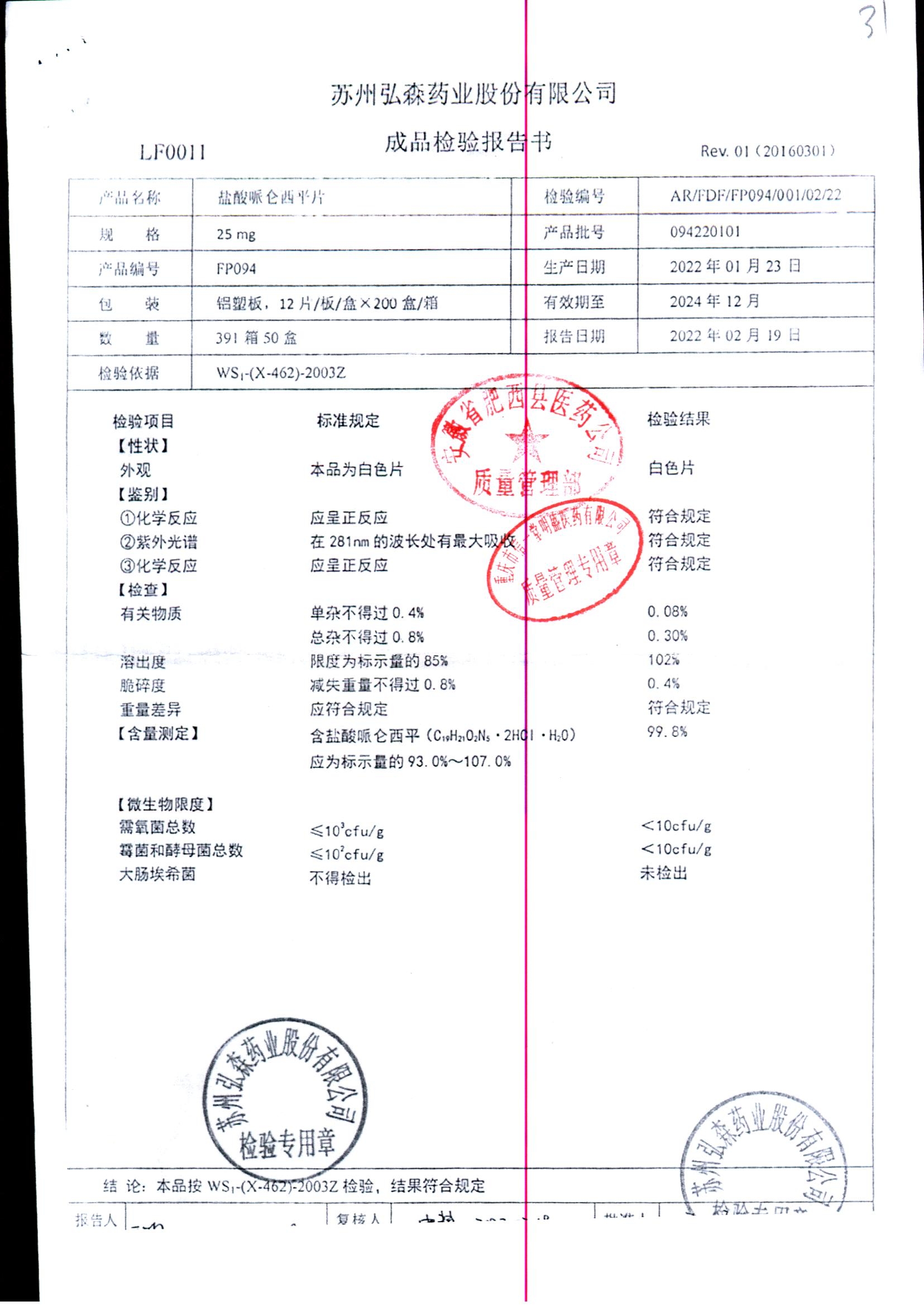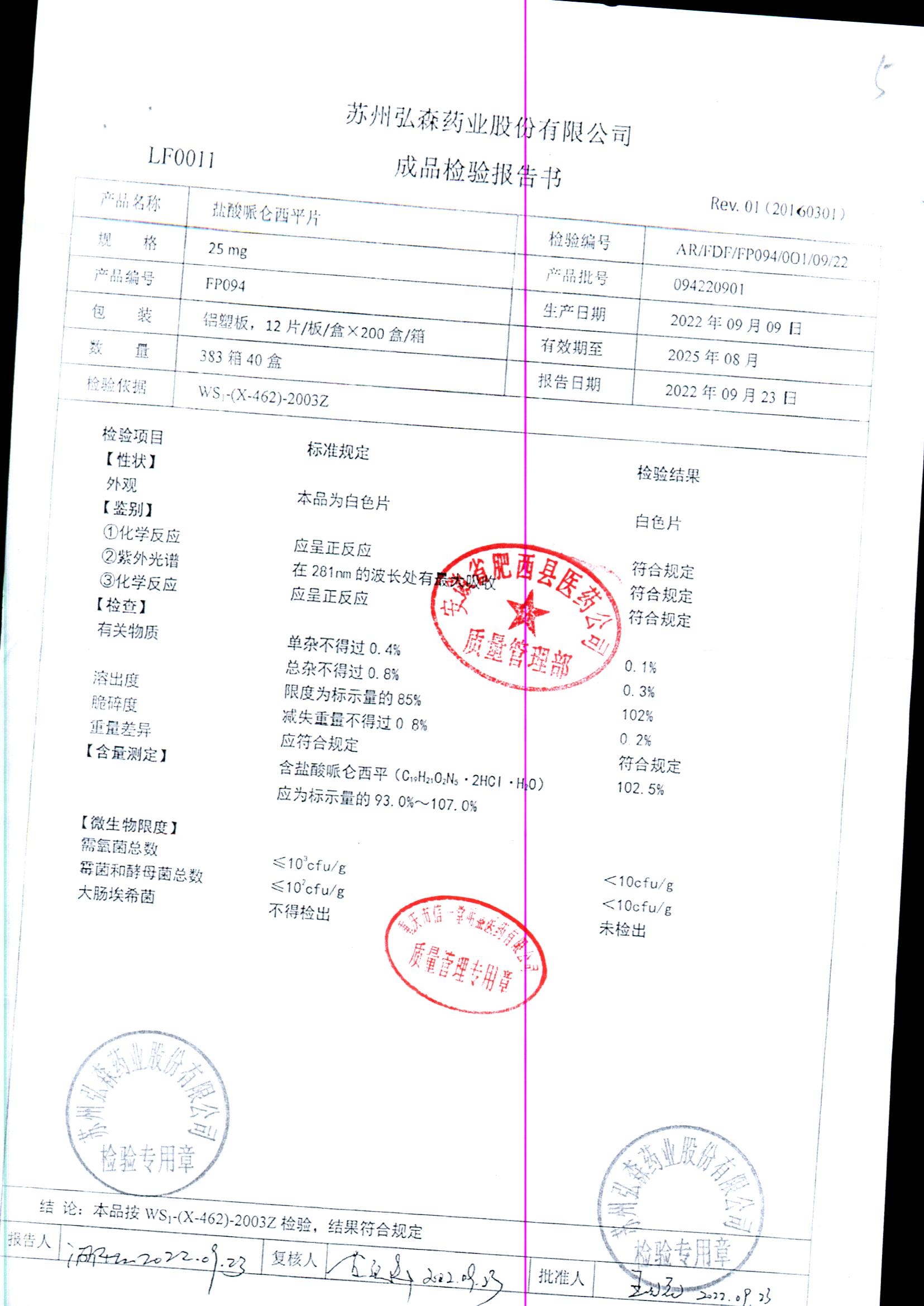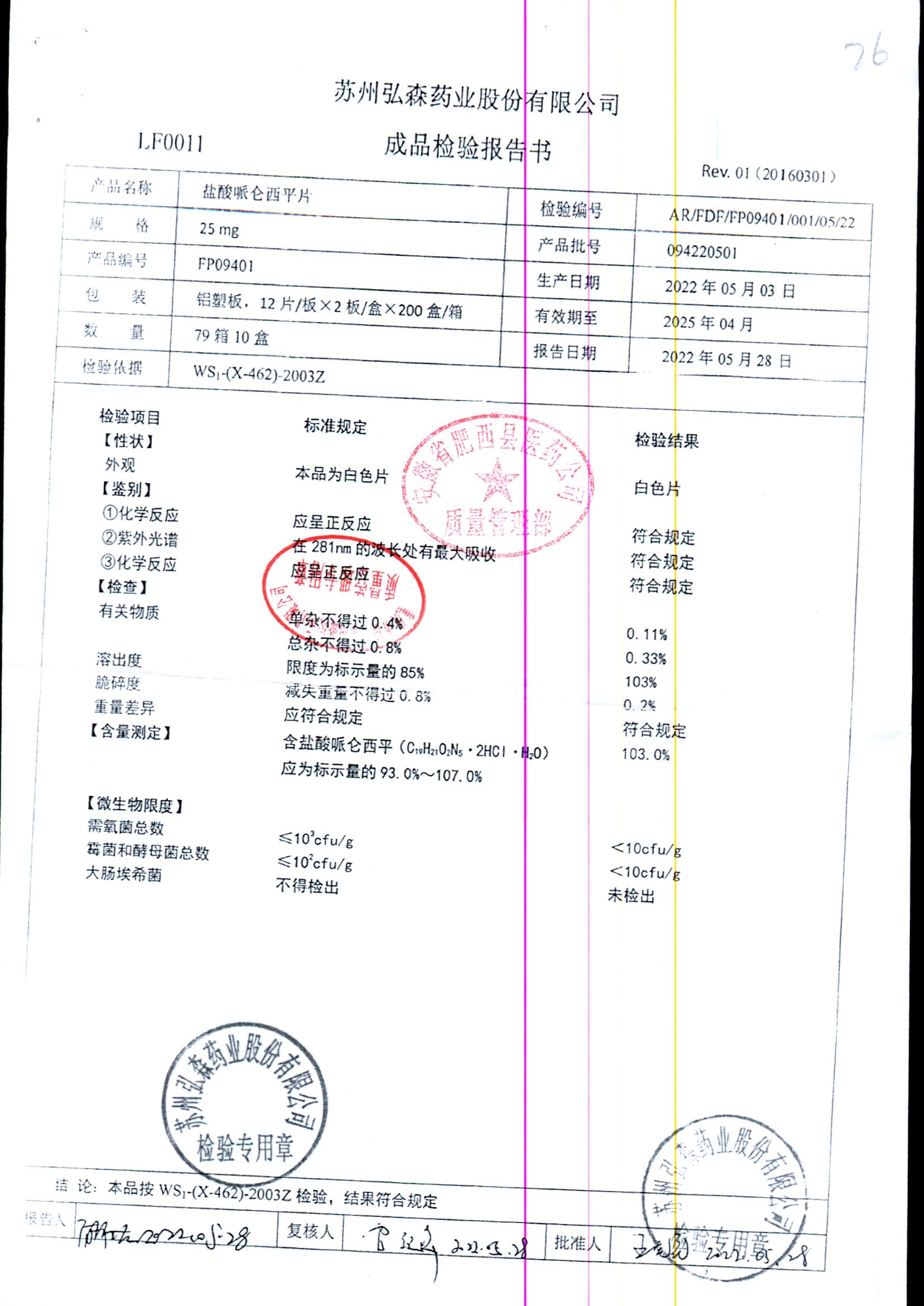 盐酸哌仑西平片 | 25mg*12片 | 094220501 | 查看详情 |