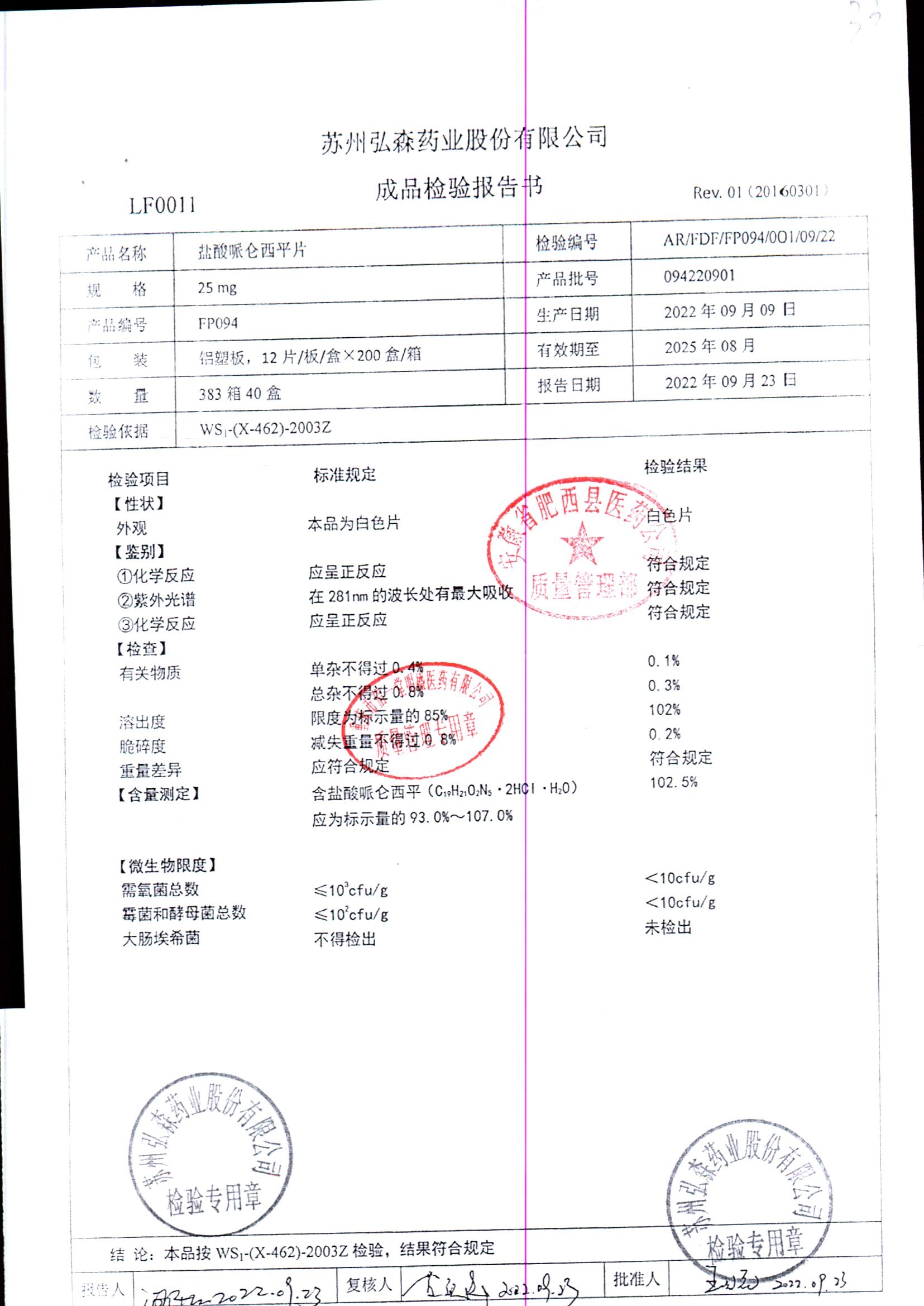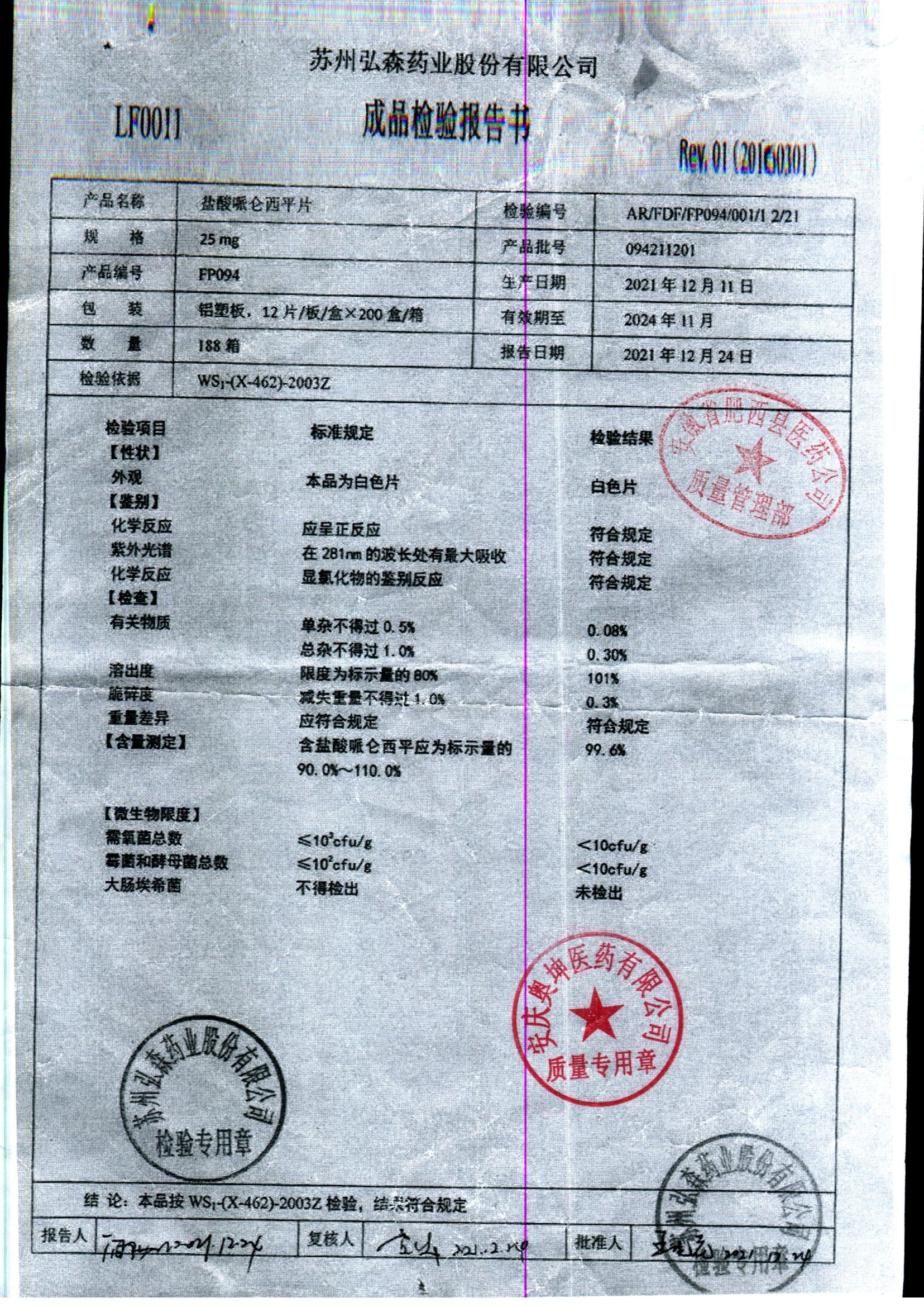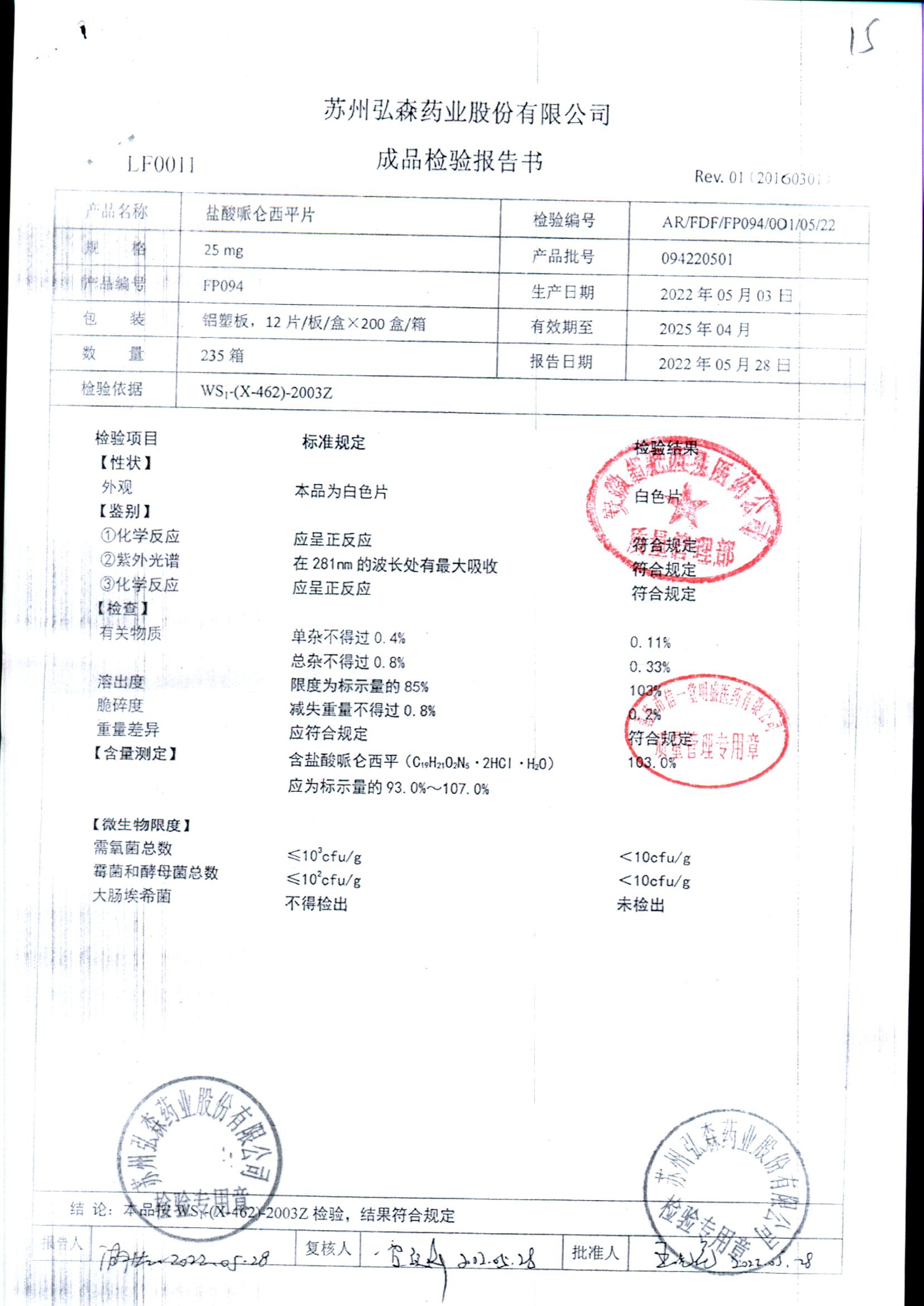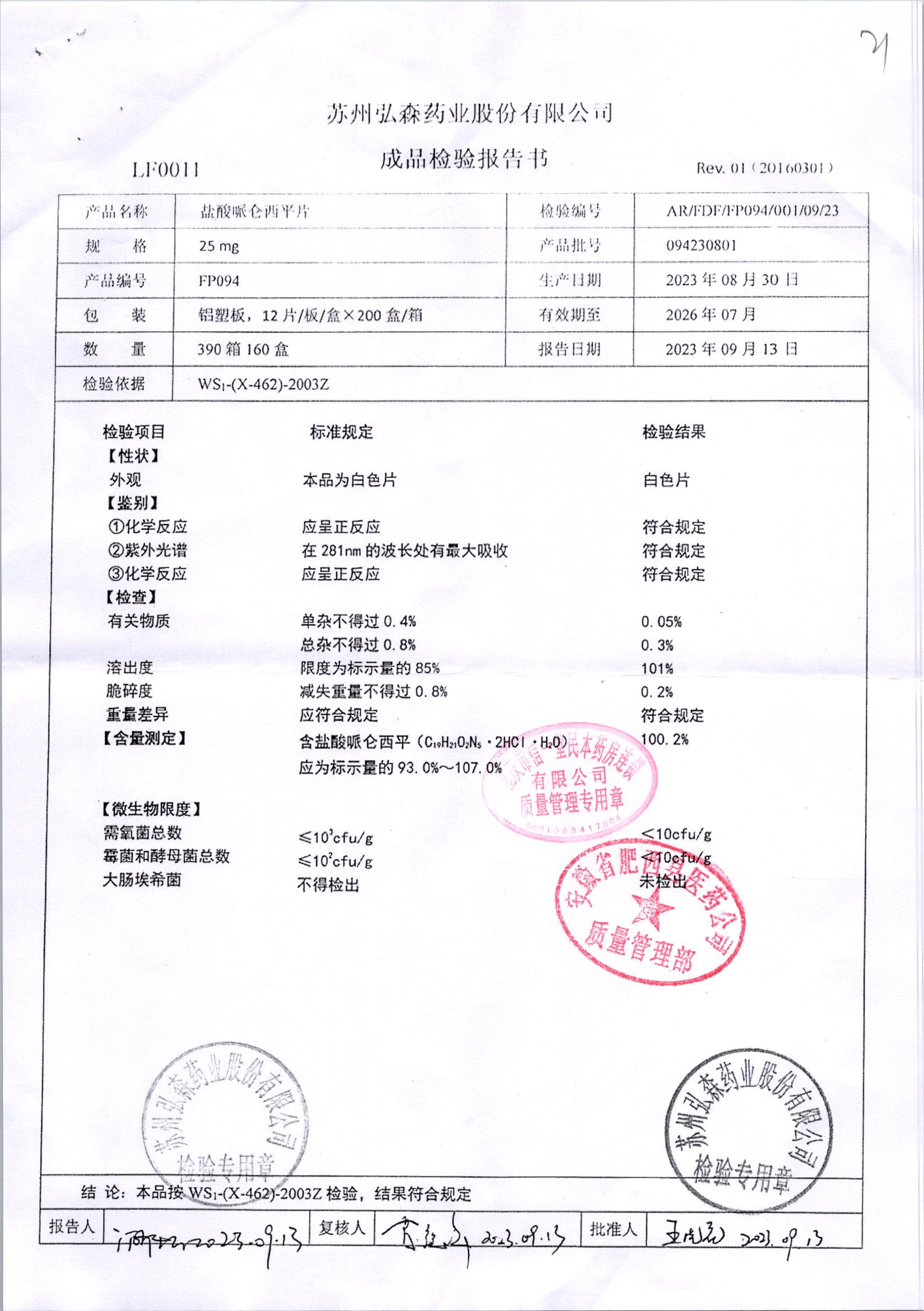 盐酸哌仑西平片 | 25mg*12片 | 094220901 | 查看详情 |