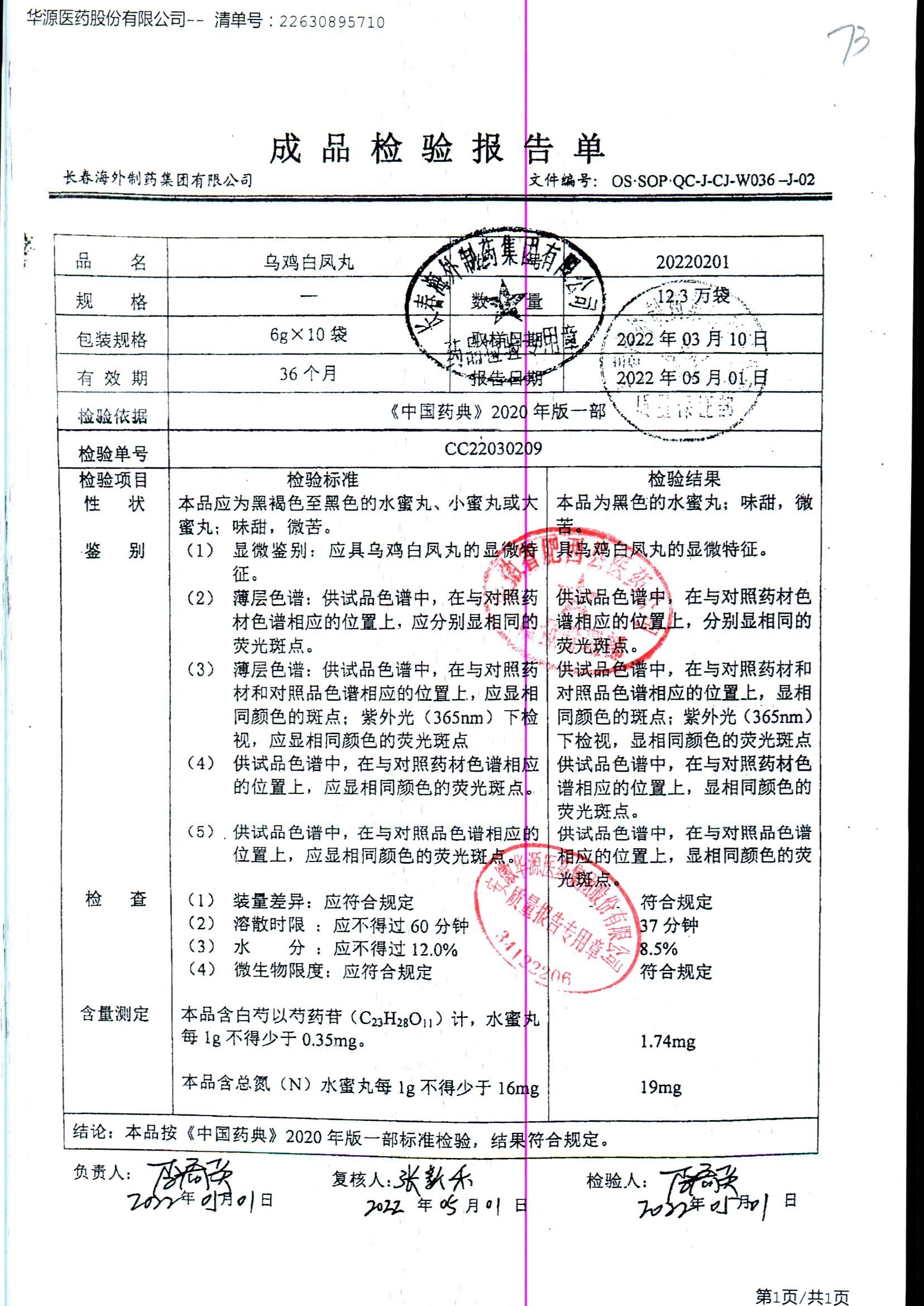 药检报告