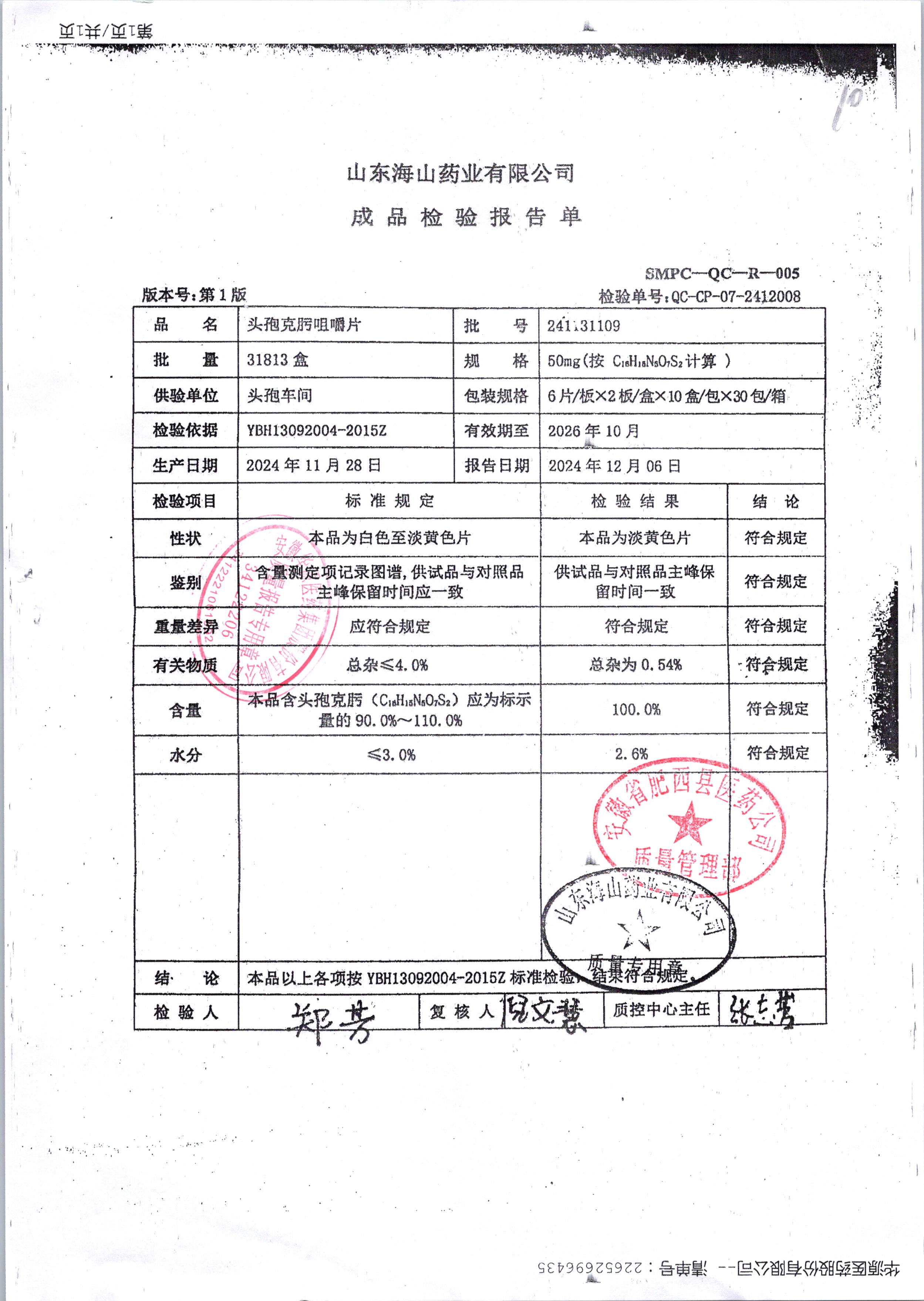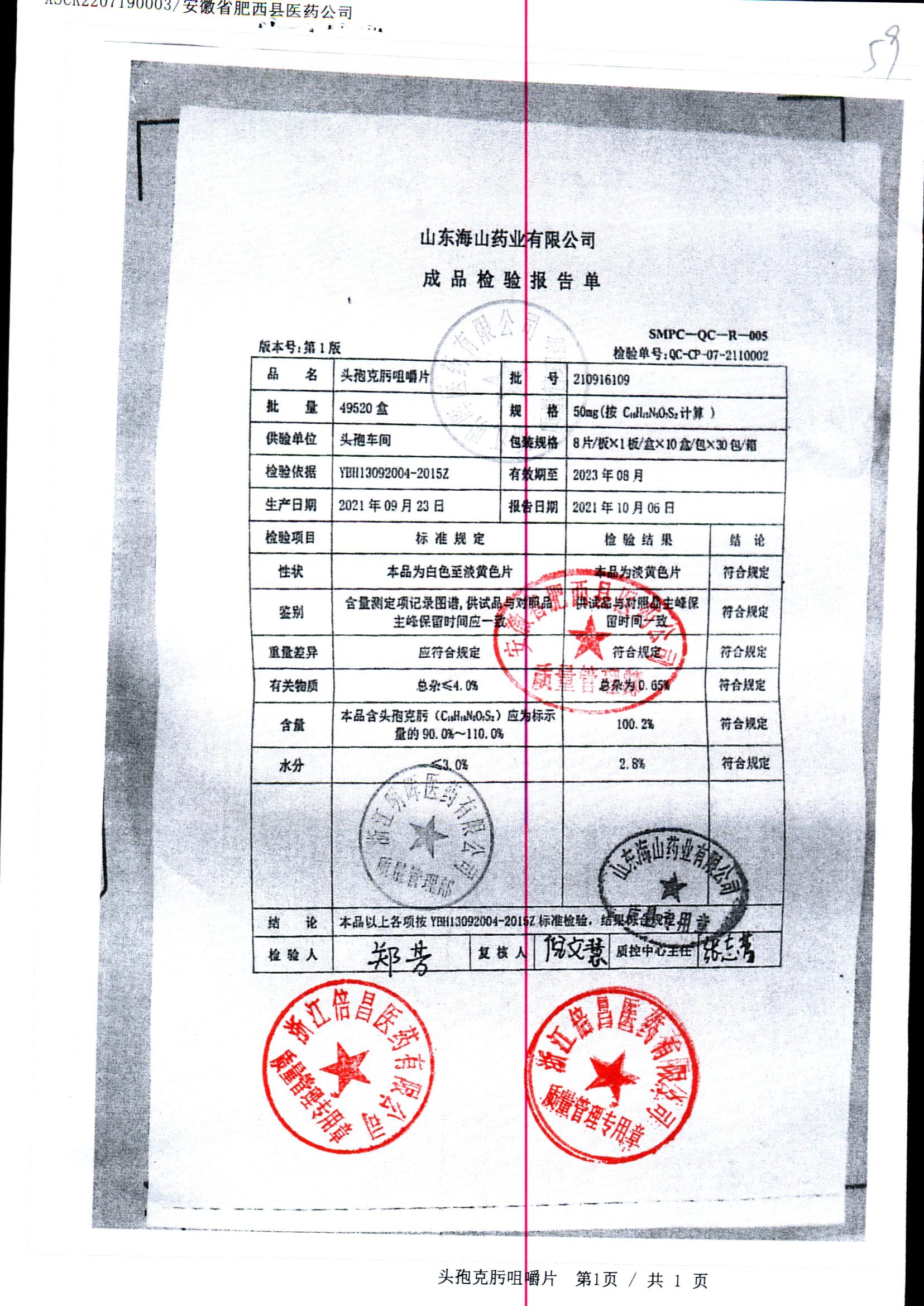 药检报告