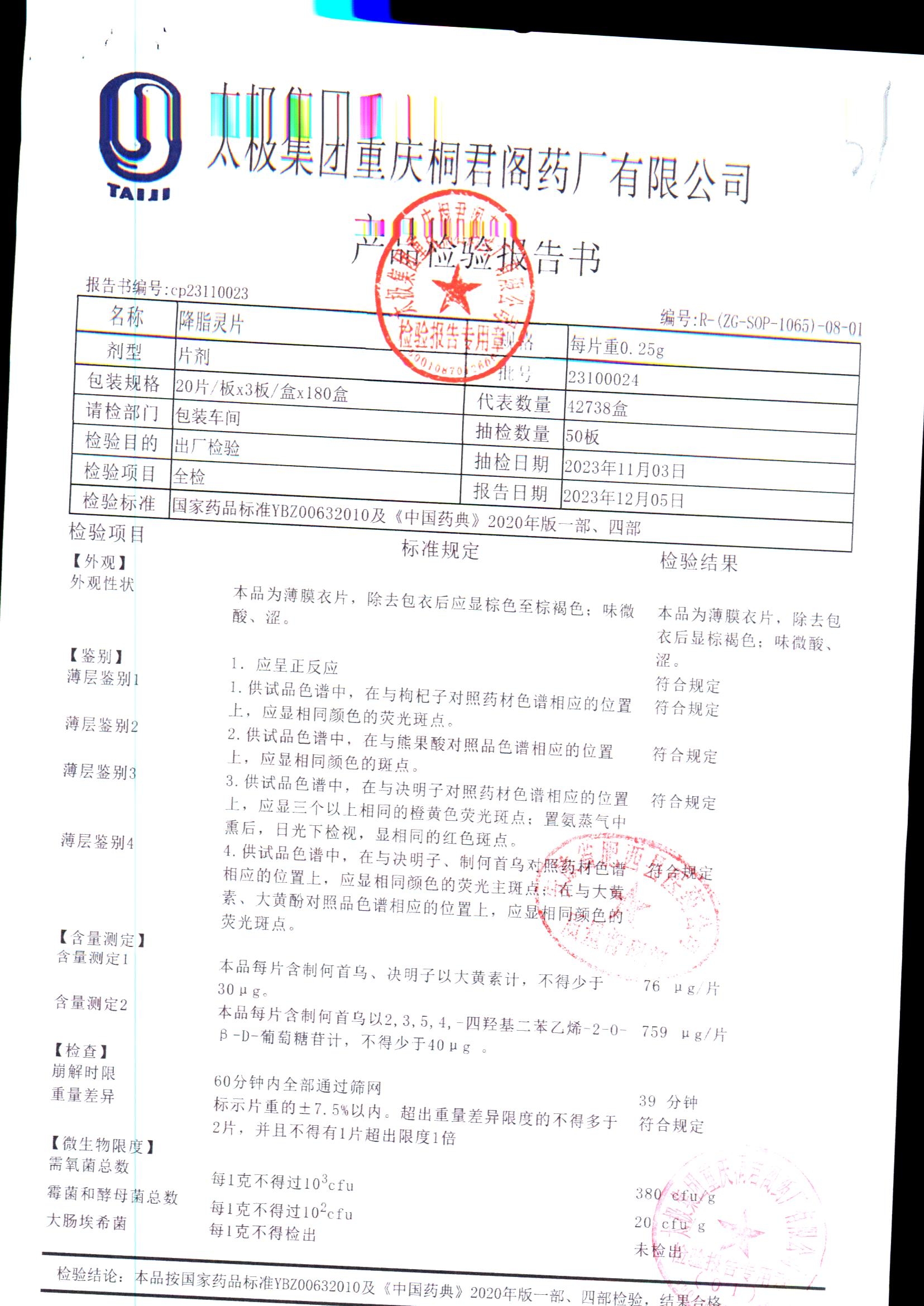 药检报告