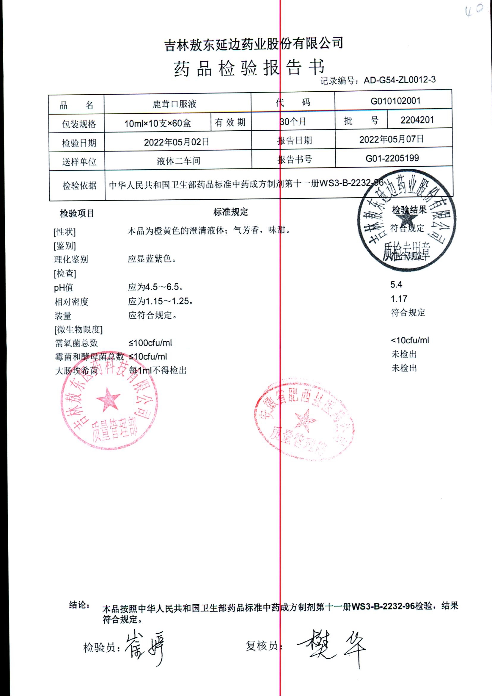 鹿茸口服液 | 10ml*10支*60盒 | 2204201 | 查看详情 |