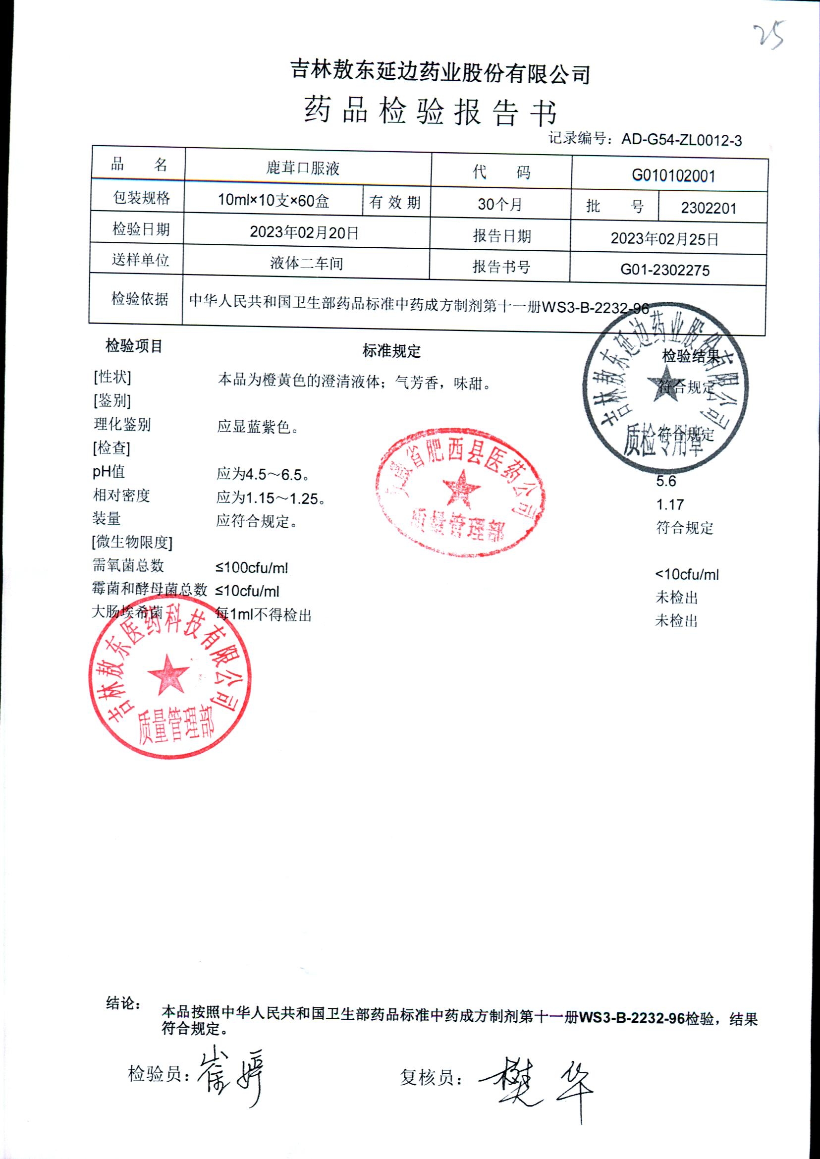 鹿茸口服液 | 10ml*10支*60盒 | 2302201 | 查看详情 |