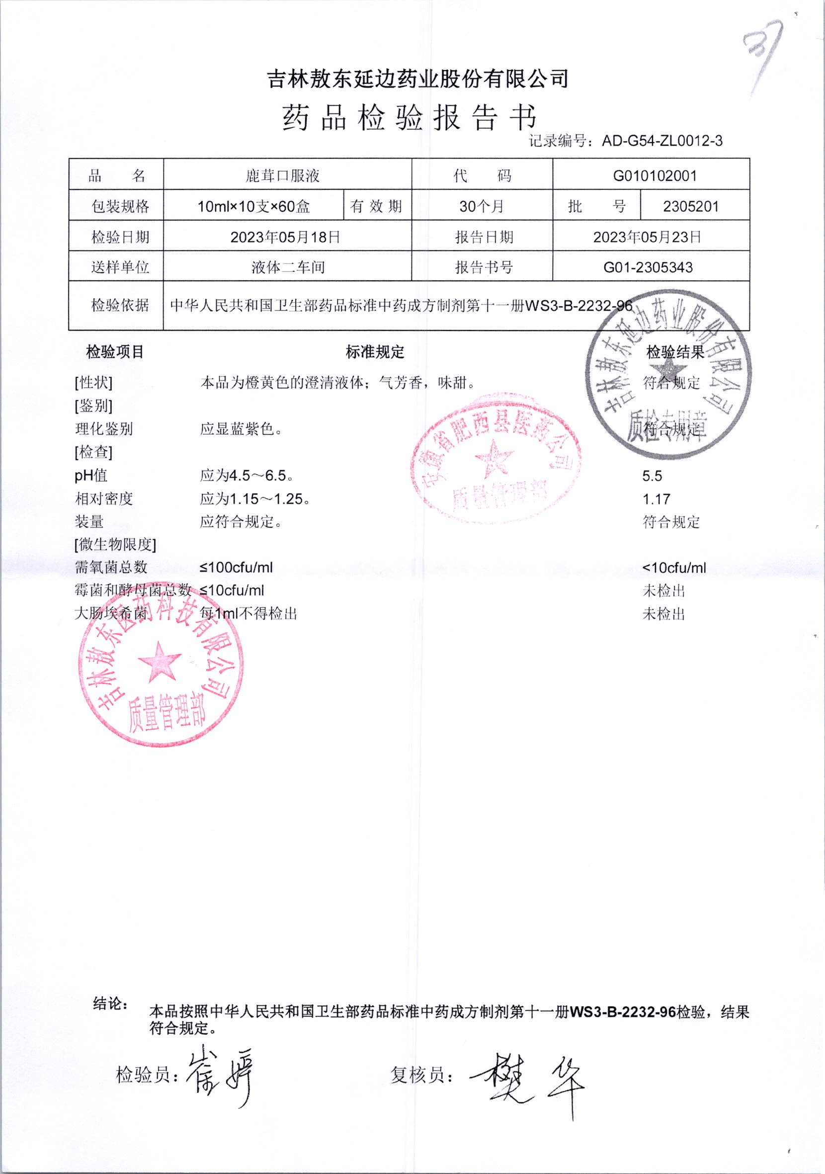 鹿茸口服液 | 10ml*10支*60盒 | 2305201 | 查看详情 |