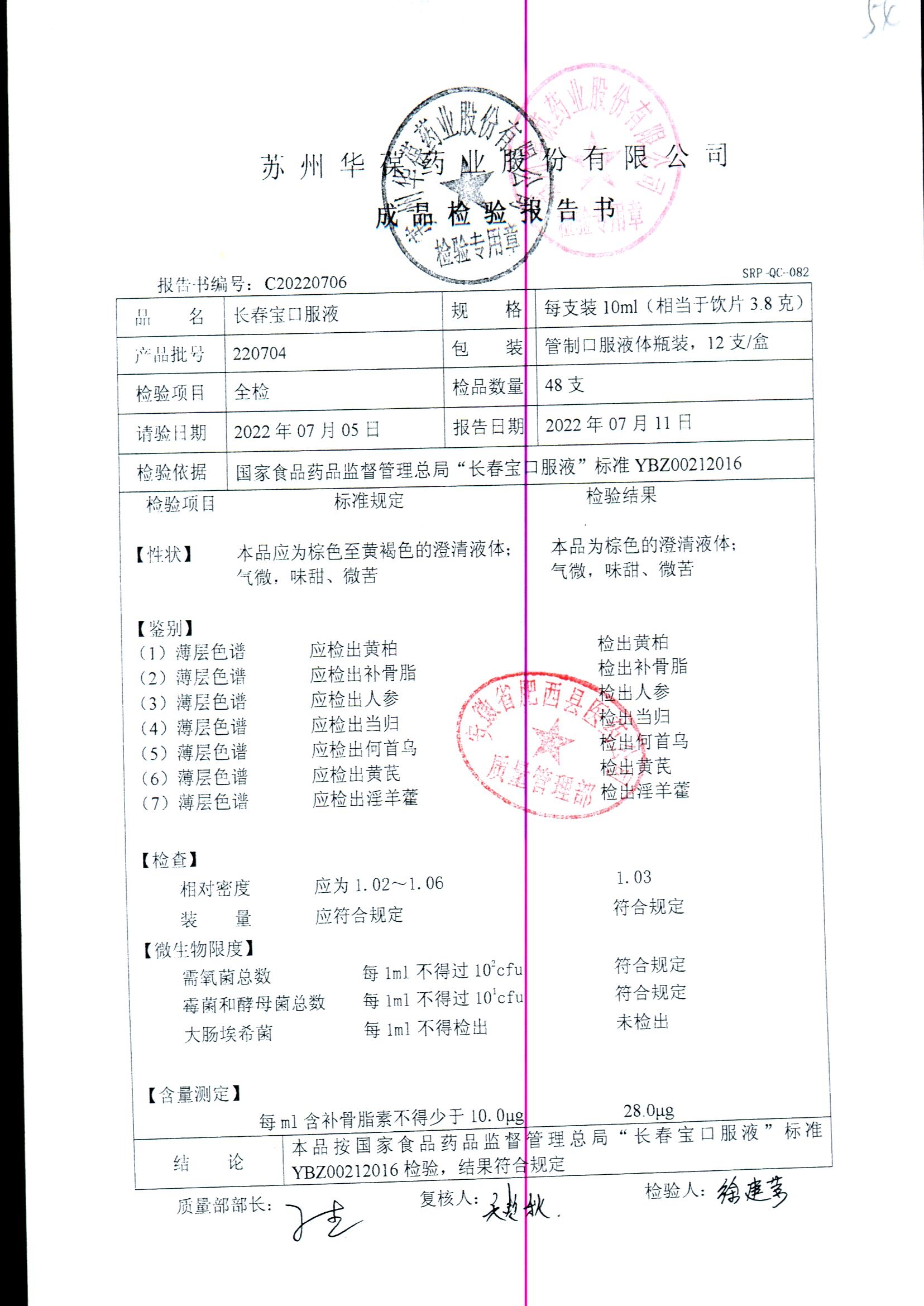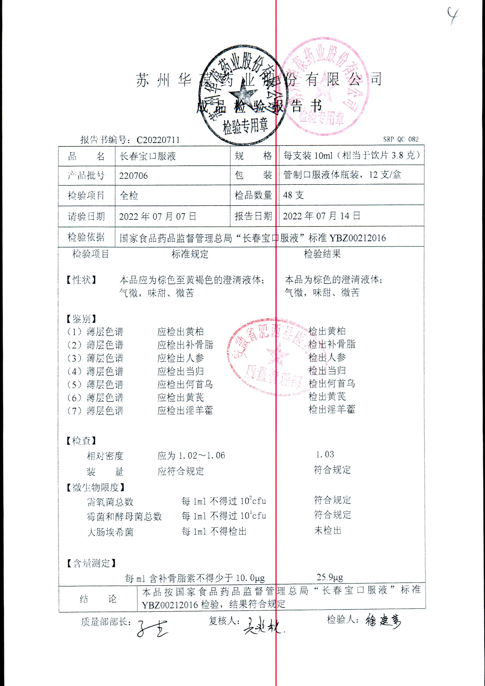 长春宝口服液 | 10ml*12支 | 220704 | 查看详情 |