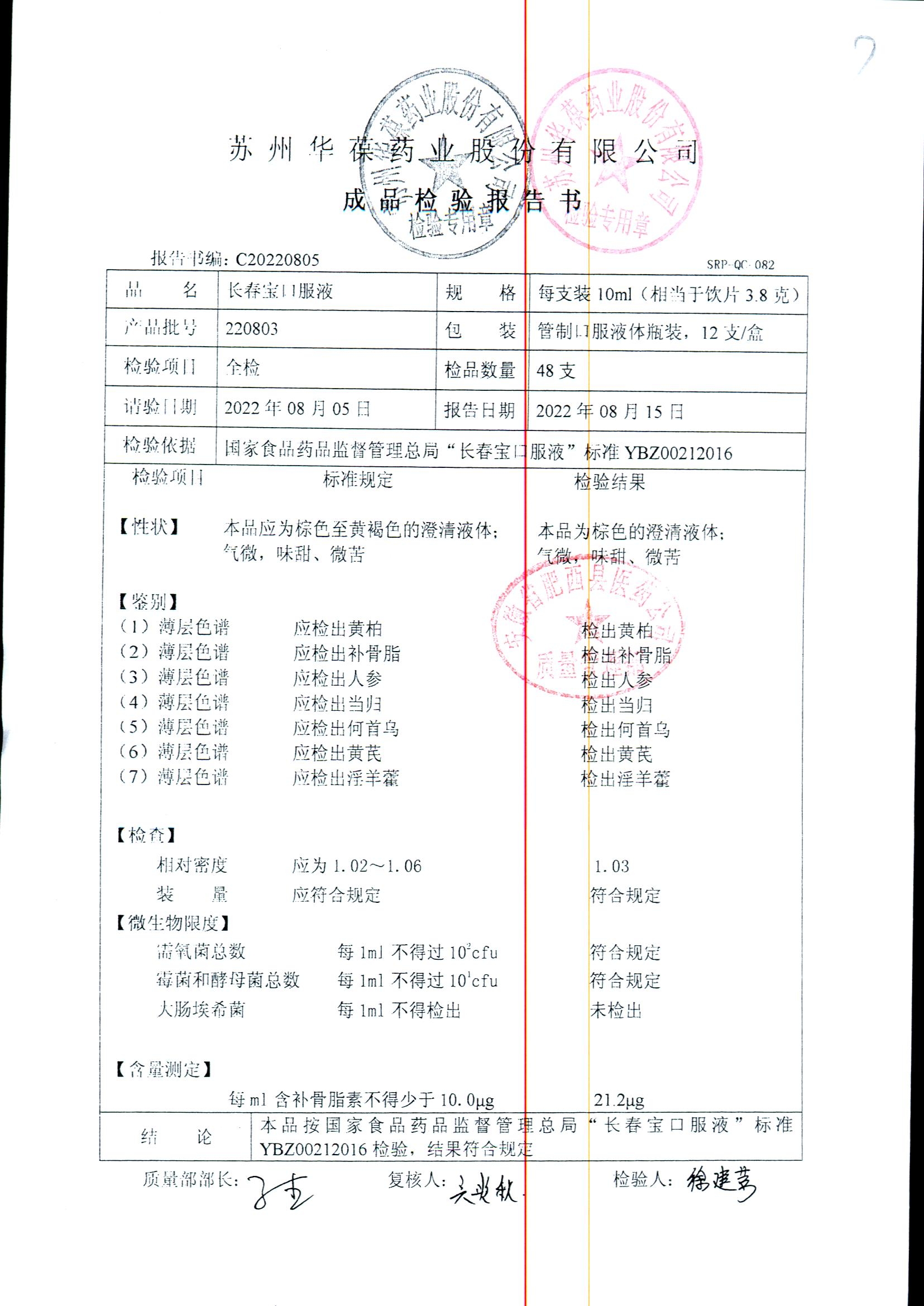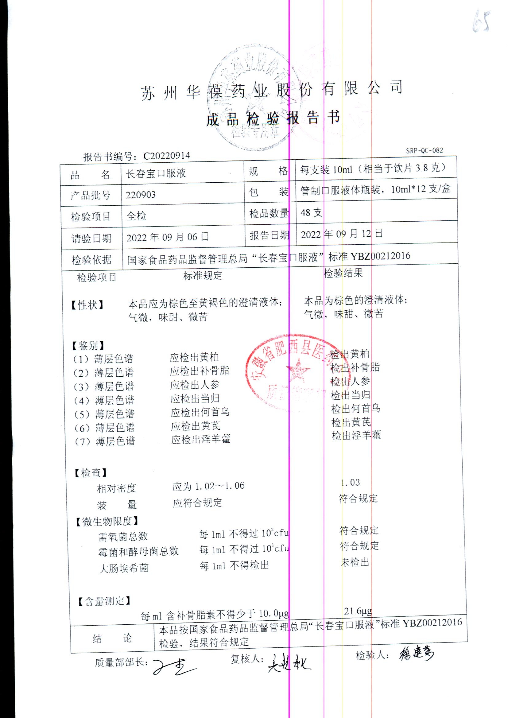 长春宝口服液 | 10ml*12支 | 220905 | 查看详情 |