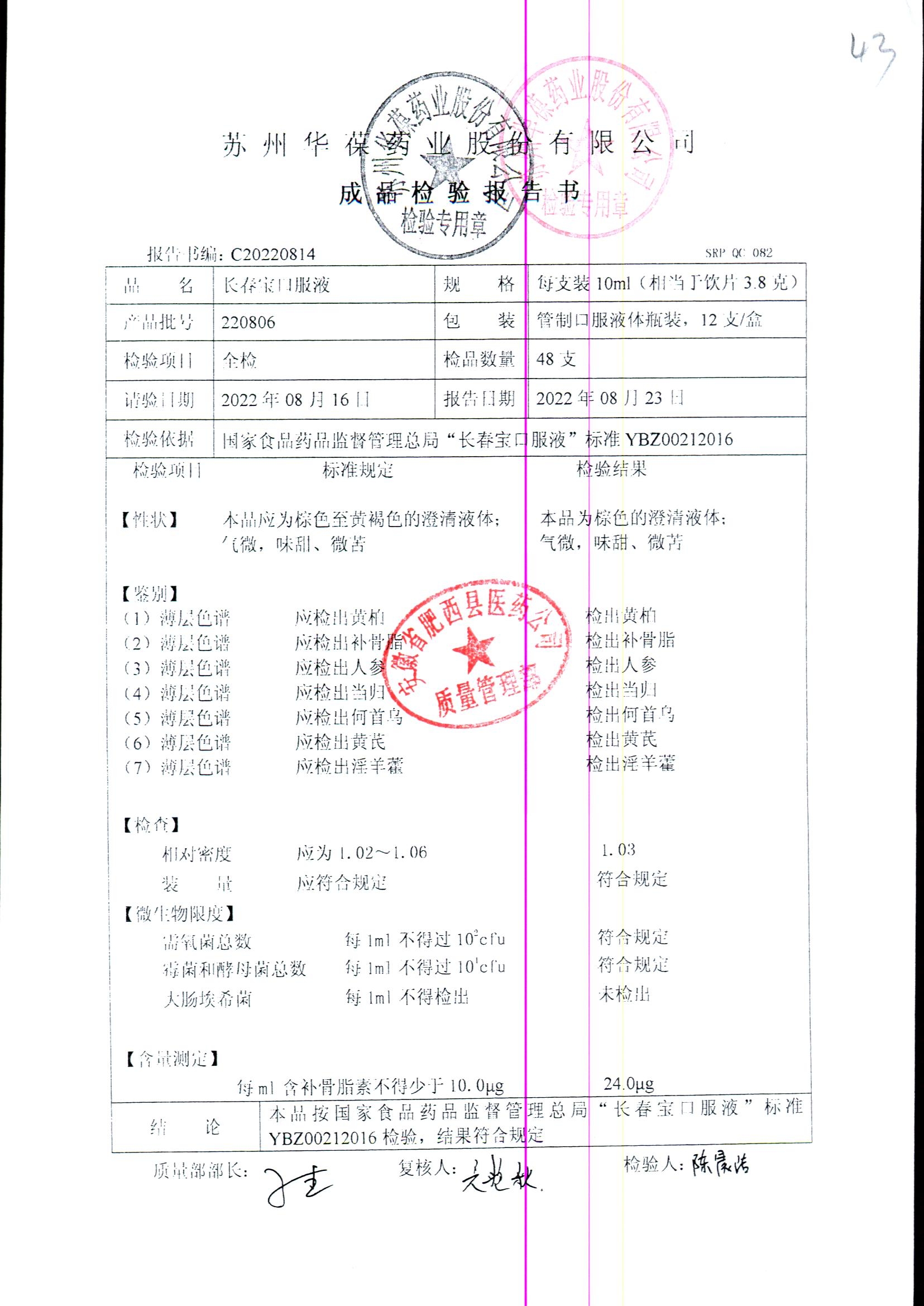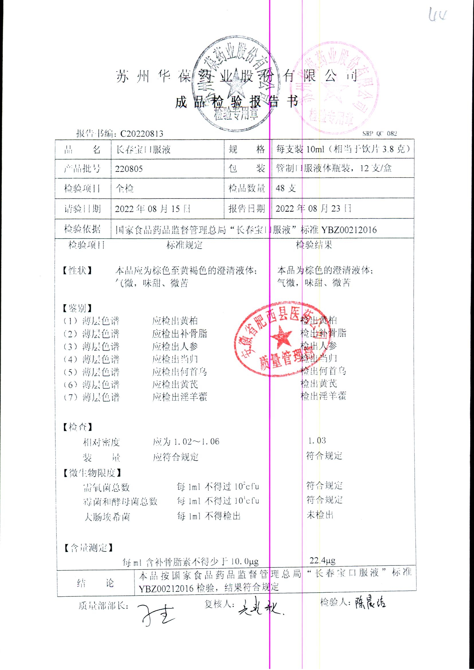 长春宝口服液 | 10ml*12支 | 220806 | 查看详情 |