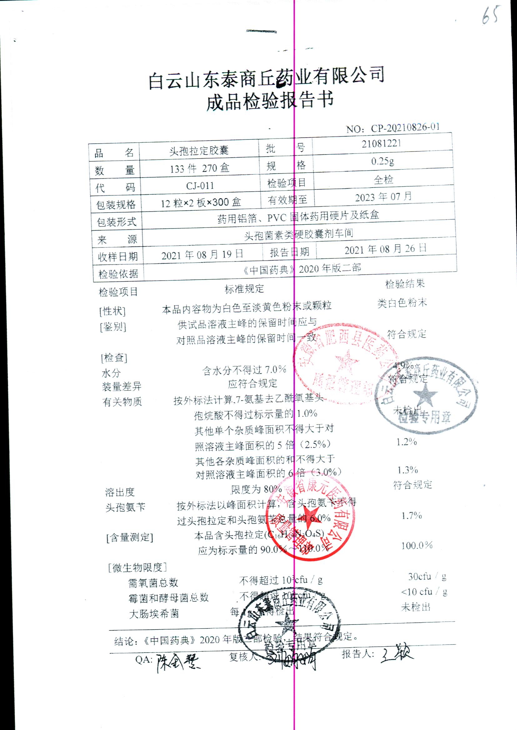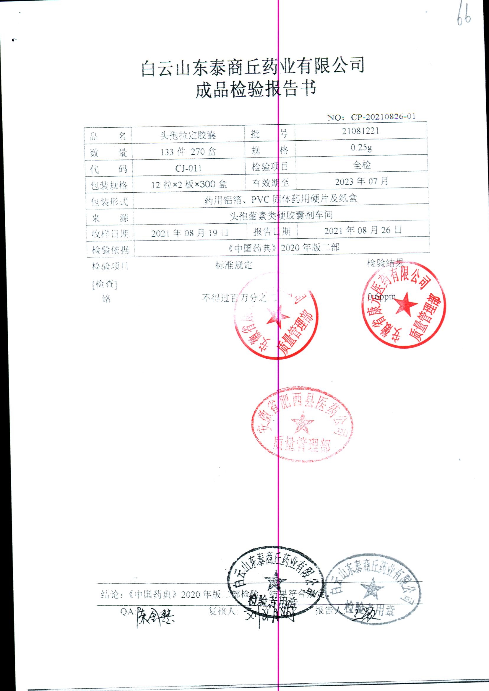 药检报告