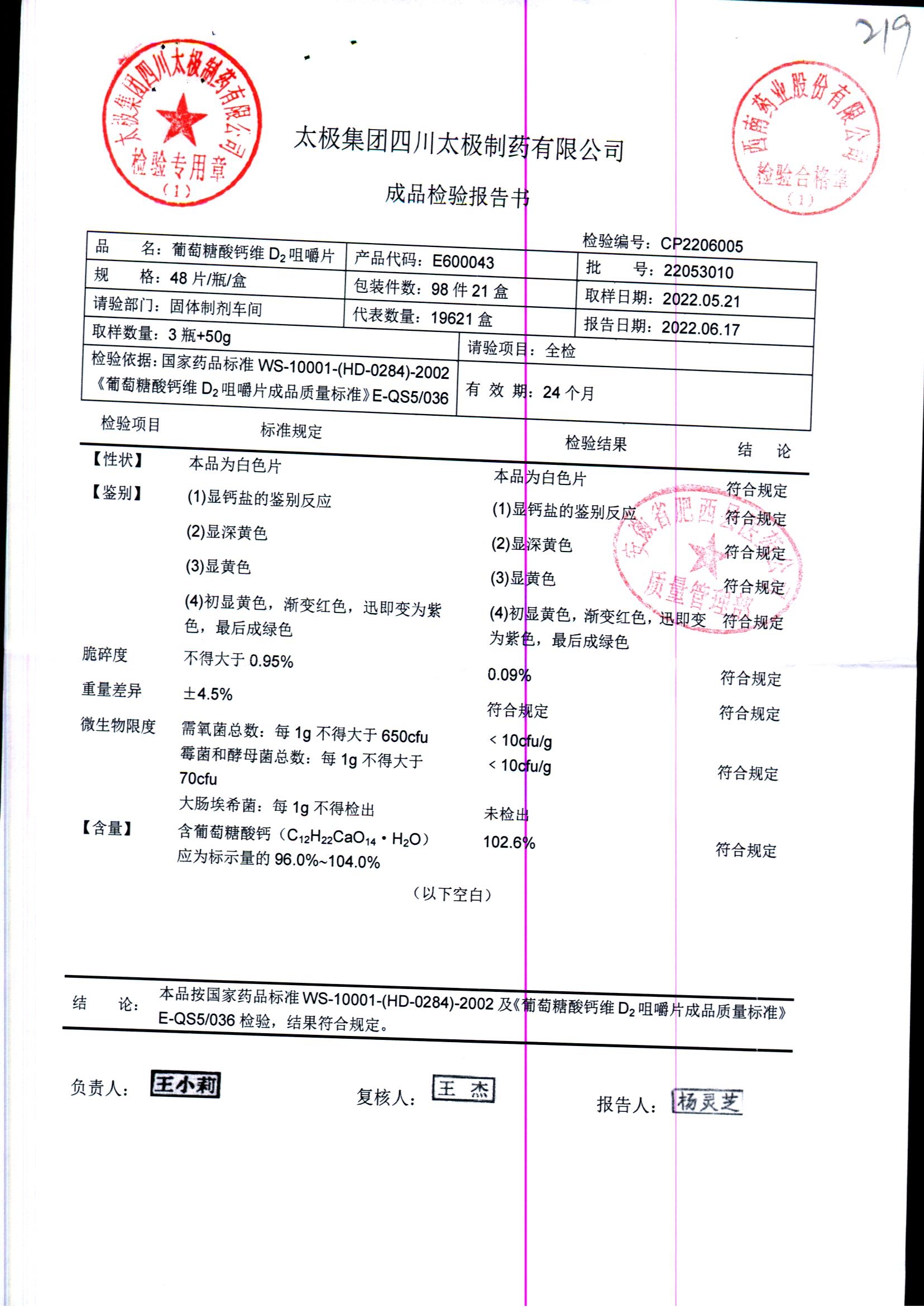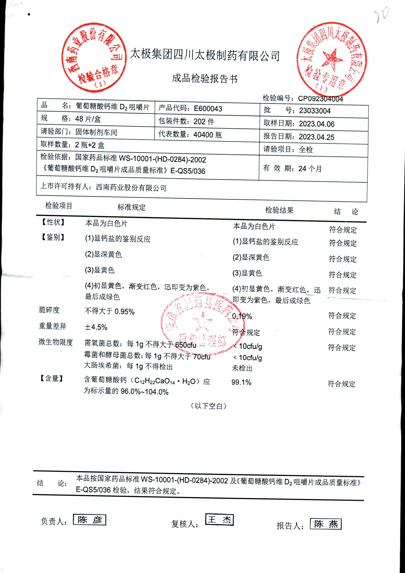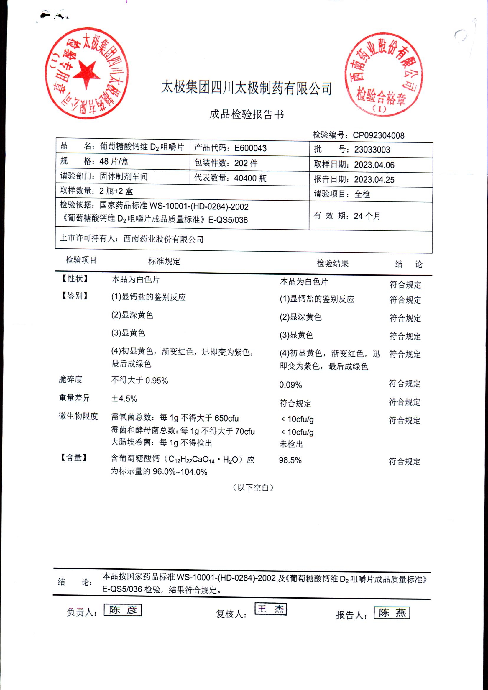 葡萄糖酸钙维D2咀嚼片 | 48片 | 23023001 | 查看详情 |