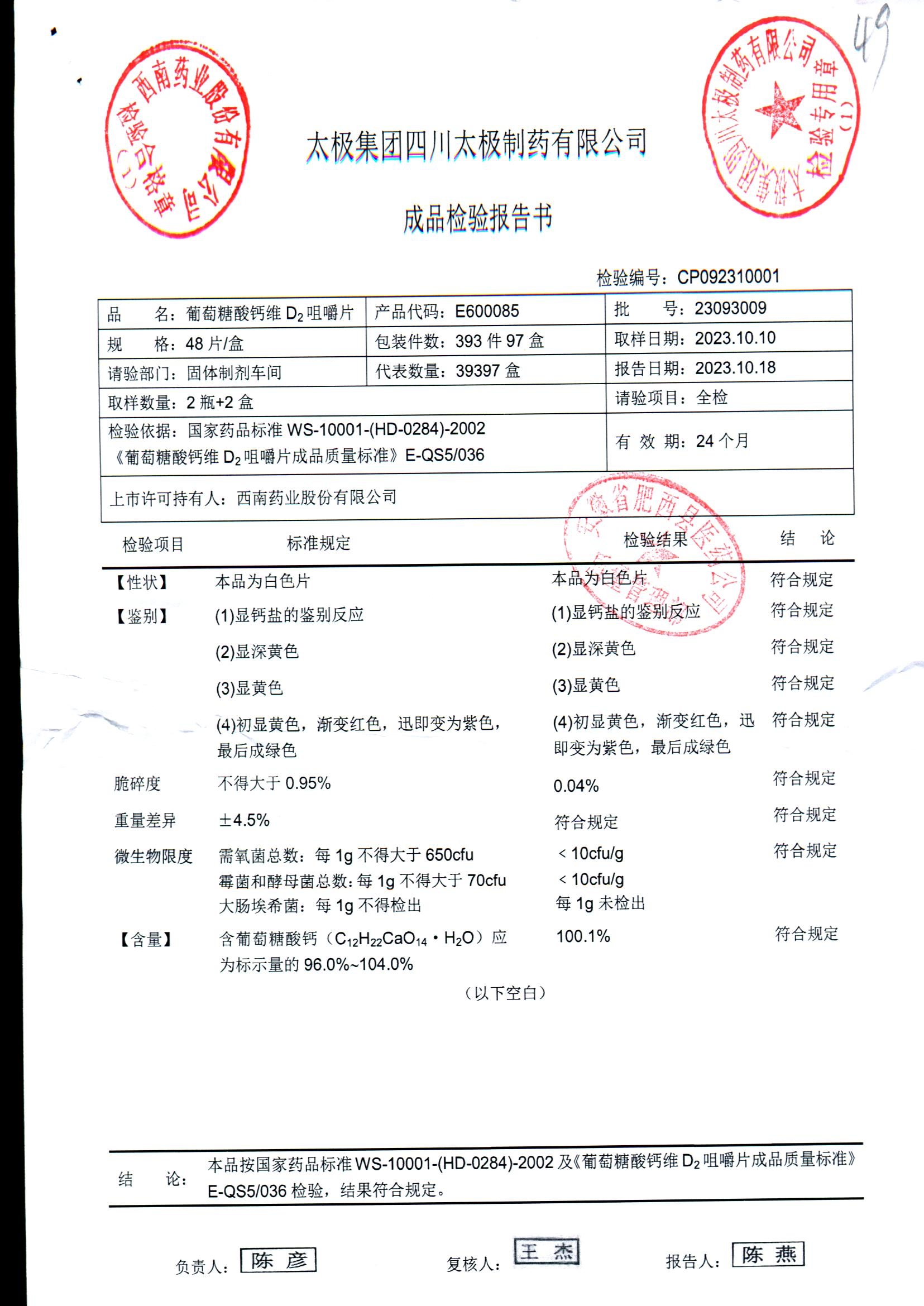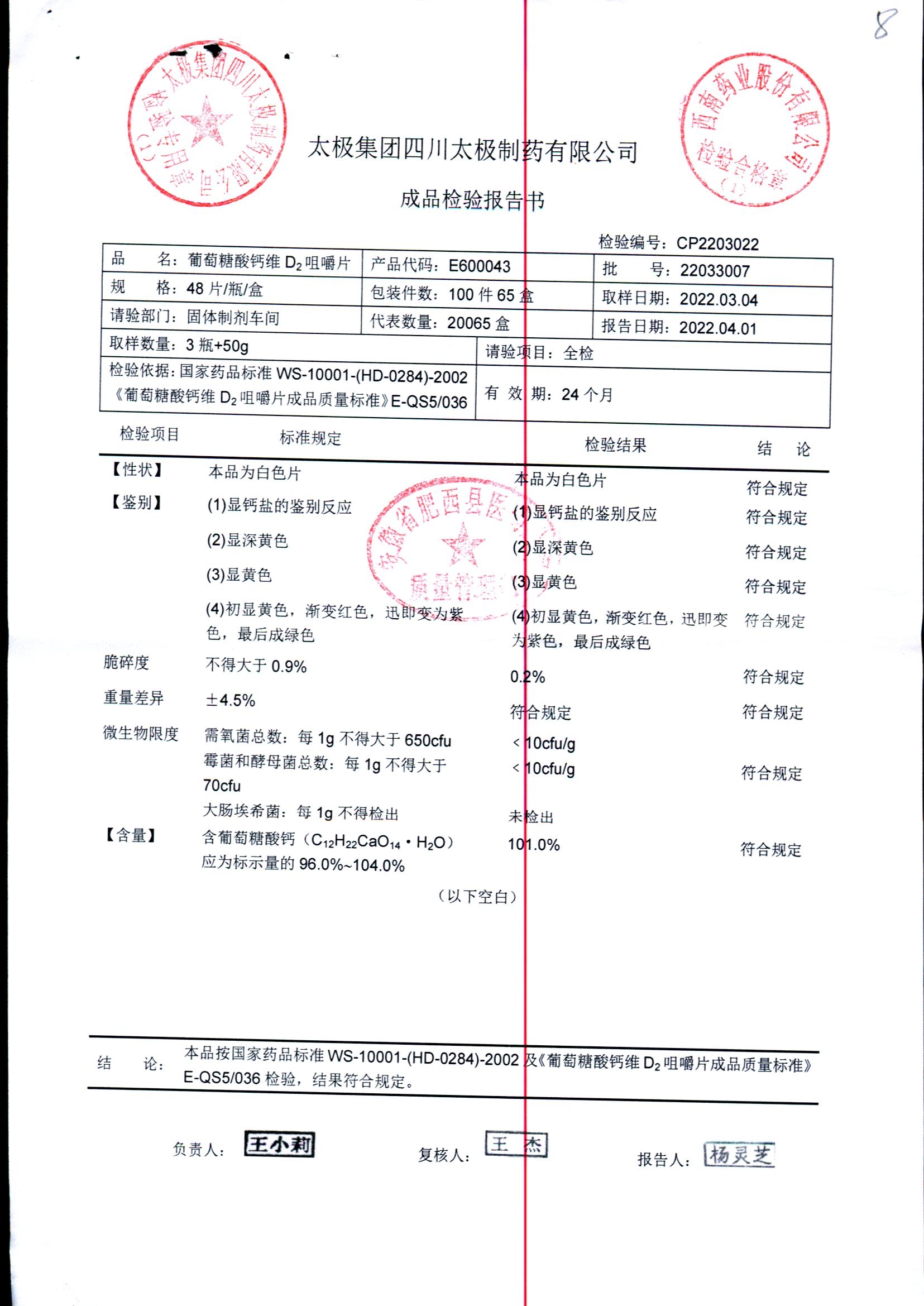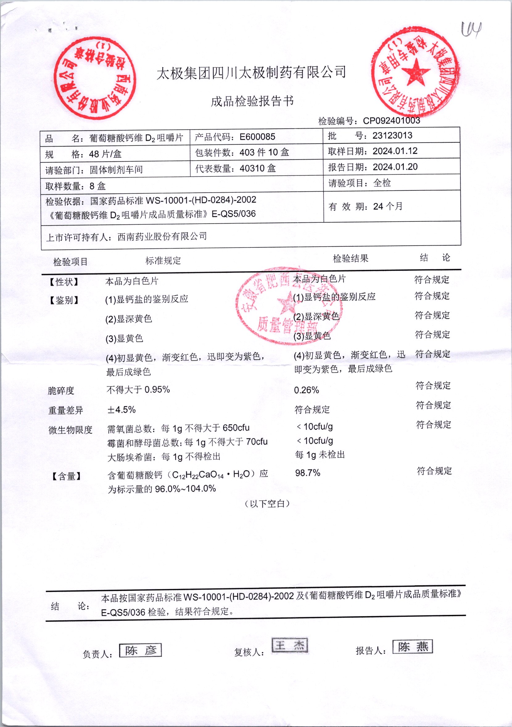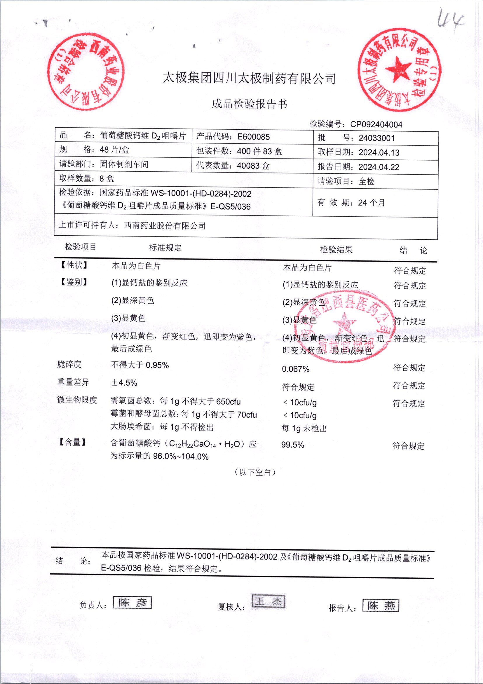 葡萄糖酸钙维D2咀嚼片 | 48片 | 24033001 | 查看详情 |