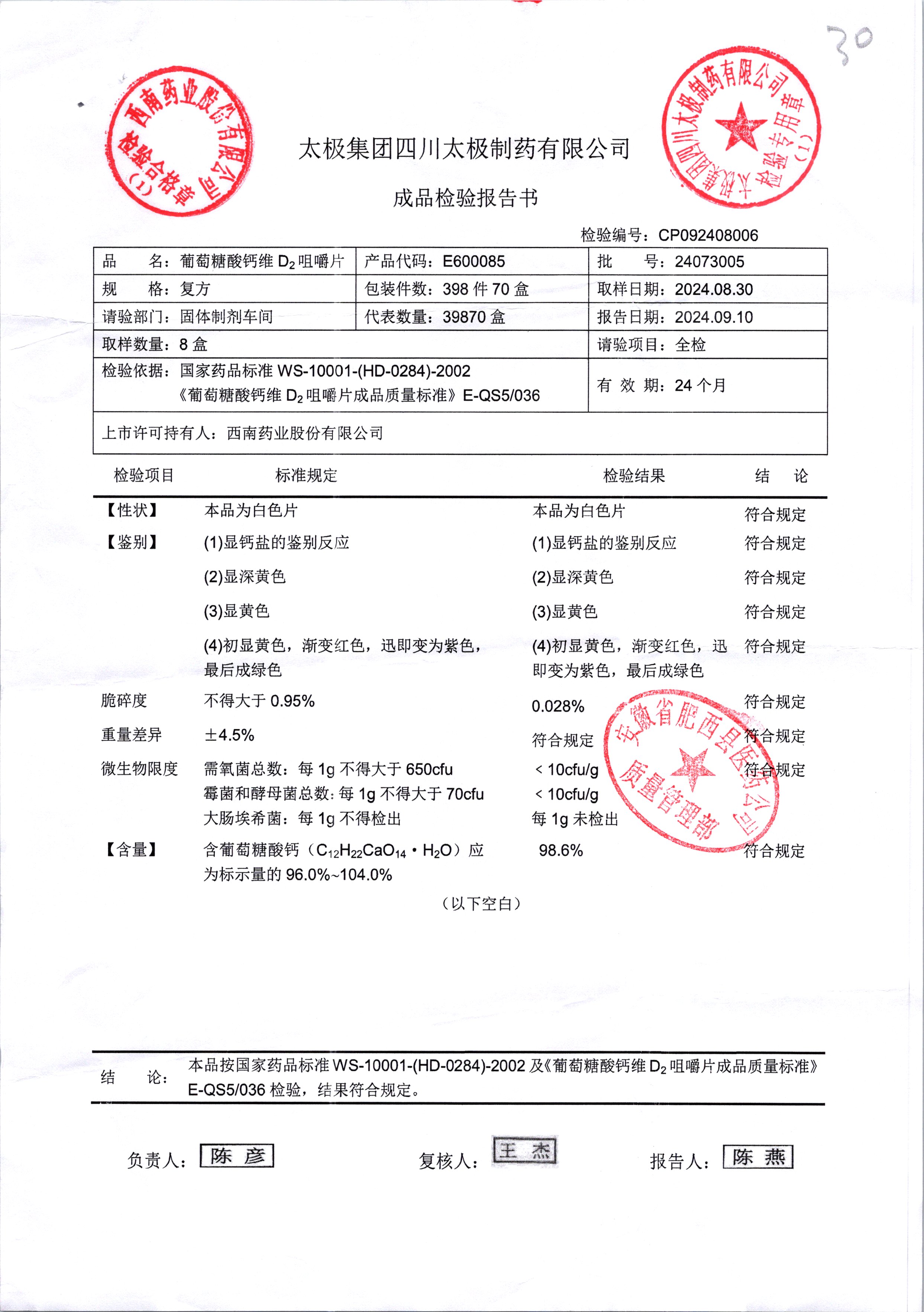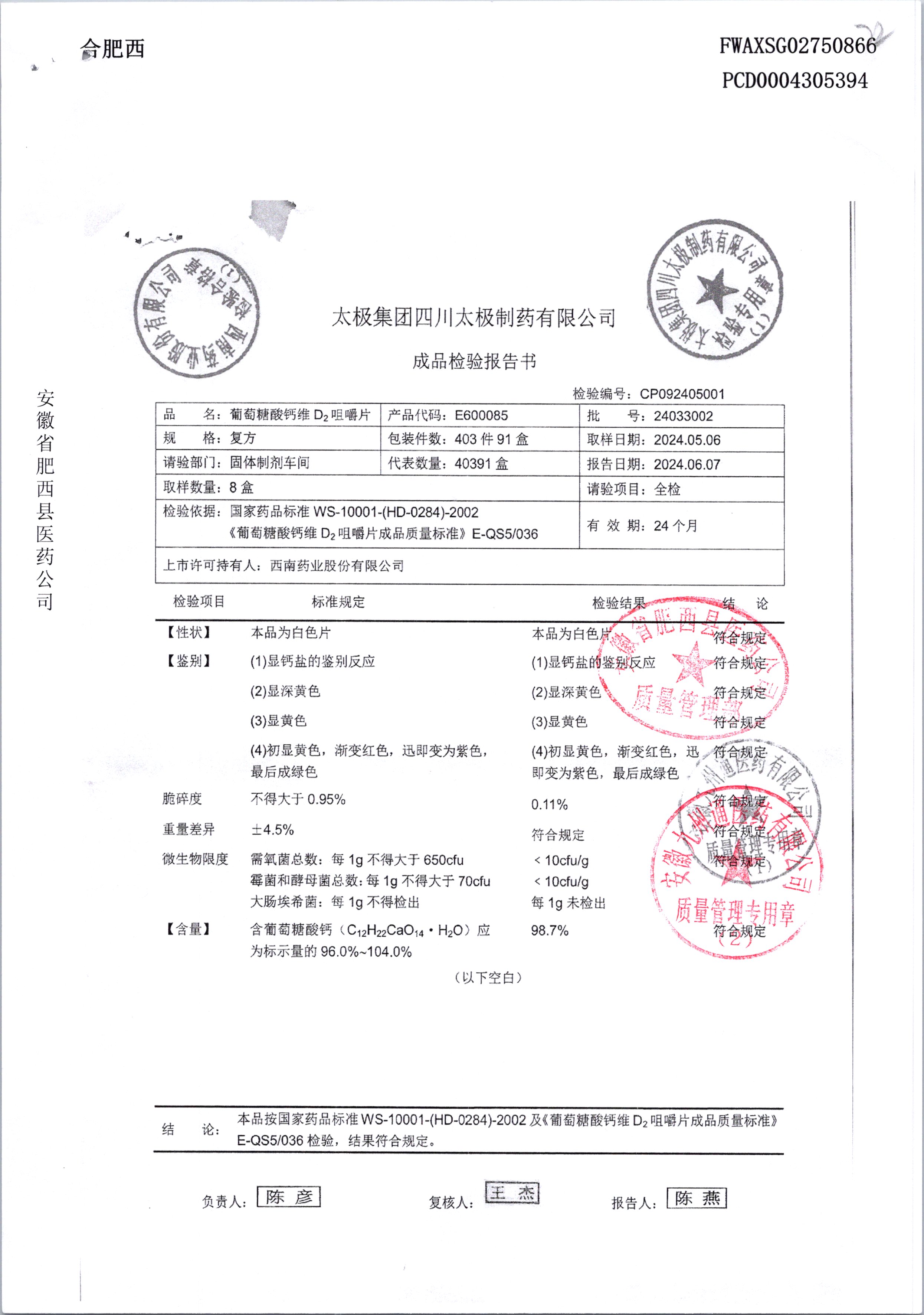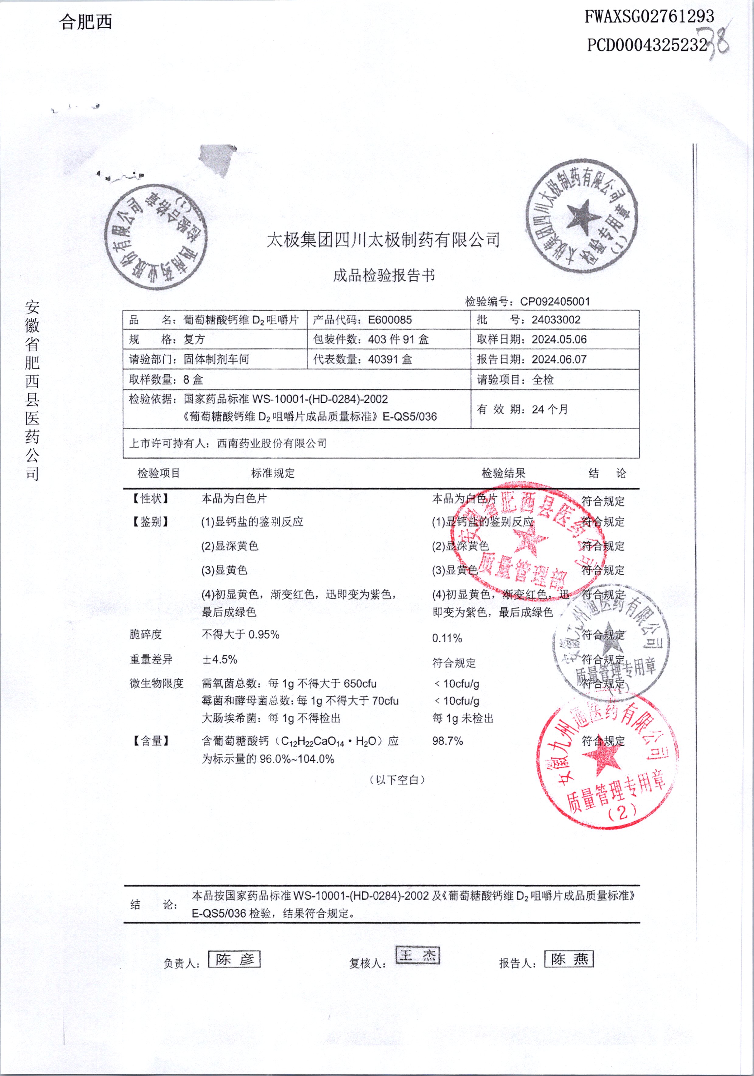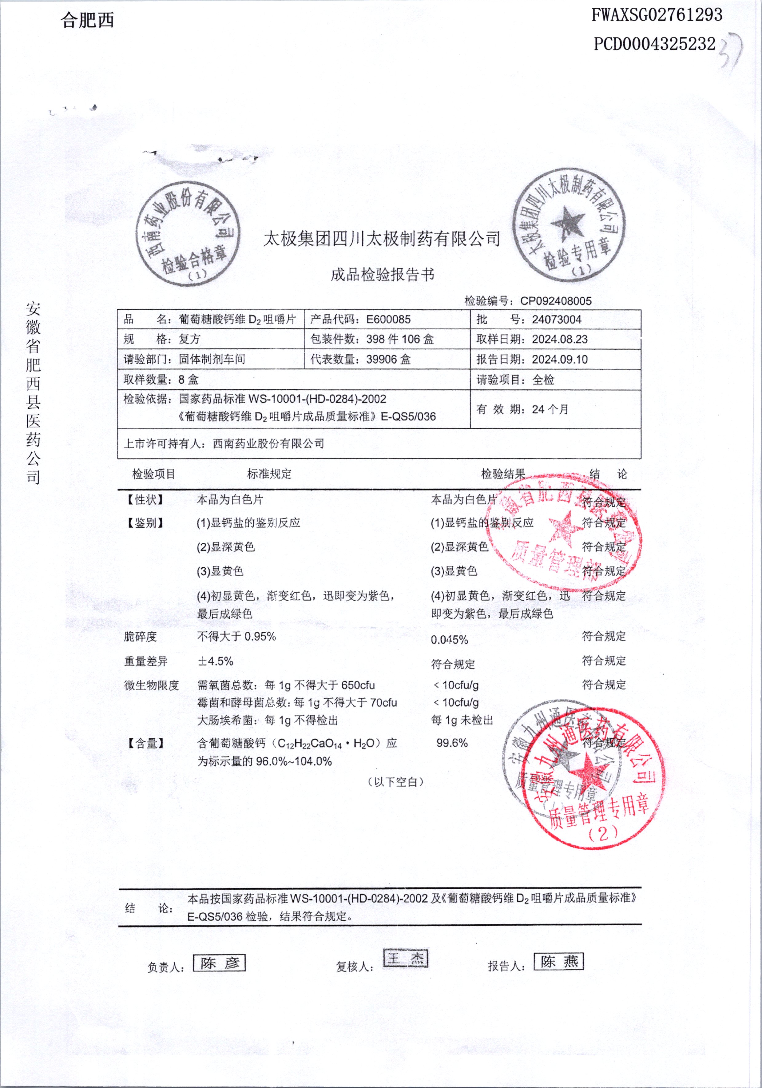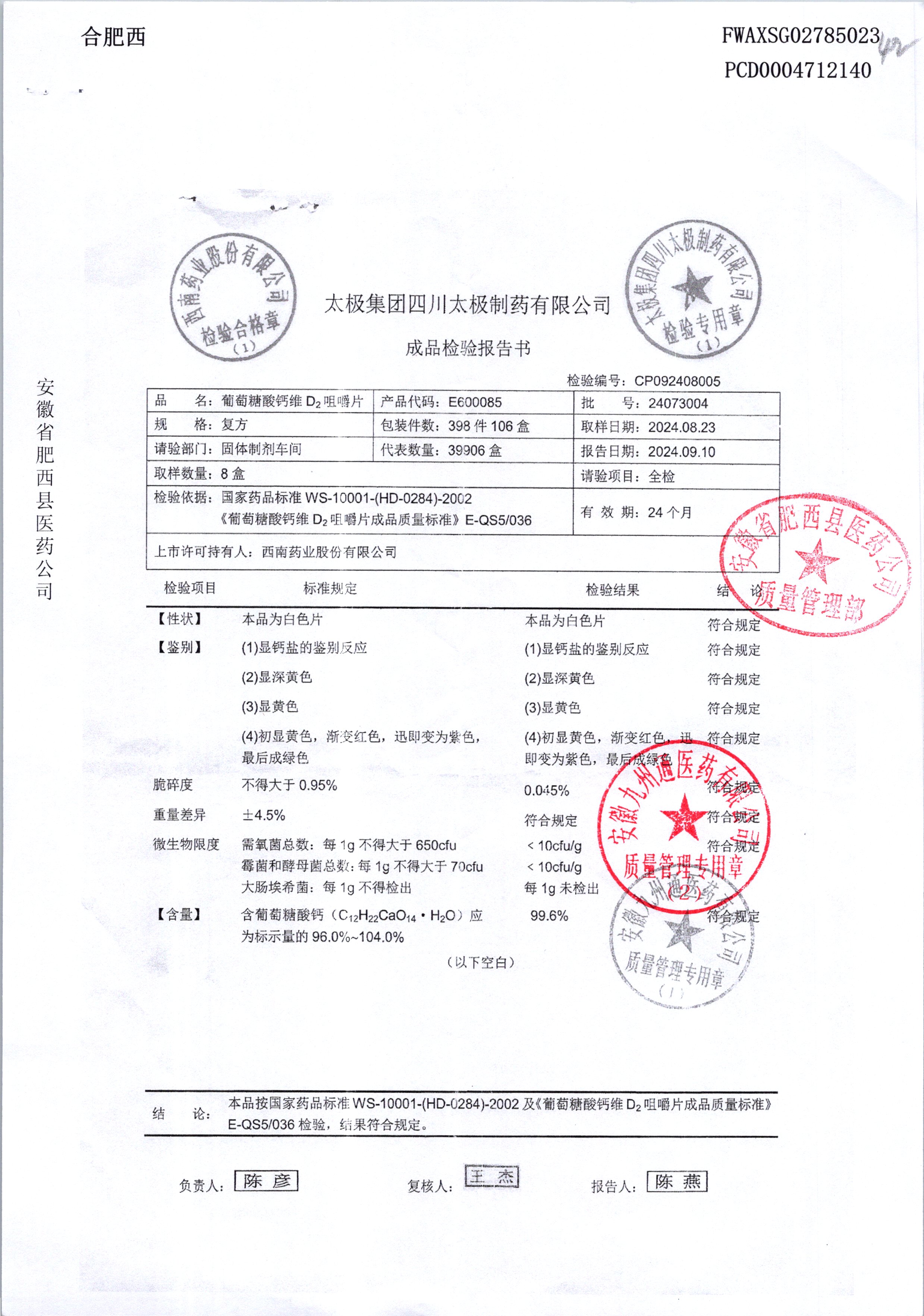 葡萄糖酸钙维D2咀嚼片 | 48片 | 24033001 | 查看详情 |