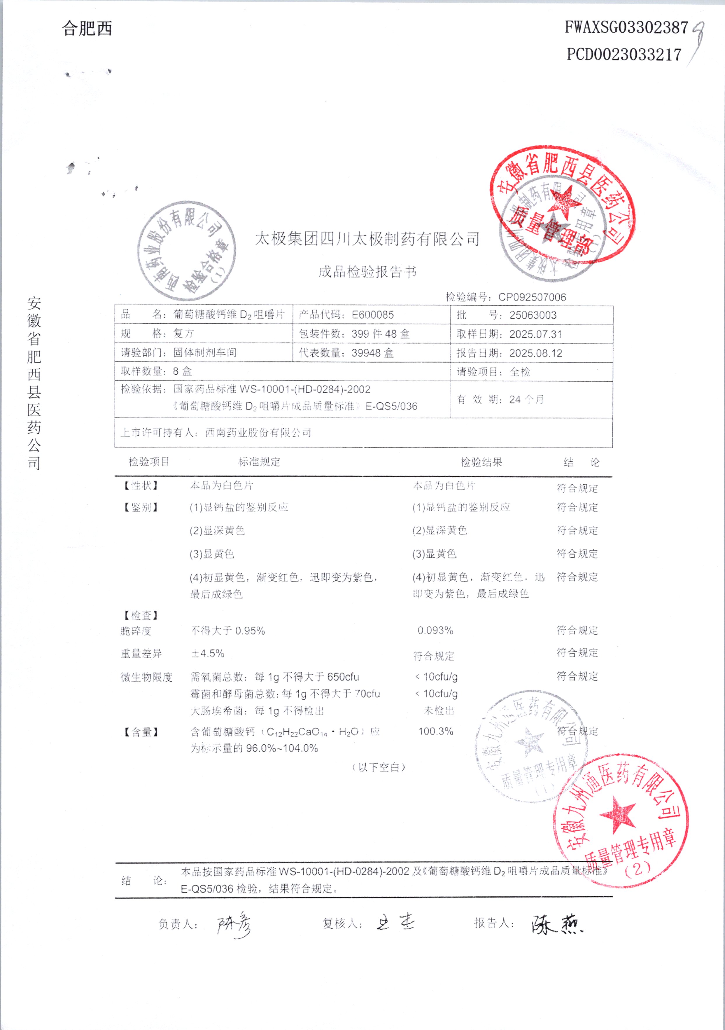 | 葡萄糖酸钙维D2咀嚼片 | 48片 | 25063002 | 查看详情 |