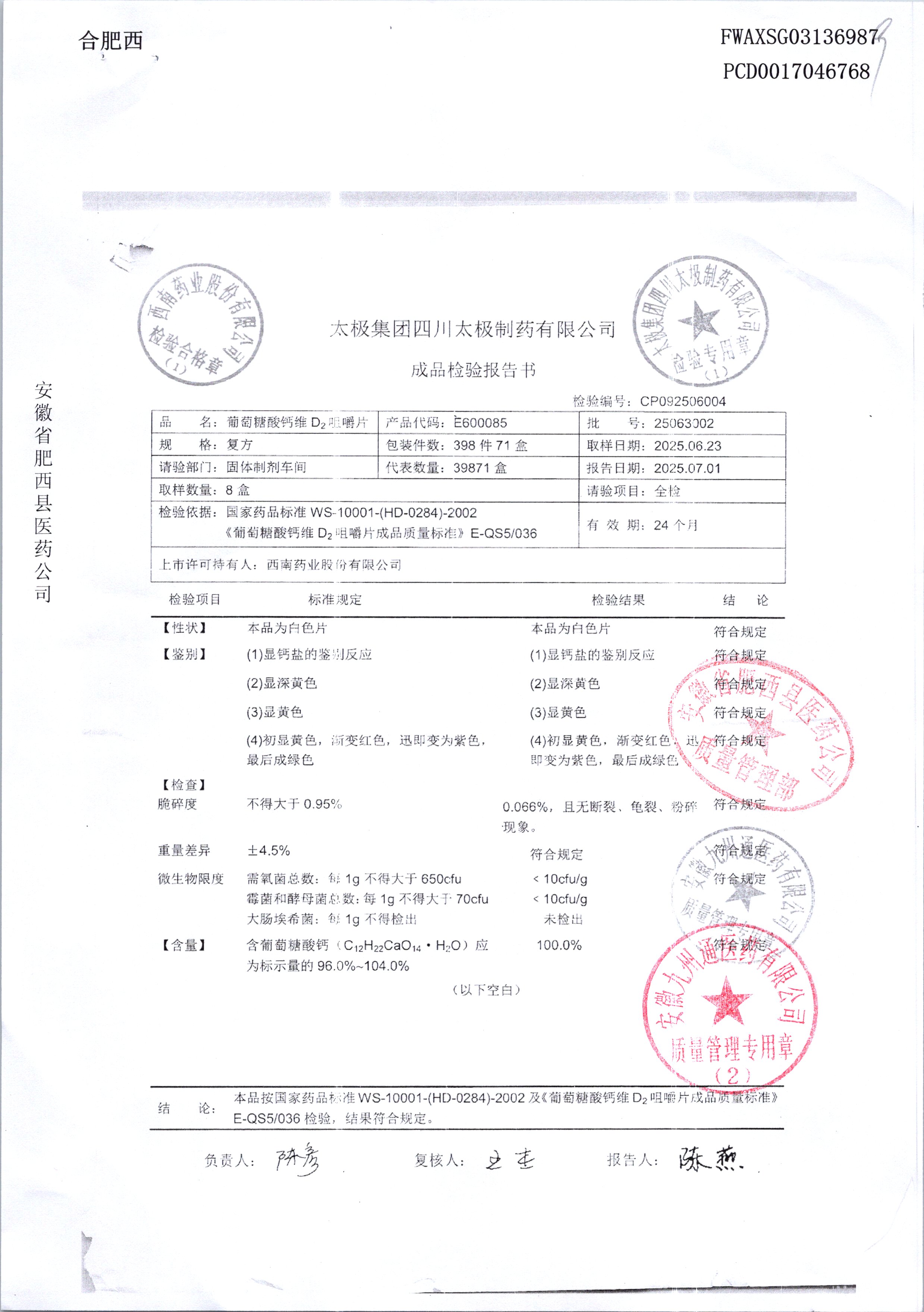 葡萄糖酸钙维D2咀嚼片 | 48片 | 25063002 | 查看详情 |