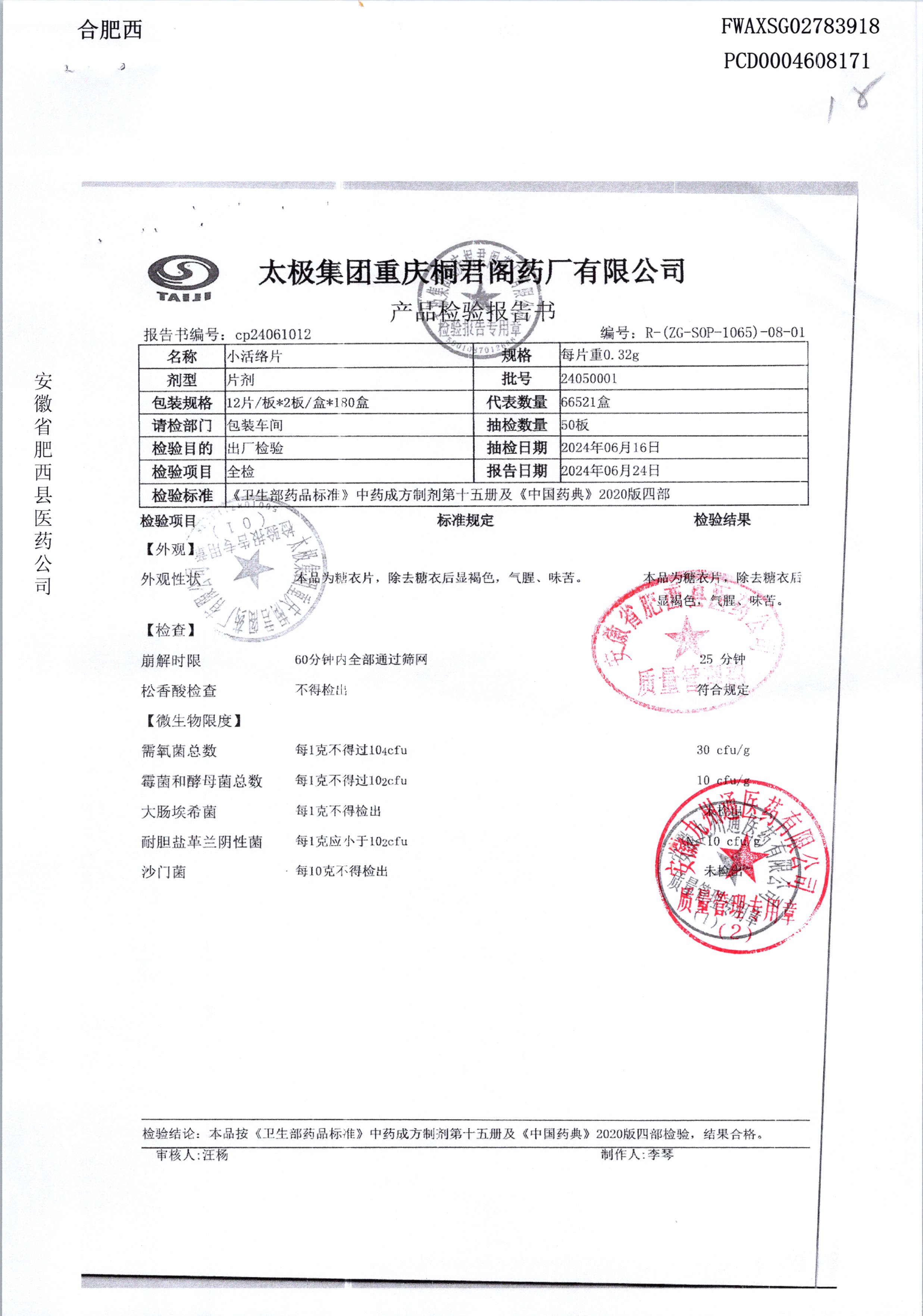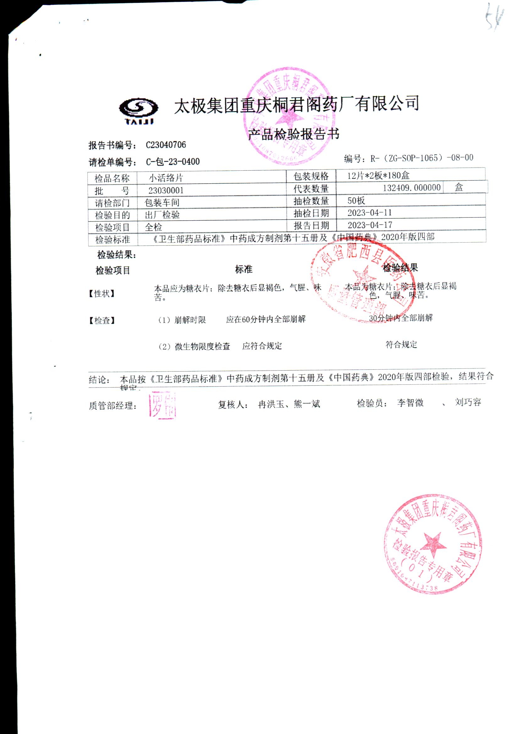 小活络丸 | 24片 | 22040002 | 查看详情 |