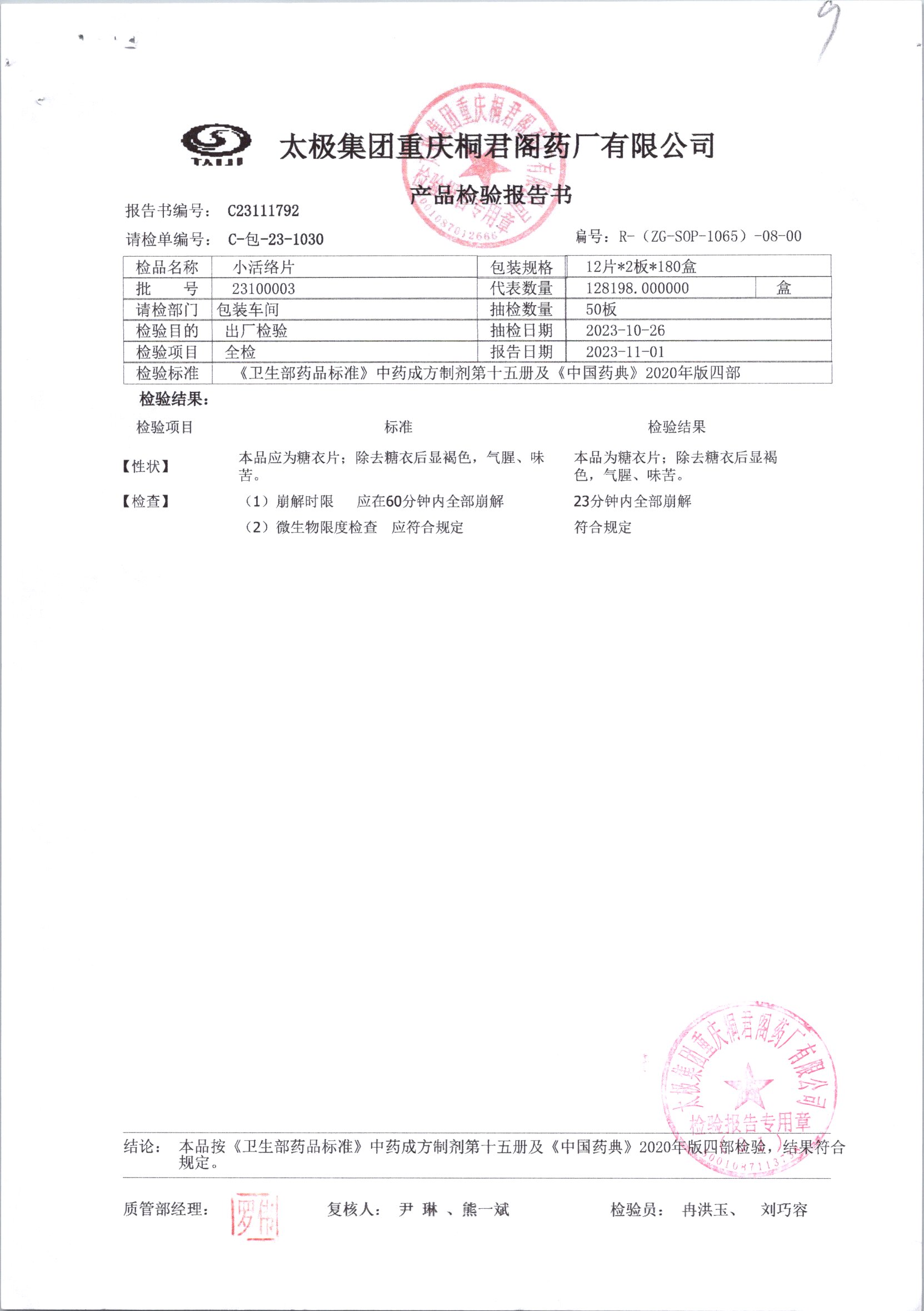 小活络丸 | 24片 | 23100003 | 查看详情 |