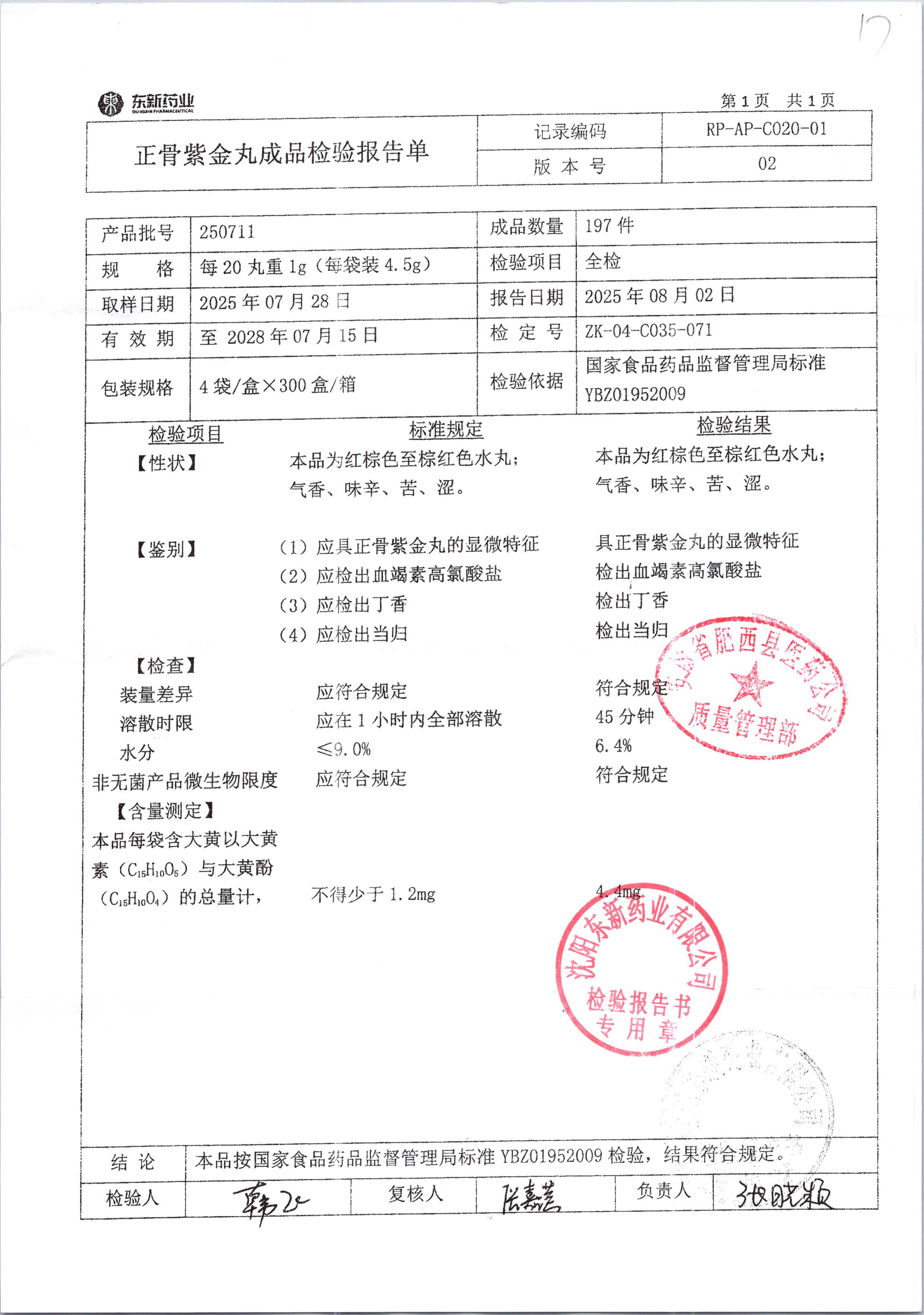 药检报告