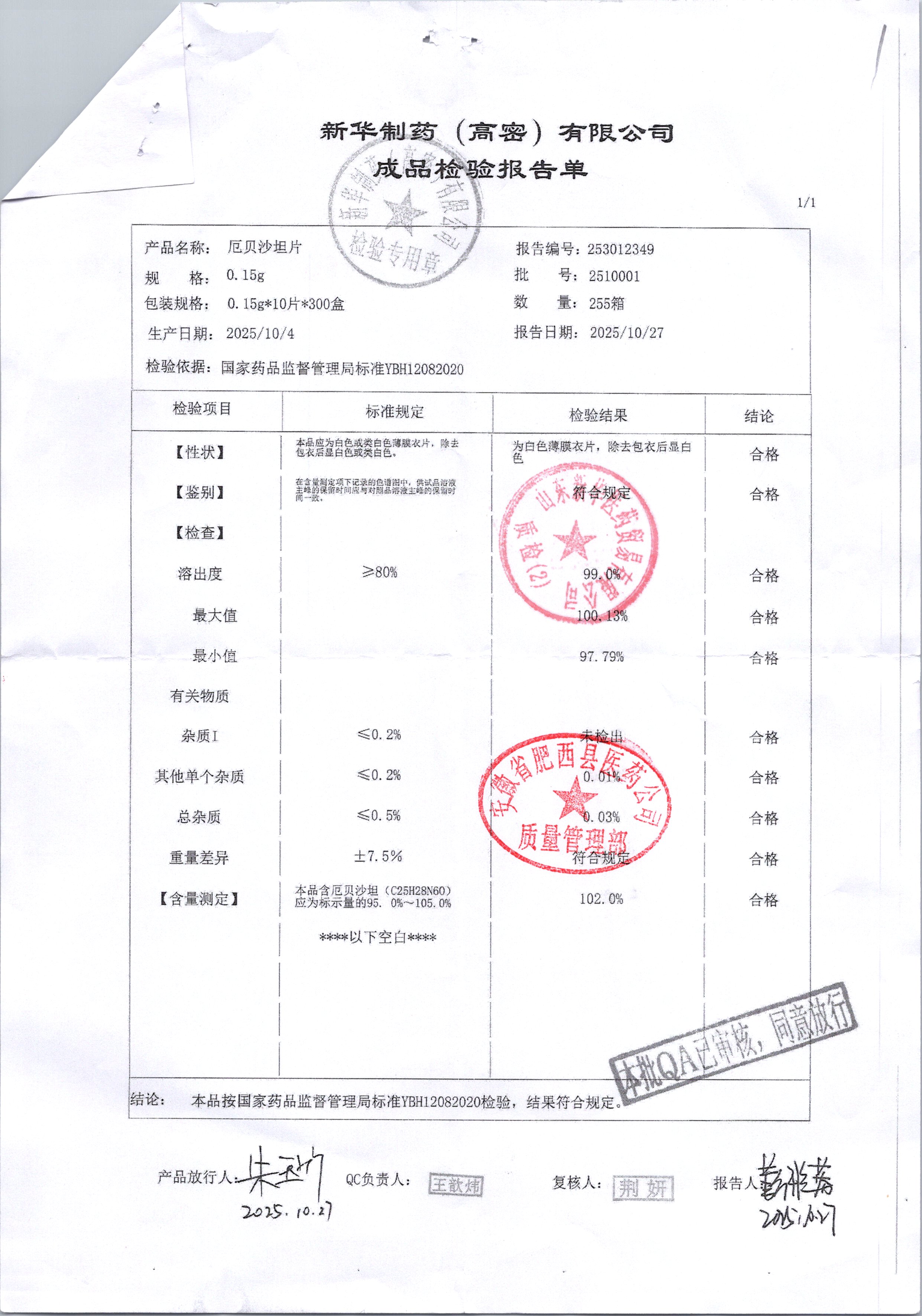 | 名称 | 规格 | 批号 | 药检报告 |