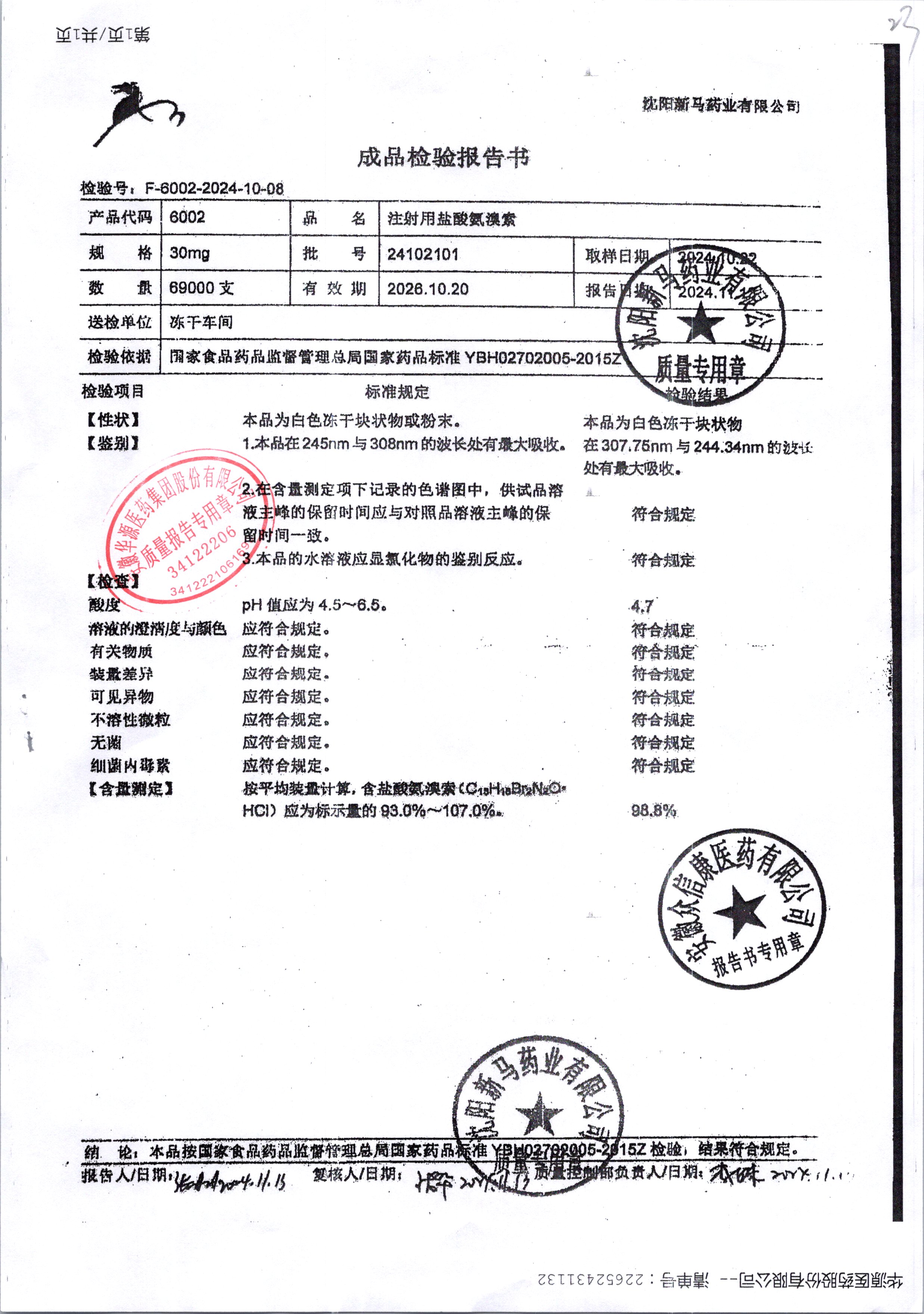 | 注射用盐酸氨溴索 | 30mg | 25041102 | 查看详情 |