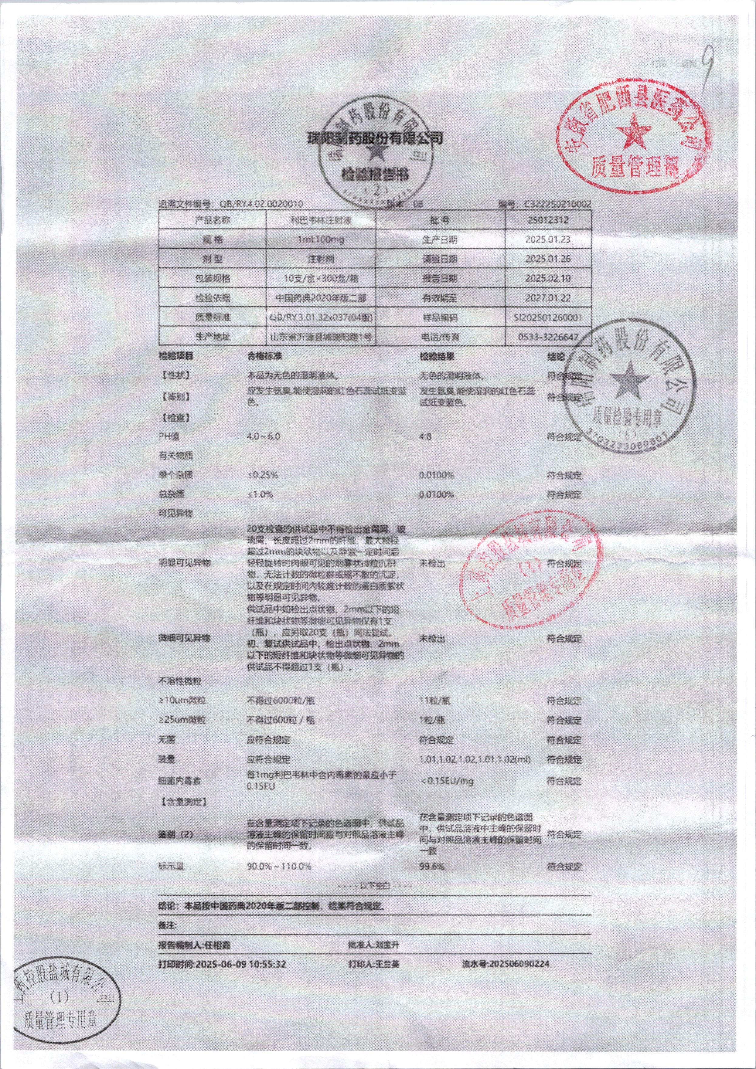 | 利巴韦林注射液 | 1ml:100mg | 25051311 | 查看详情 |