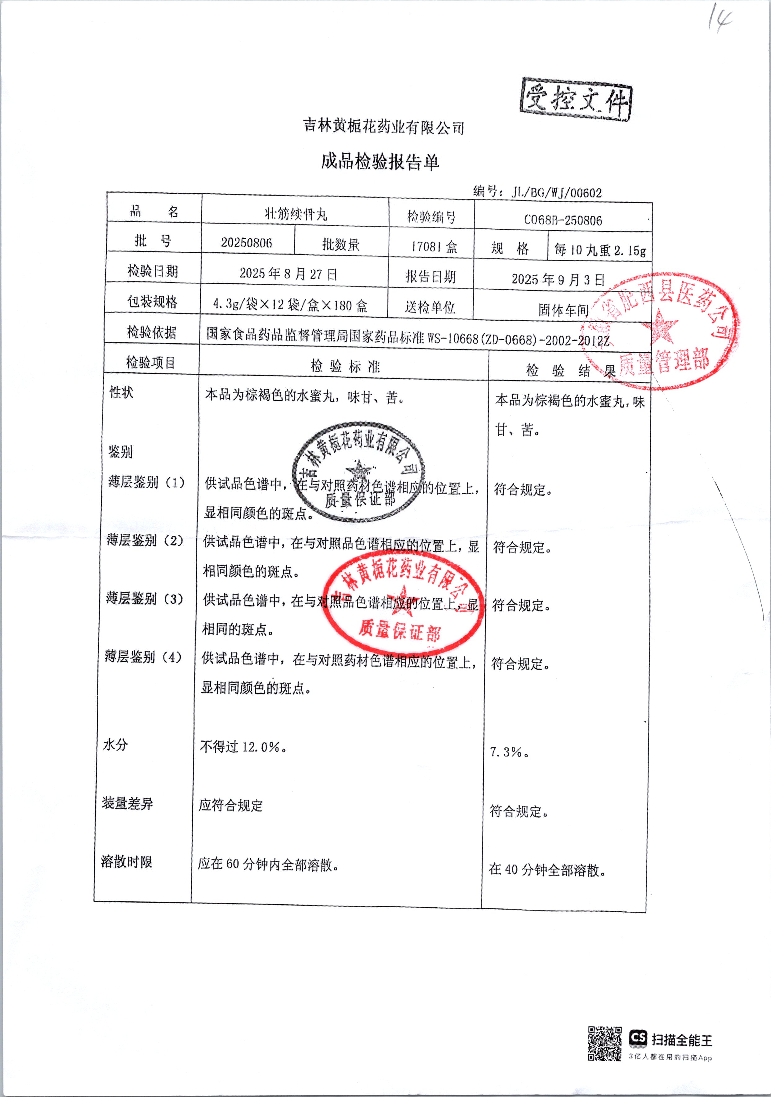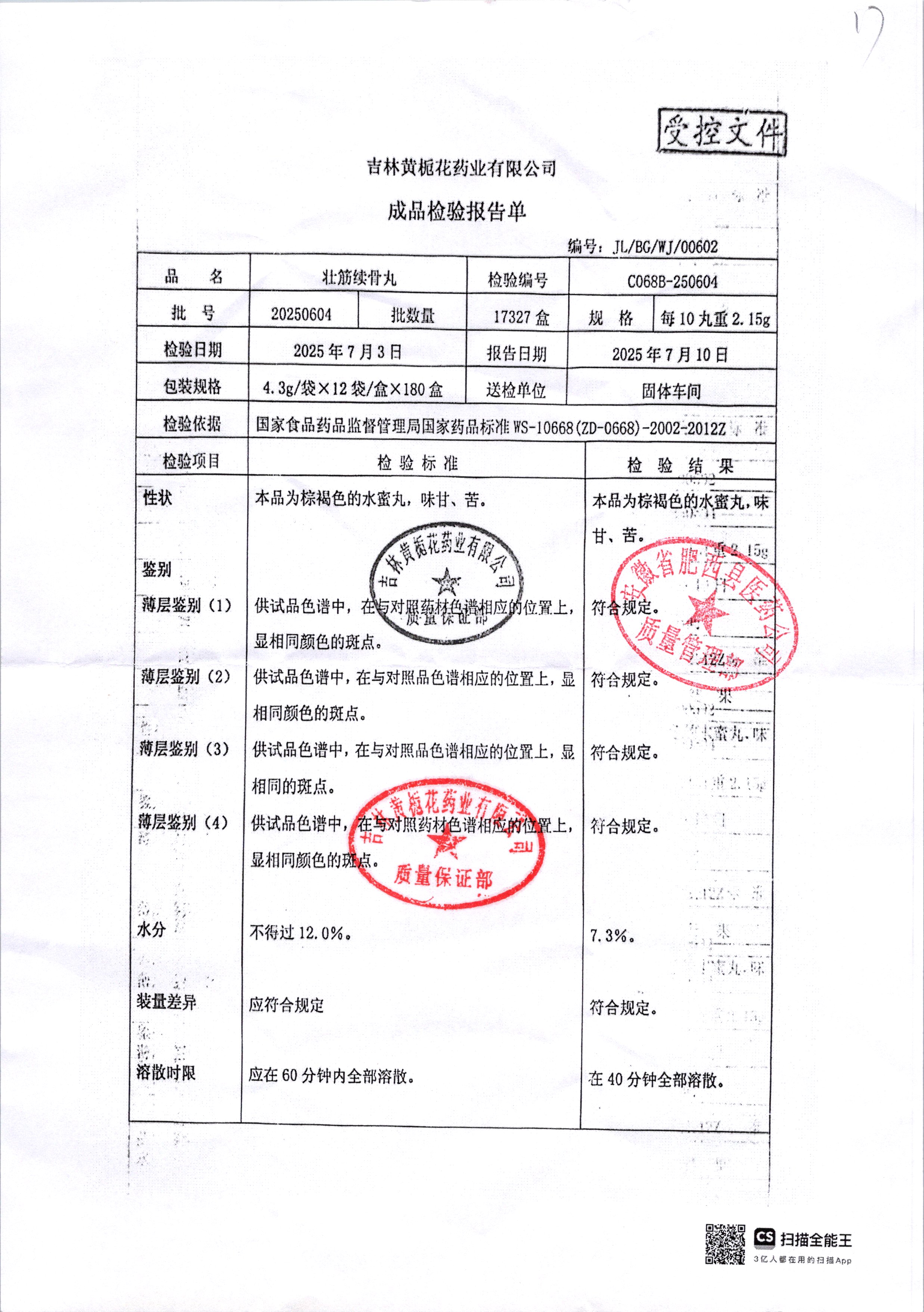 | 壮筋续骨丸 | 10丸2.15g | 20250604/2 | 查看详情 |