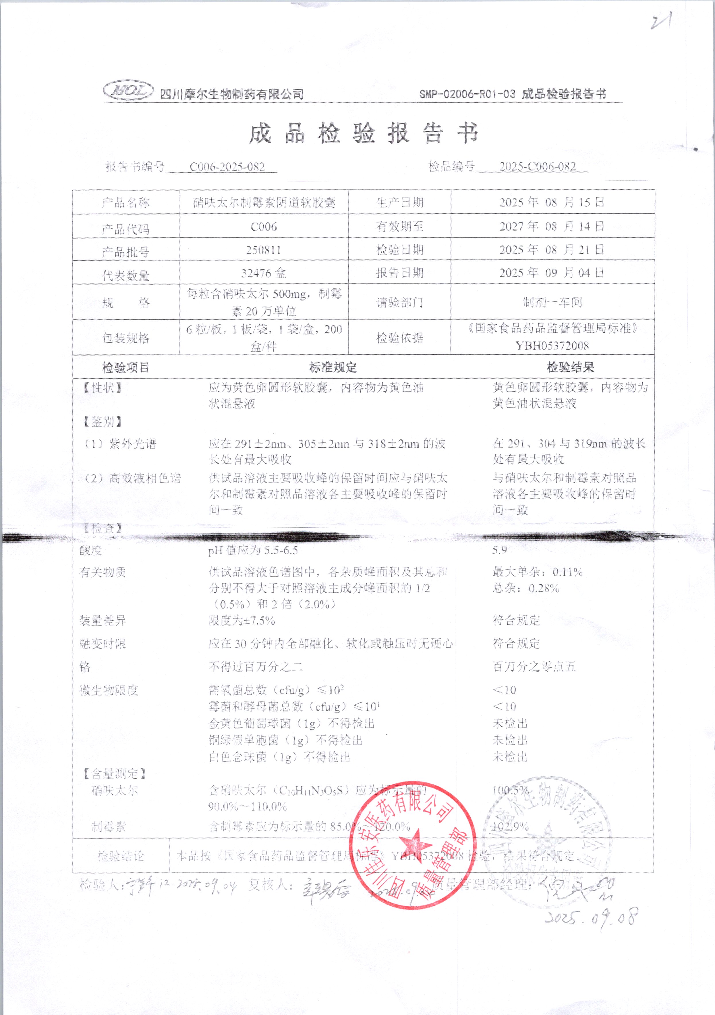 | 硝呋太尔制霉素阴道软胶囊 | 500mg*6粒 | 250301 | 查看详情 |