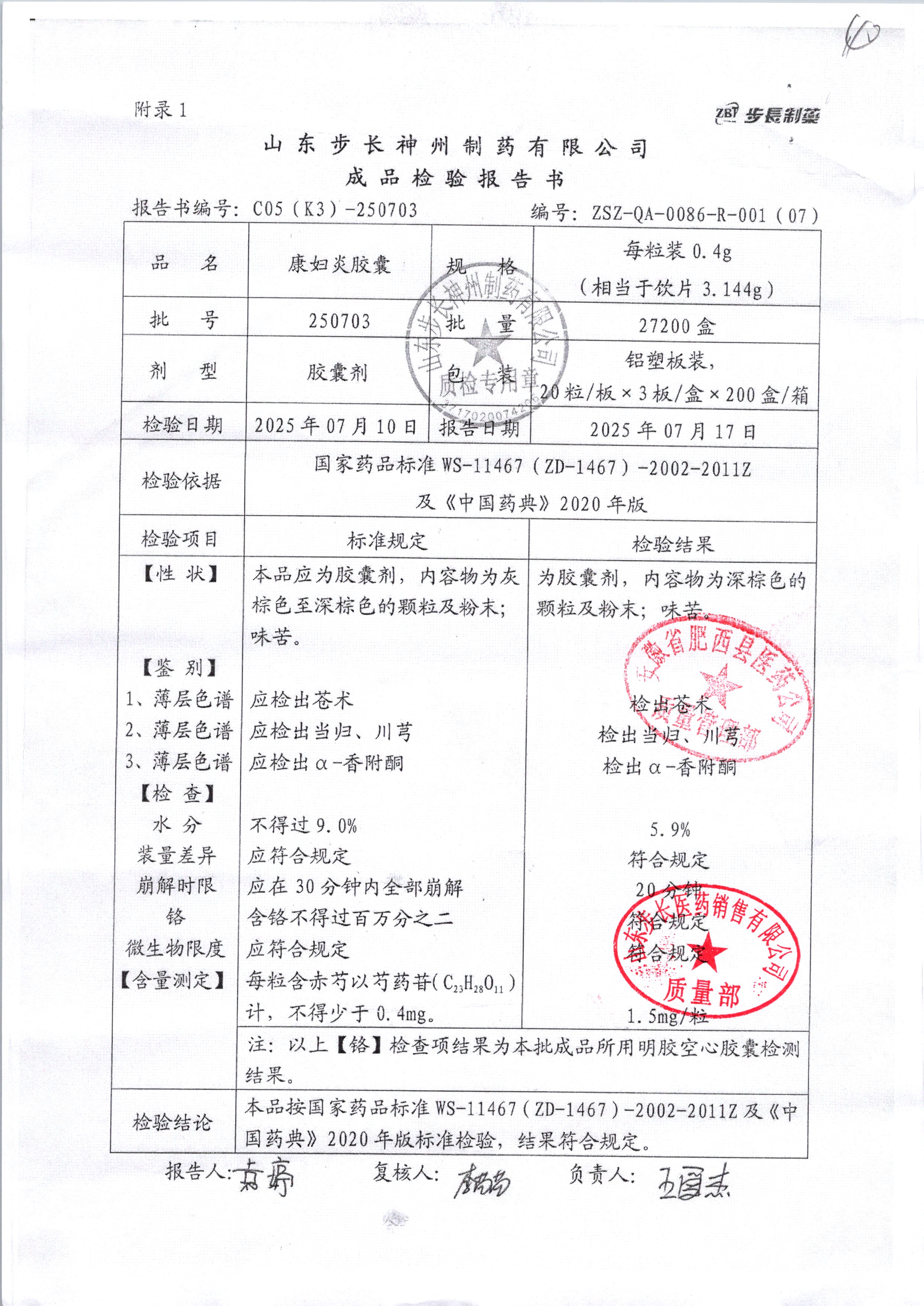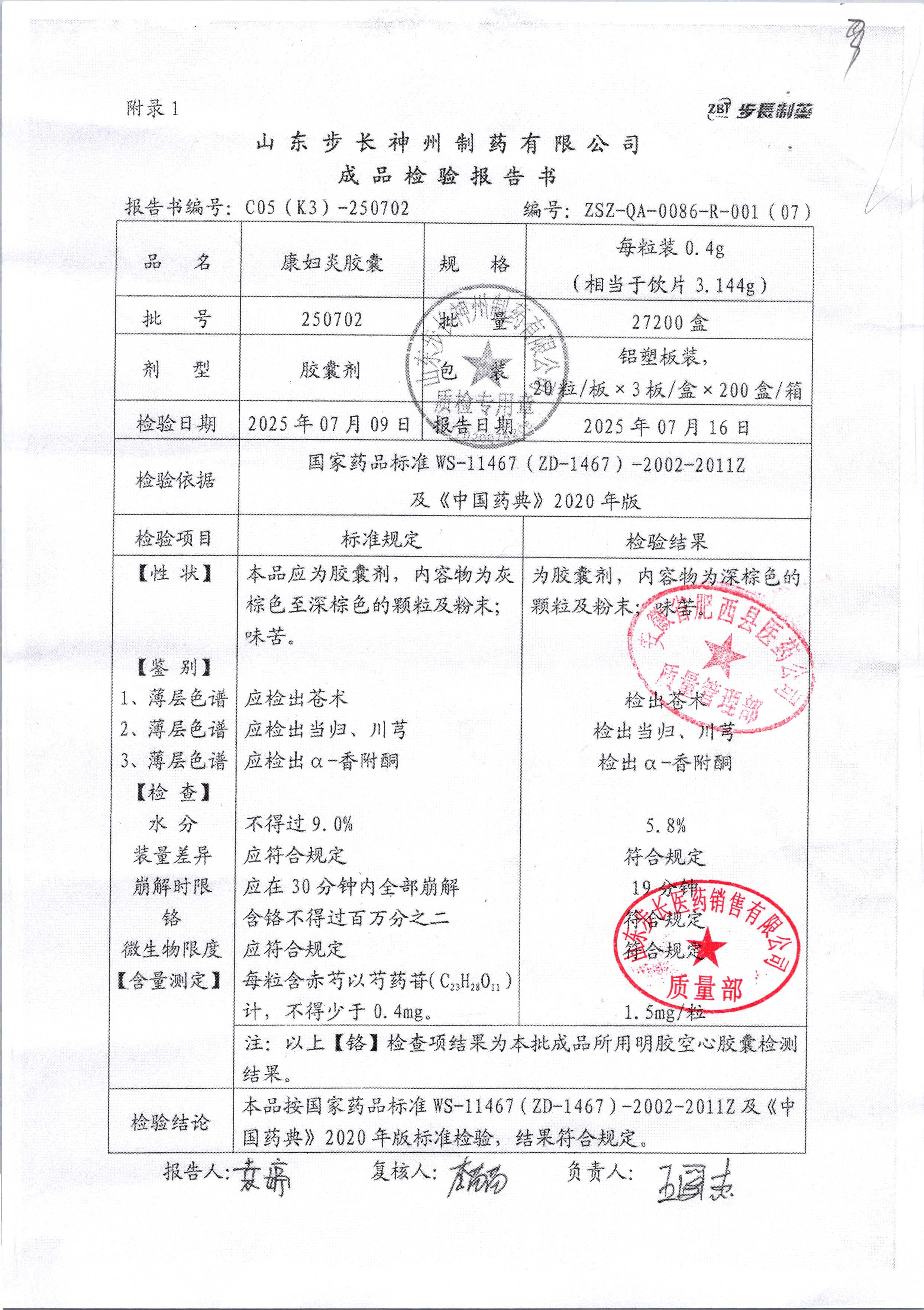 | 康妇炎胶囊 | 0.4g*60粒 | 250503 | 查看详情 |