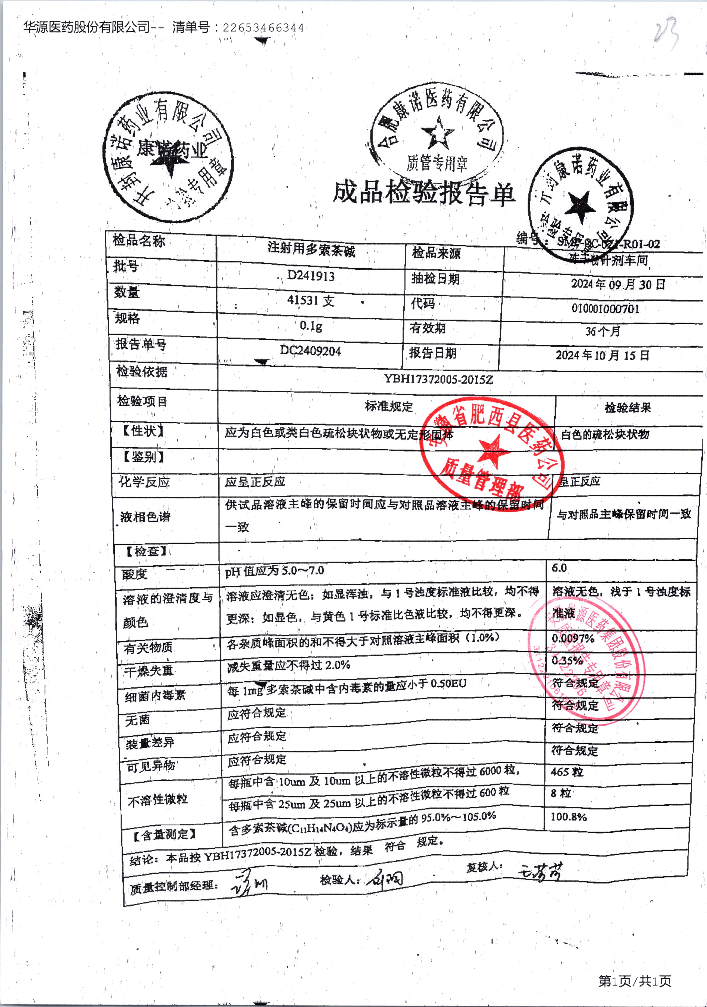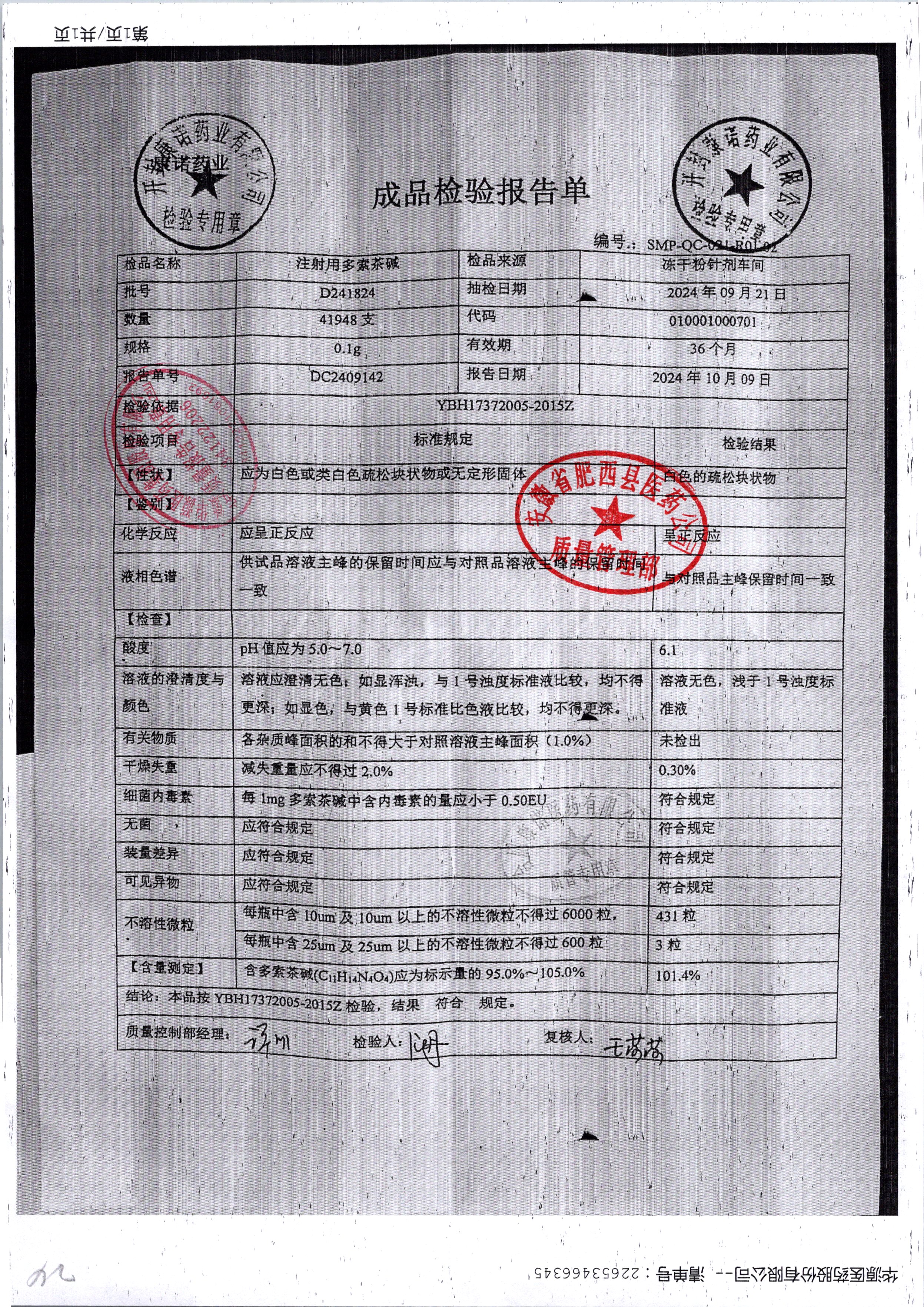药检报告