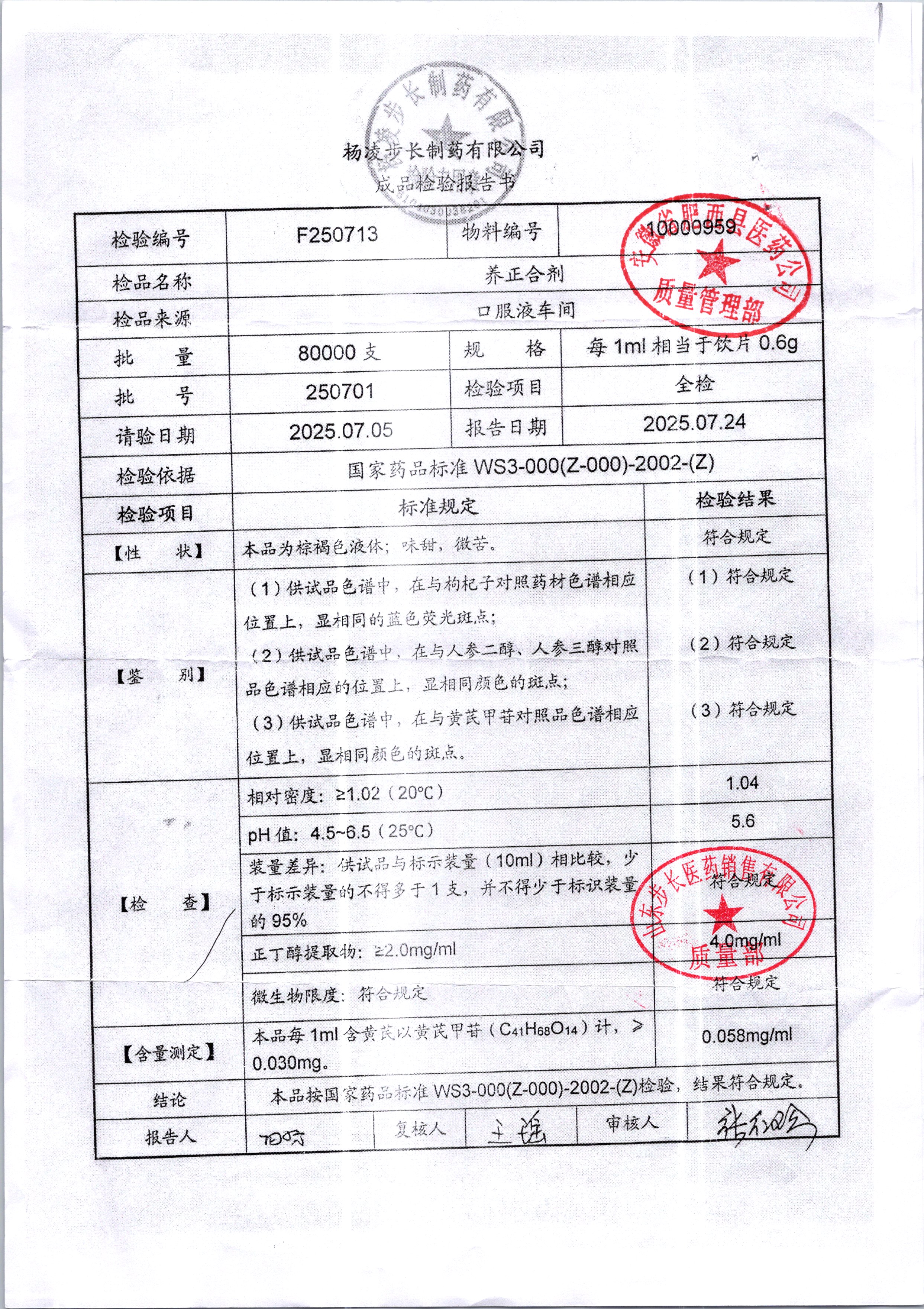 | 养正合剂 | 1ml | 250701 | 查看详情 |