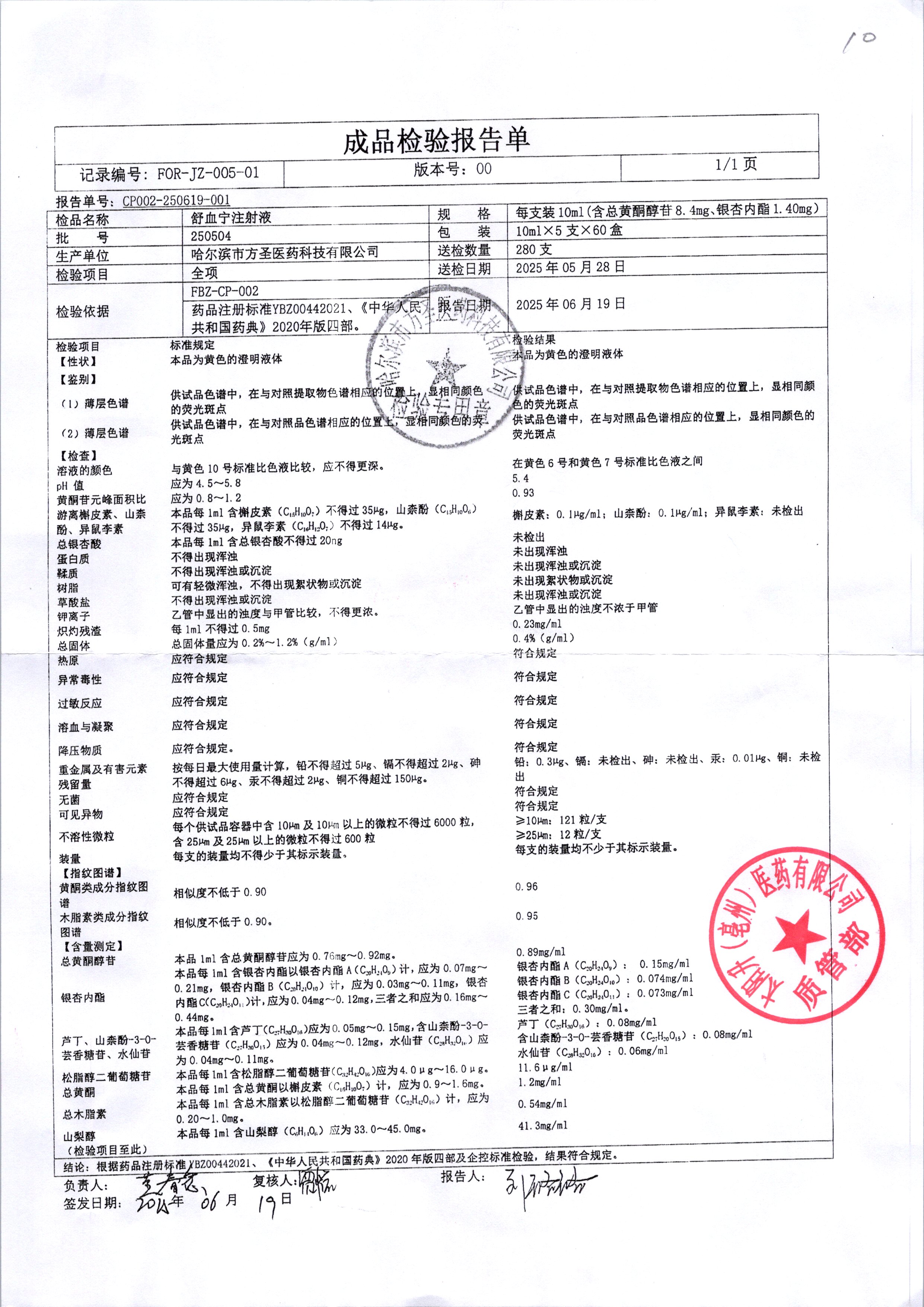 药检报告