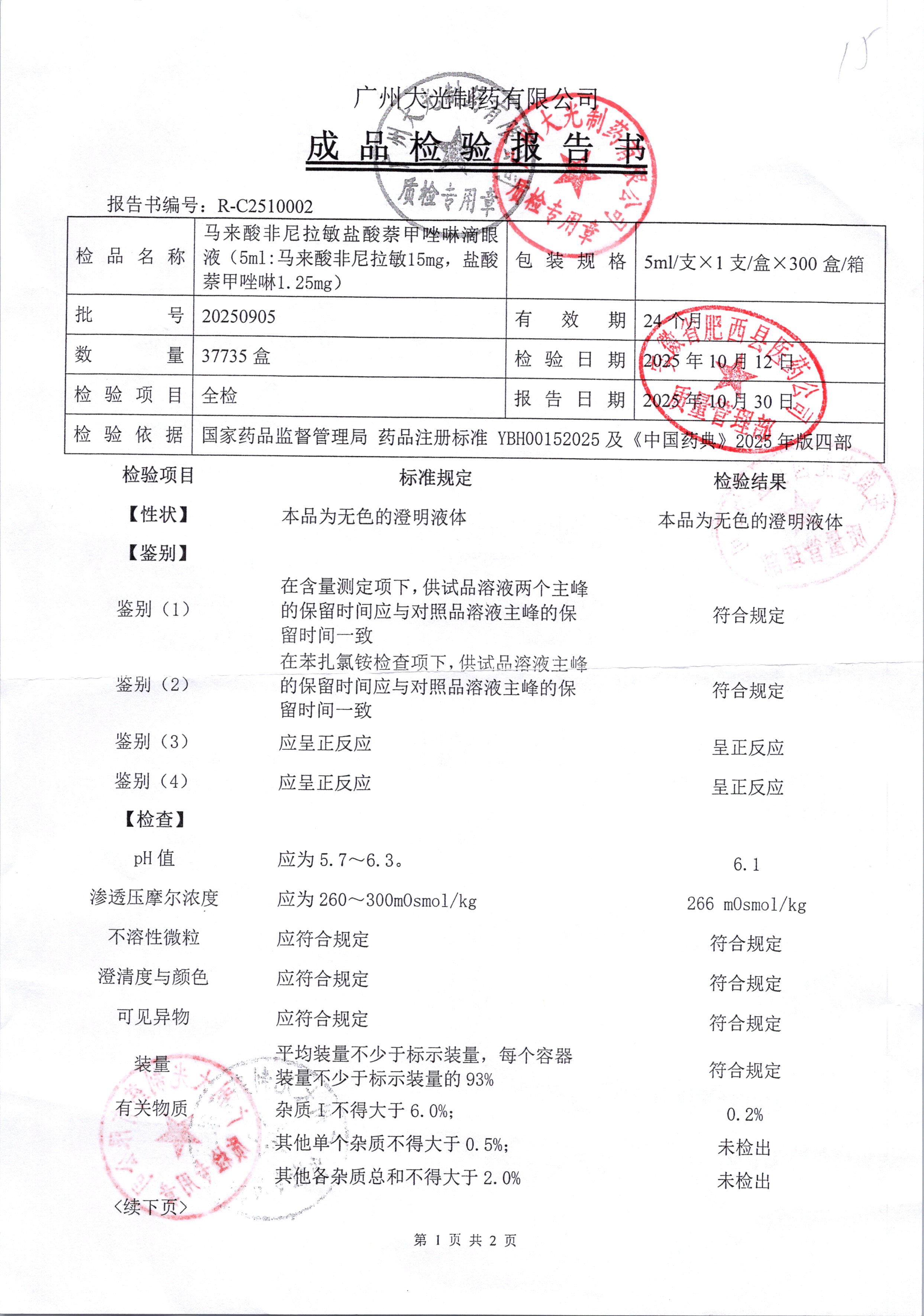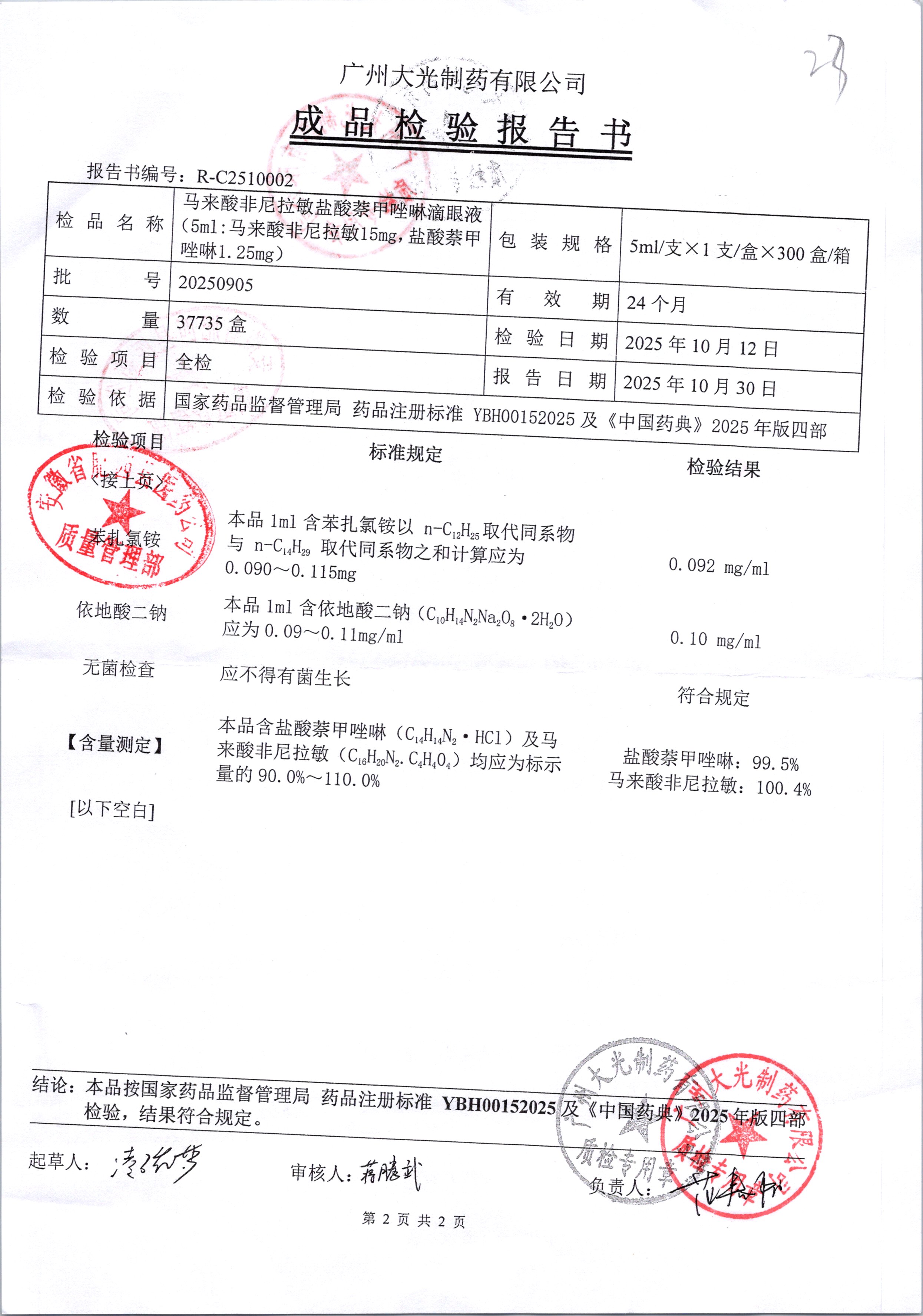| 马来酸非尼拉敏盐酸萘甲唑啉滴眼液 | 5ml | 20250905/2 | 查看详情 |