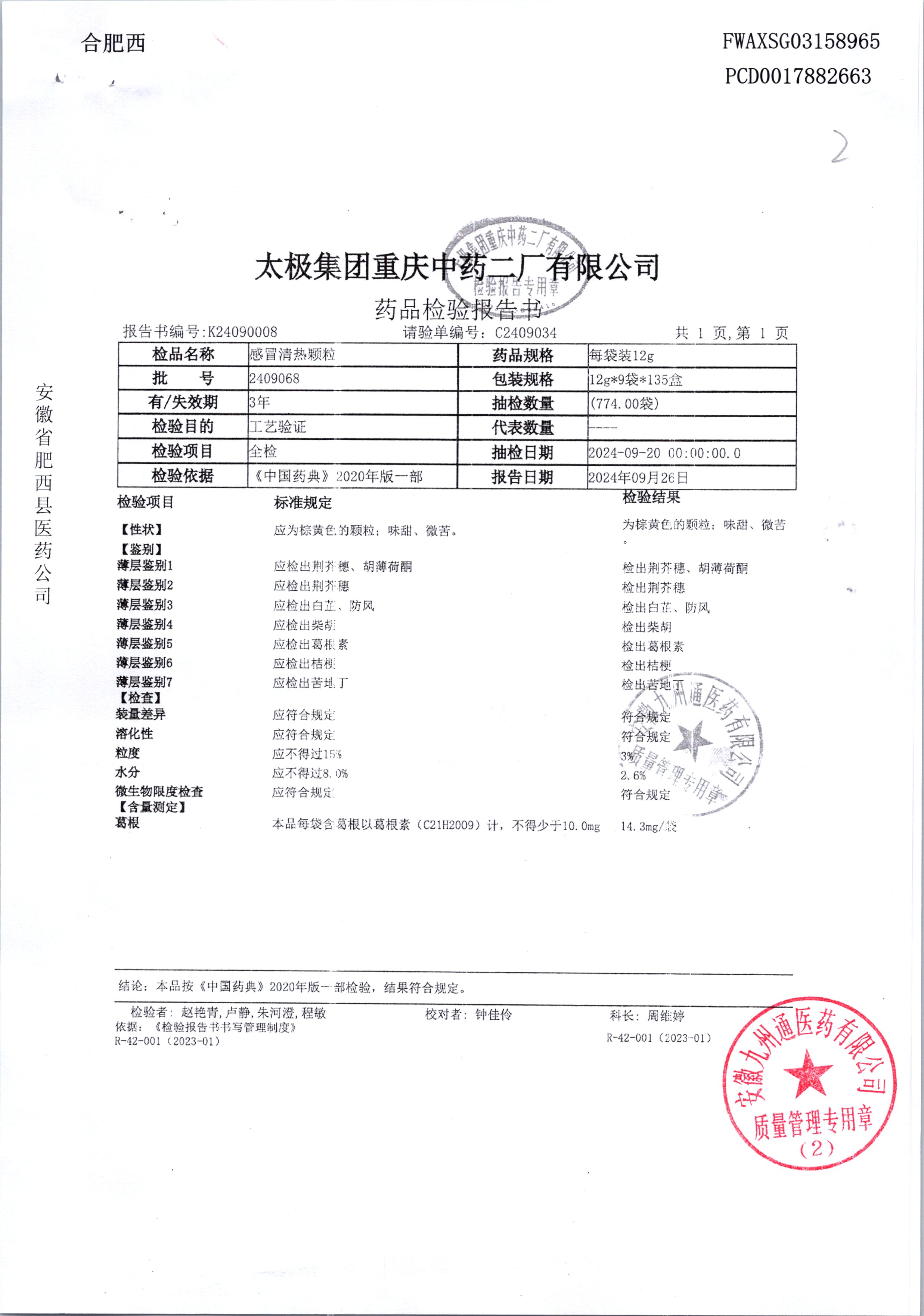| 感冒清热颗粒 | 12g*12*9 | 2411107 | 查看详情 |