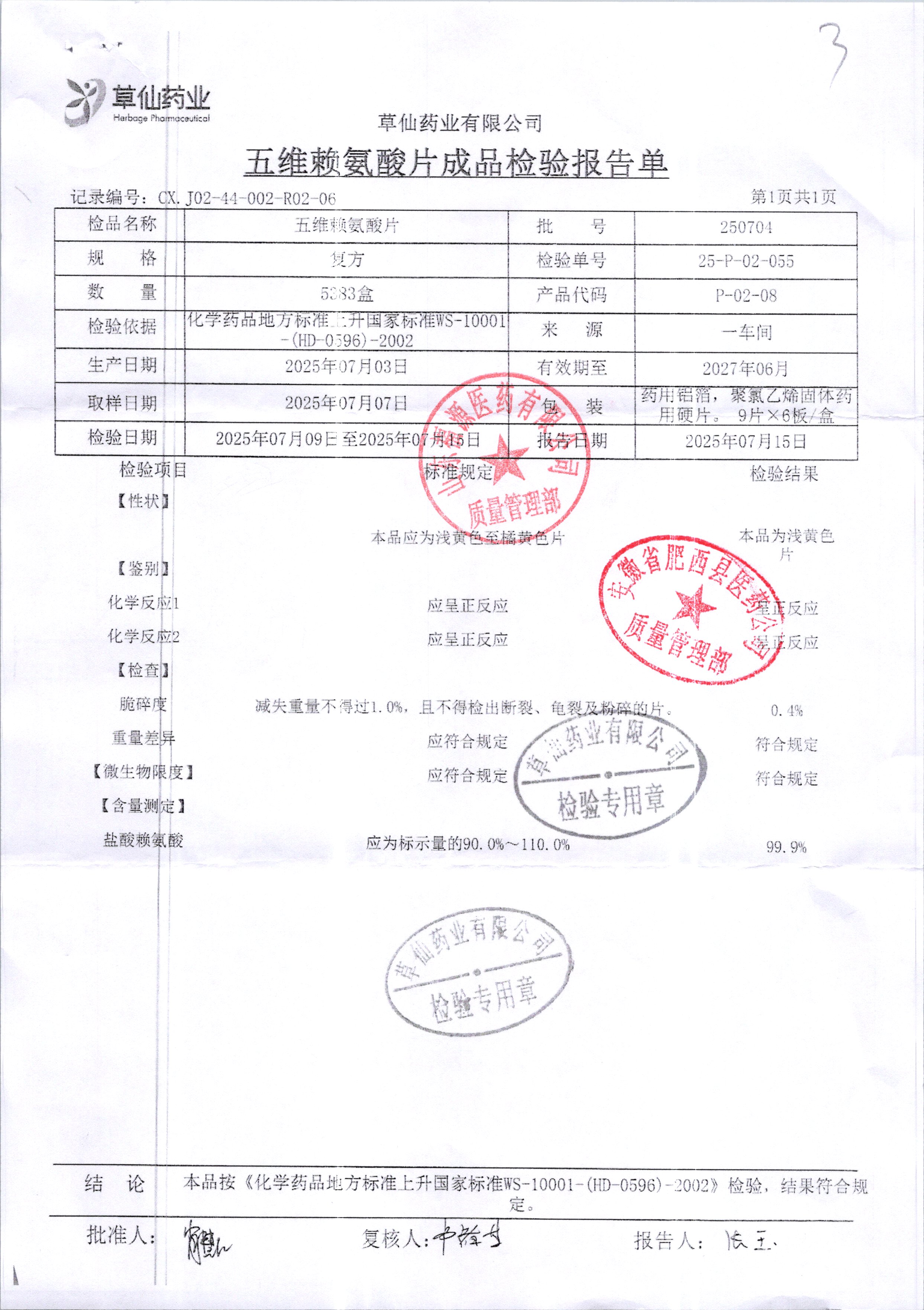药检报告