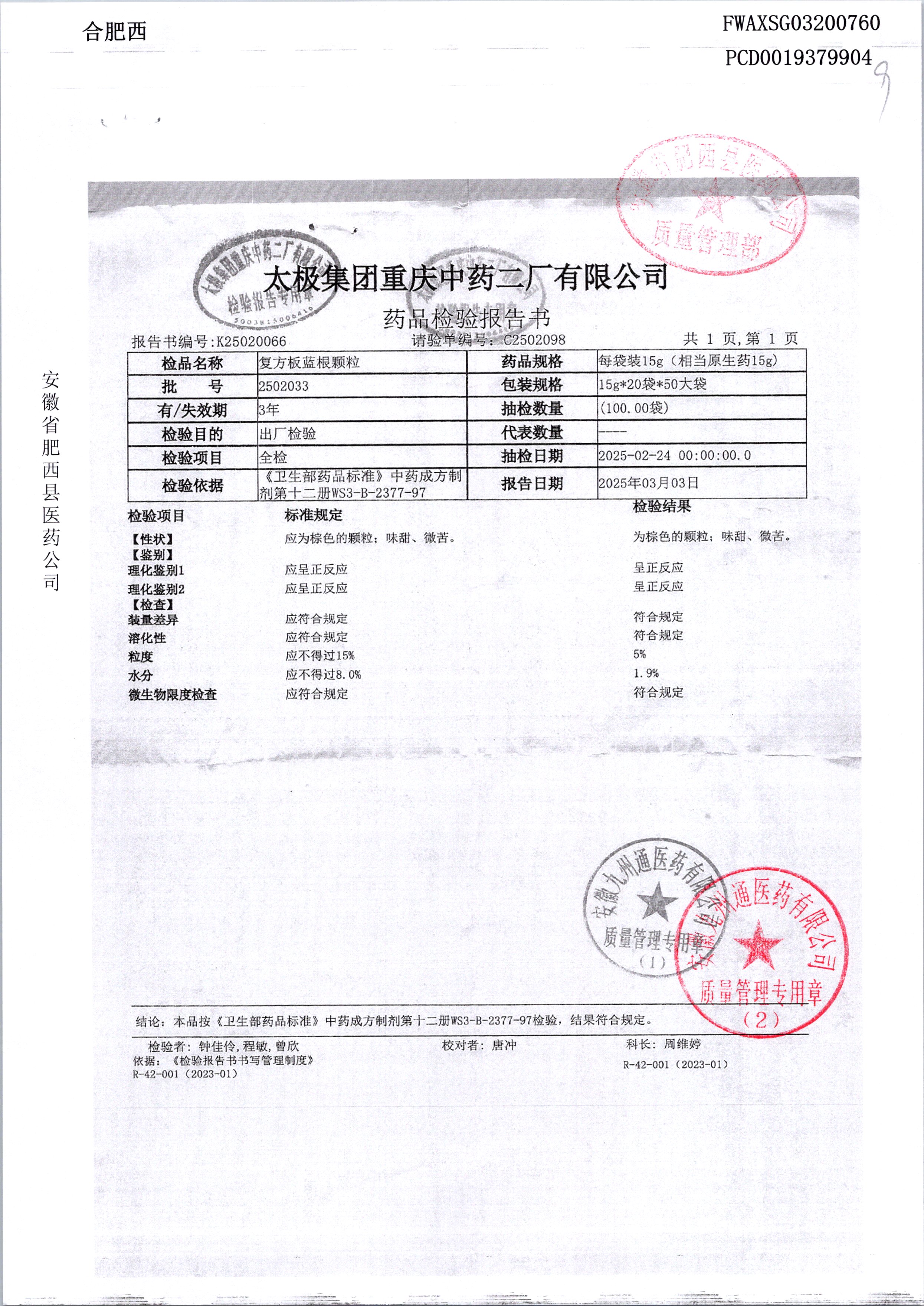 药检报告