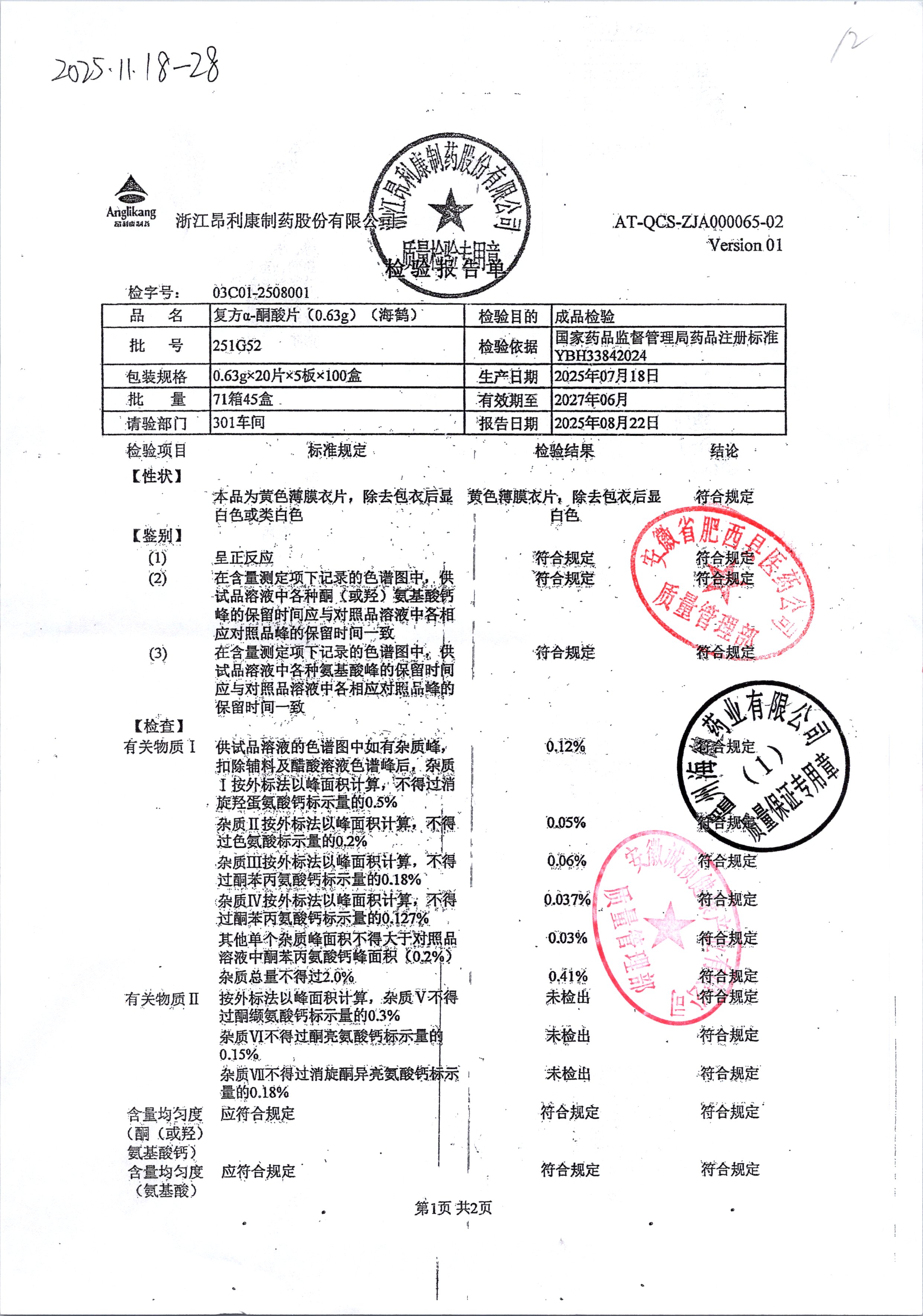 | 复方a-酮酸片 | 0.63g*20片*5 | 251G51/1 | 查看详情 |