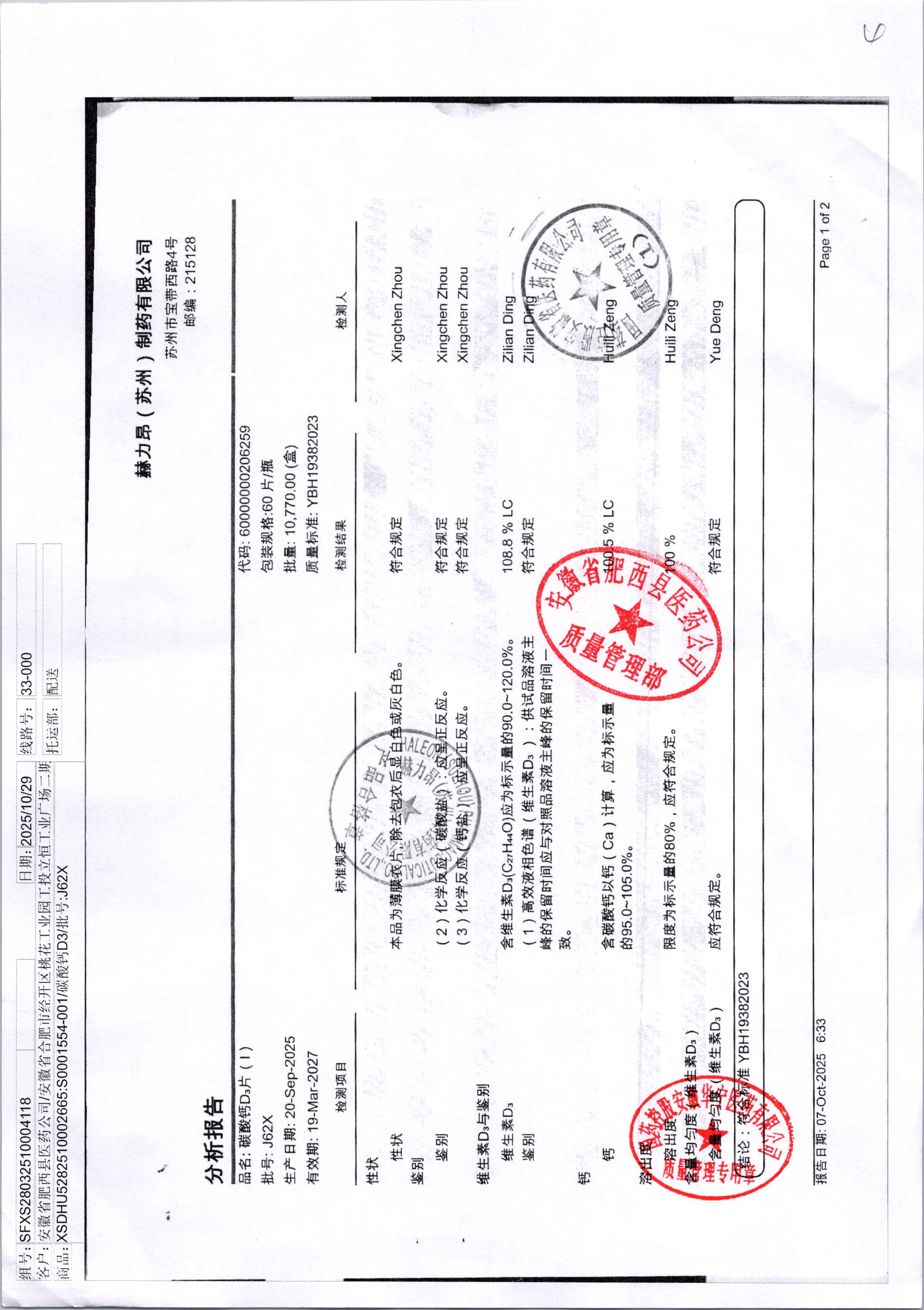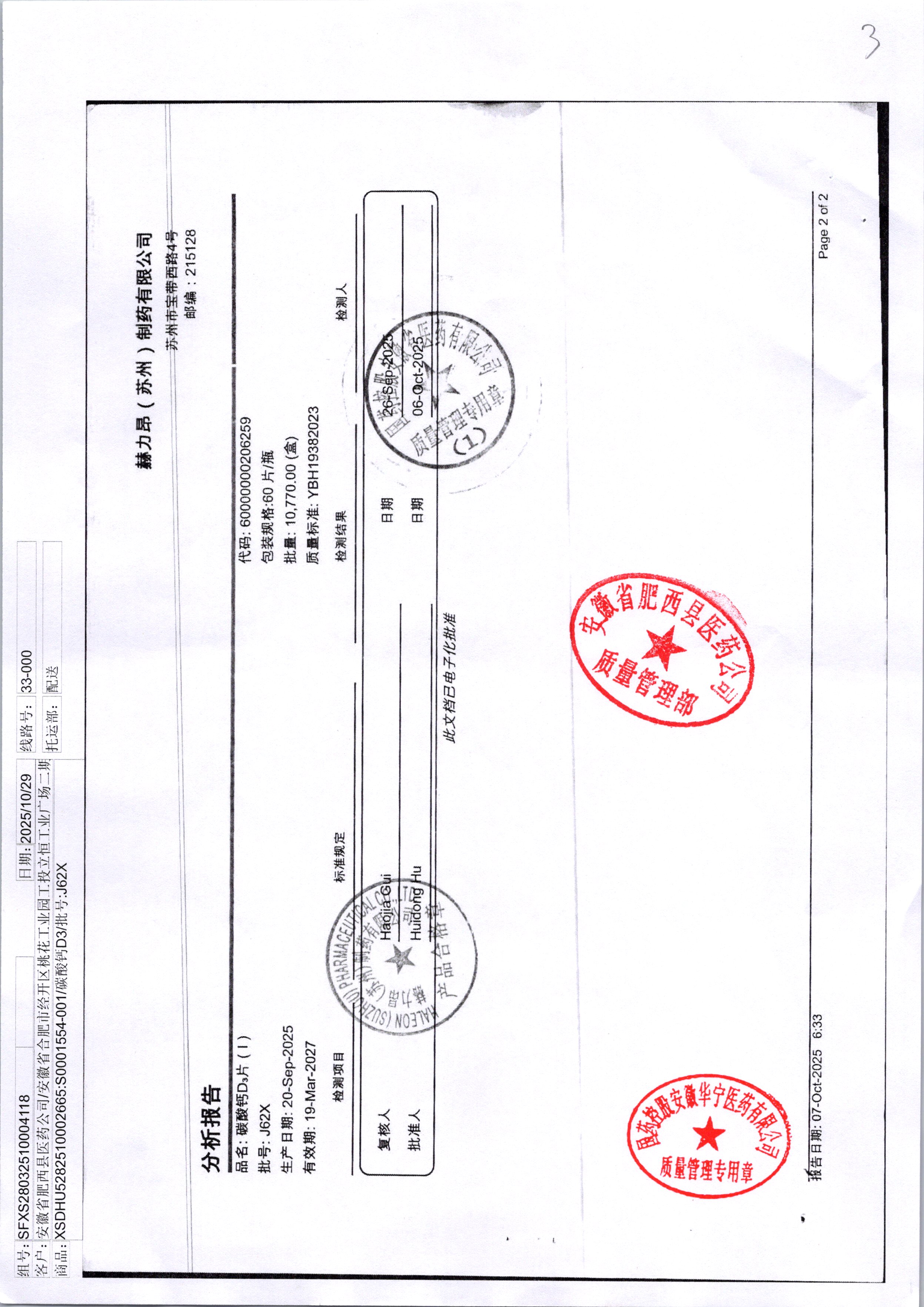 药检报告