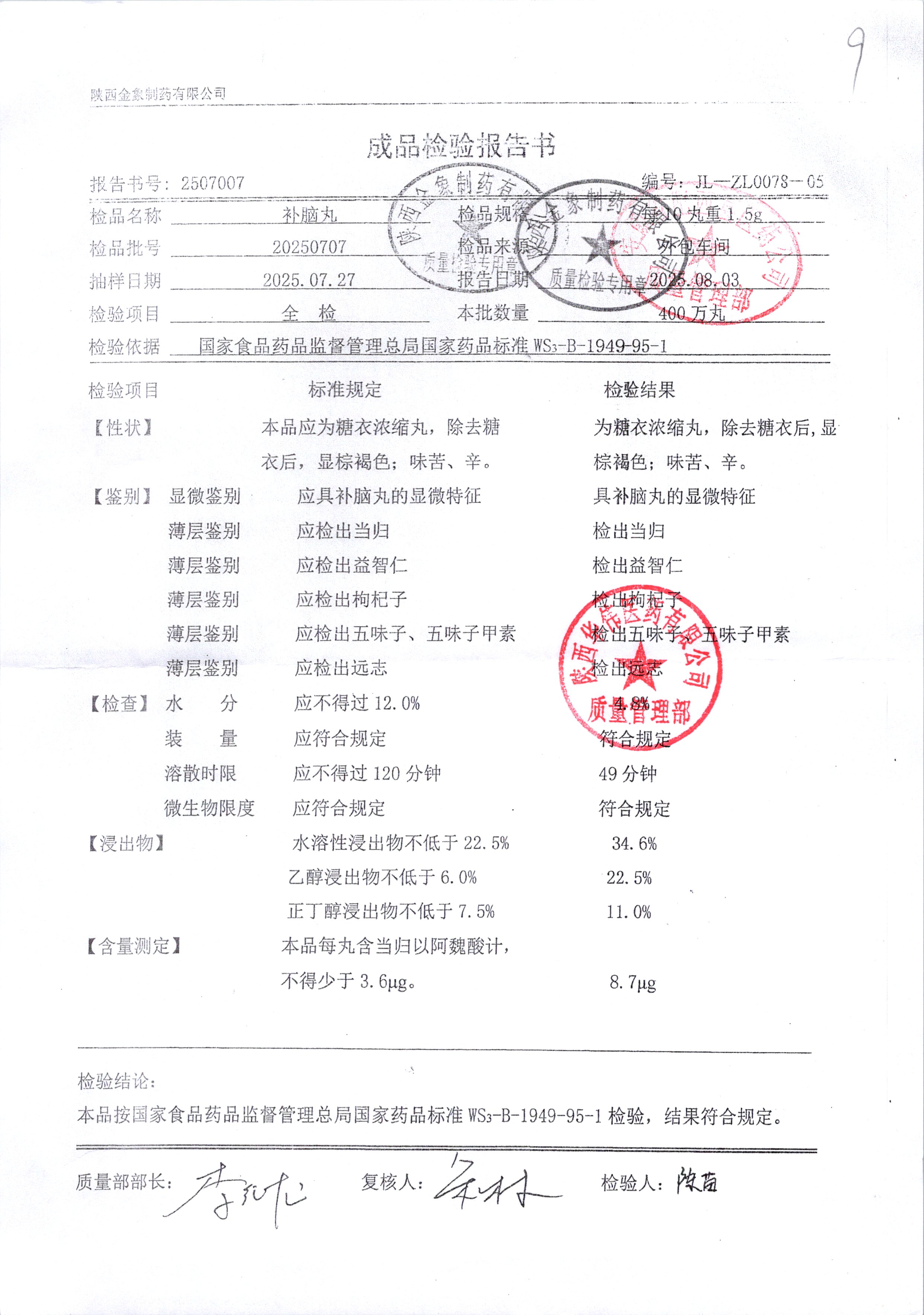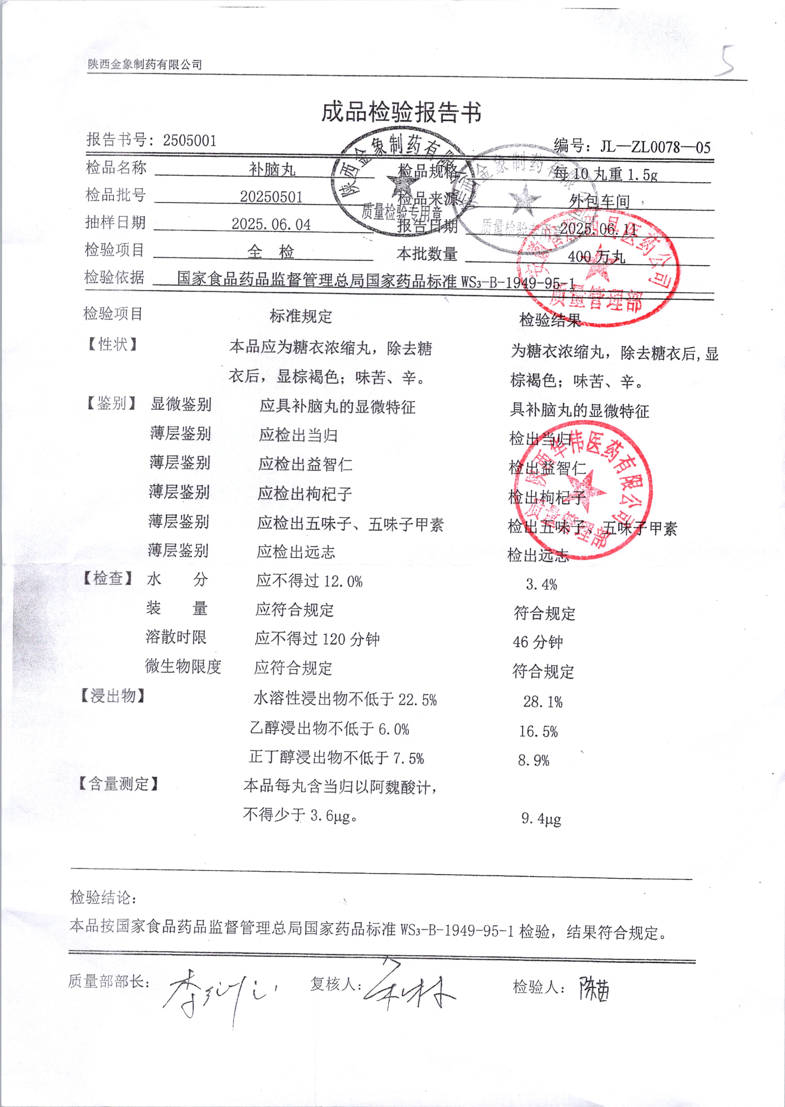 药检报告