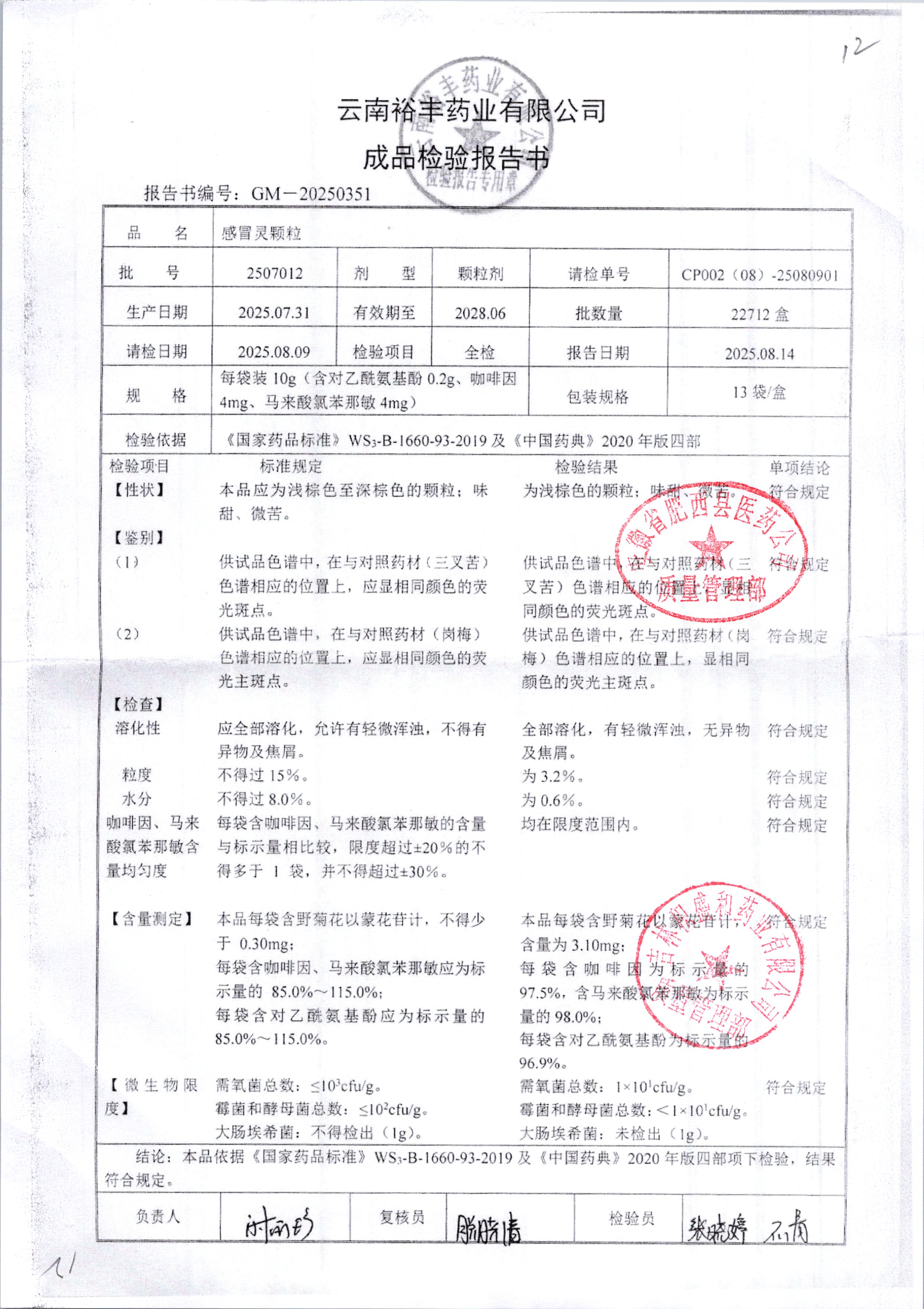 药检报告