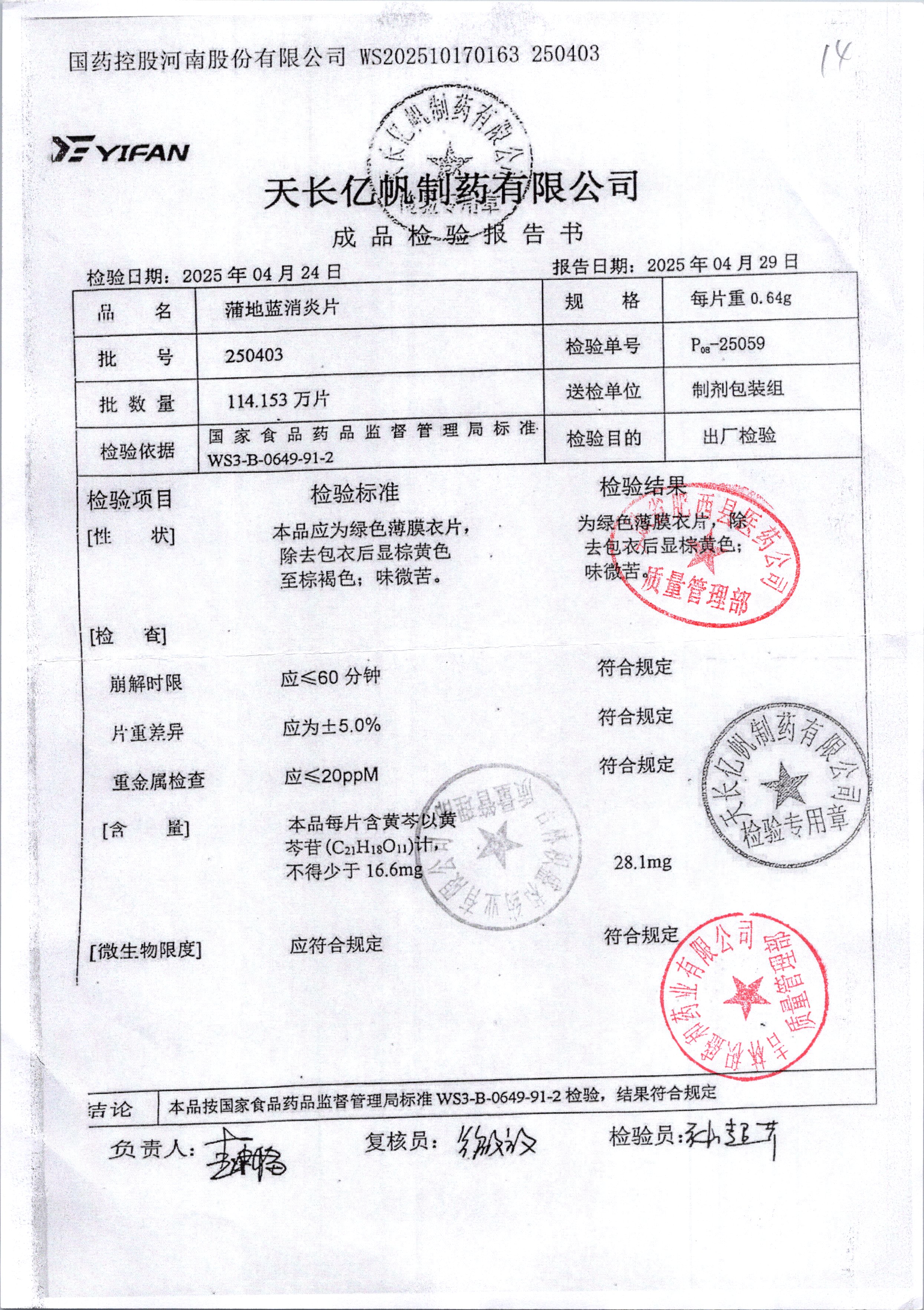 药检报告