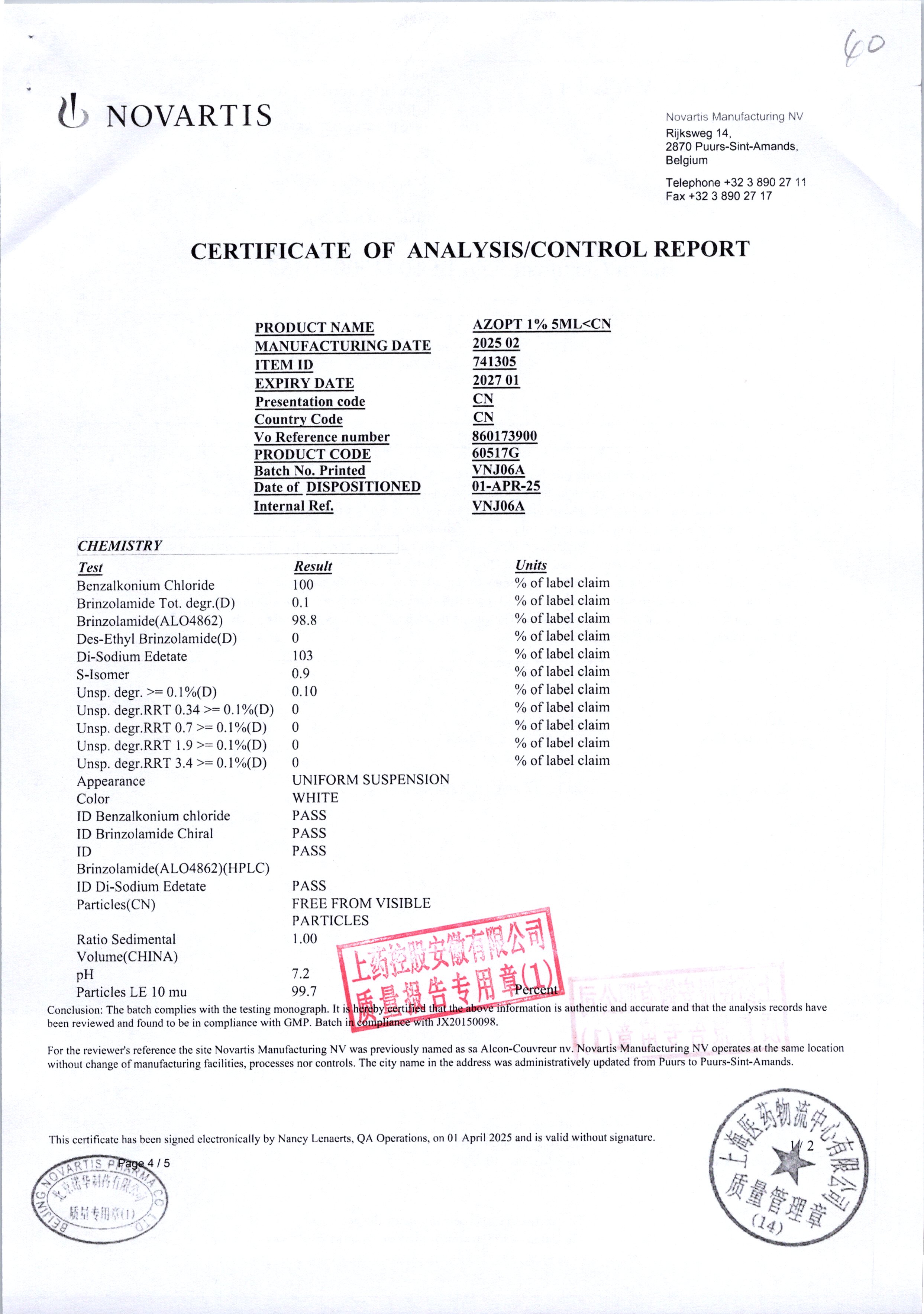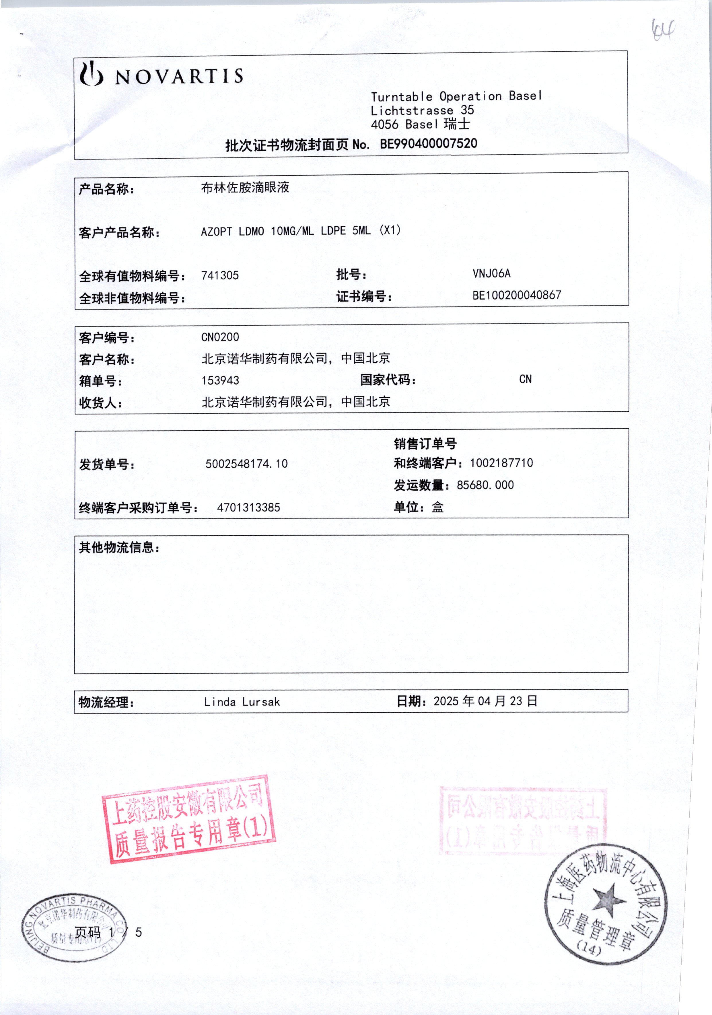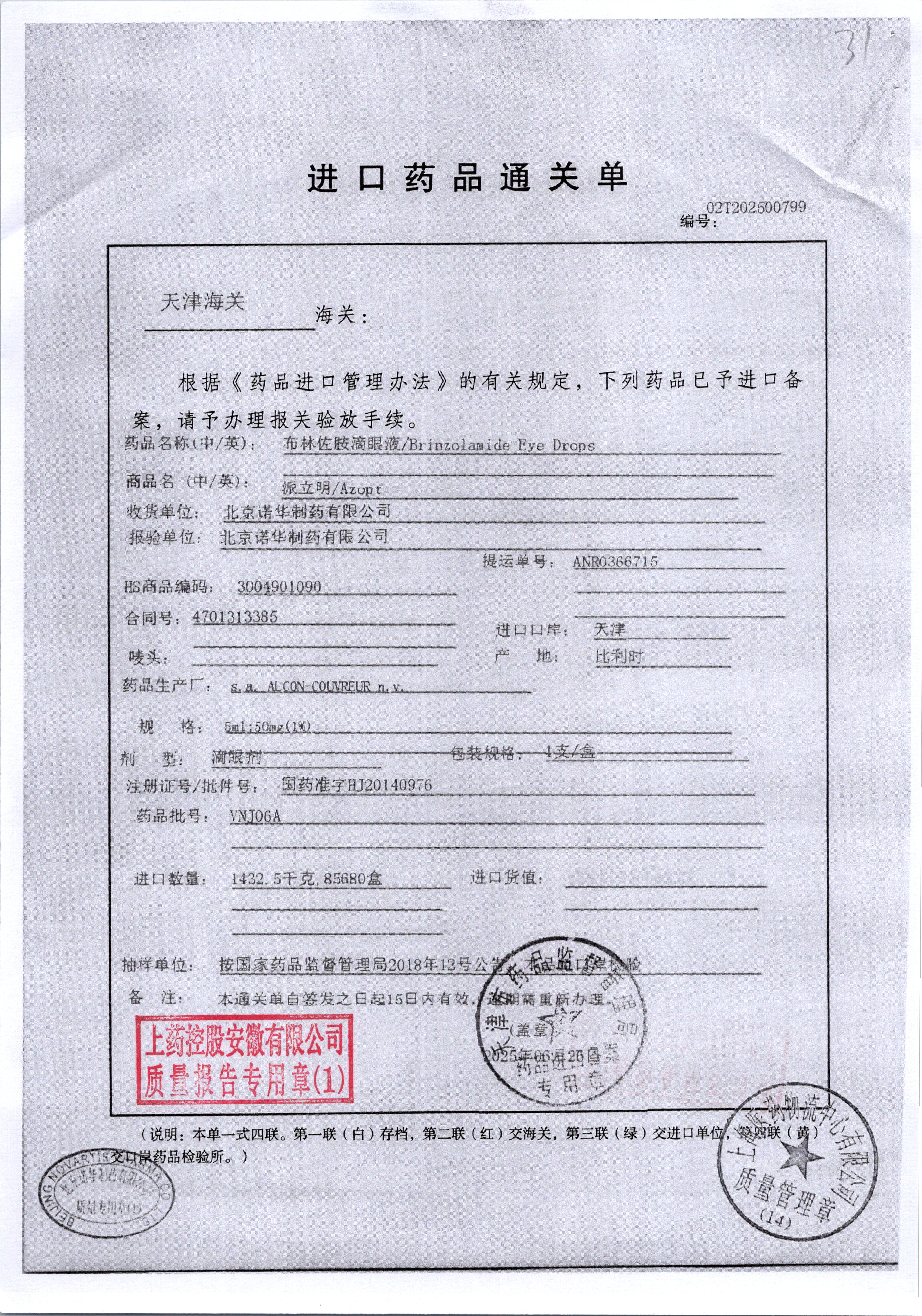| 布林佐胺滴眼液 | 5ml:50mg | VNJ06A/7 | 查看详情 |