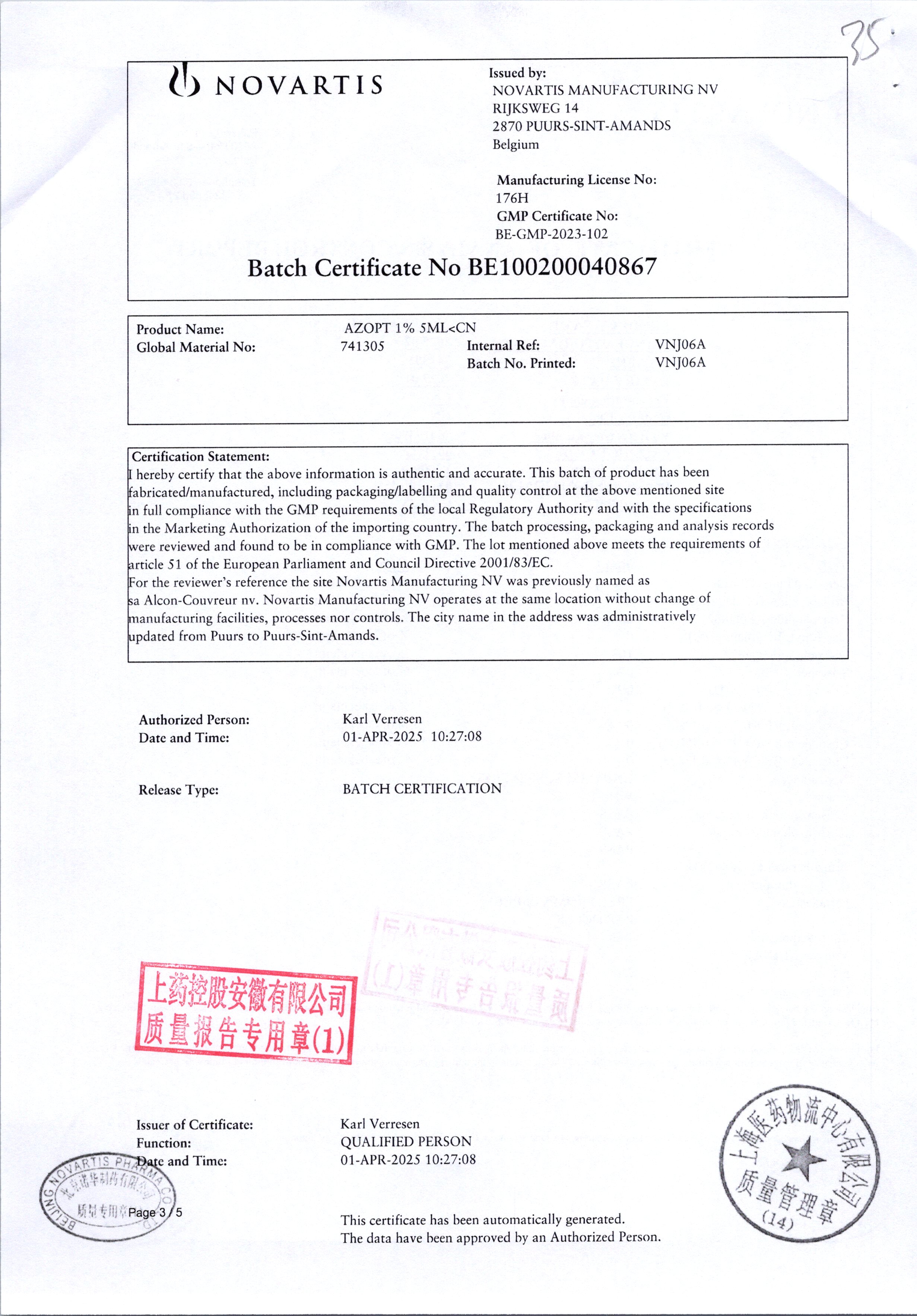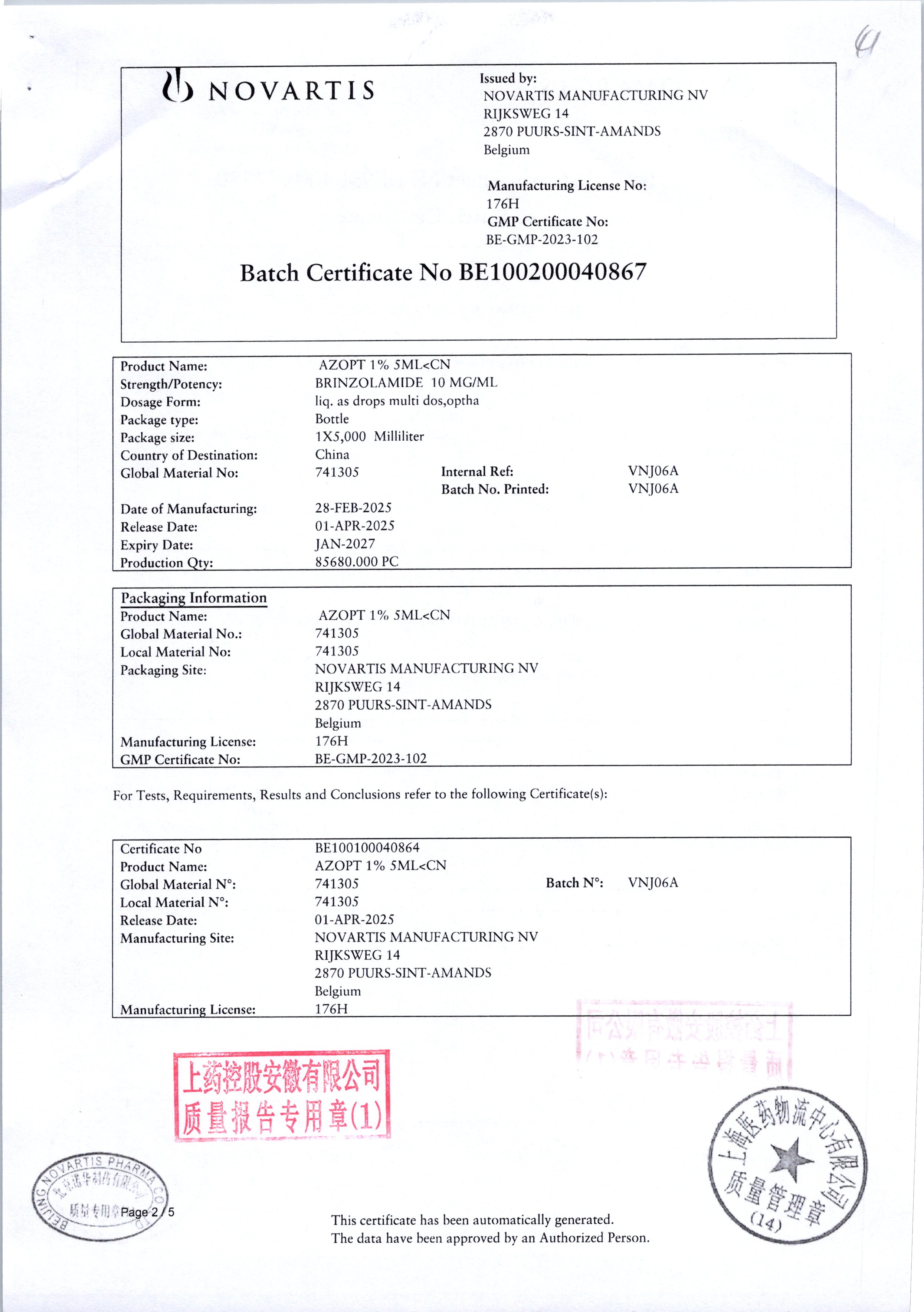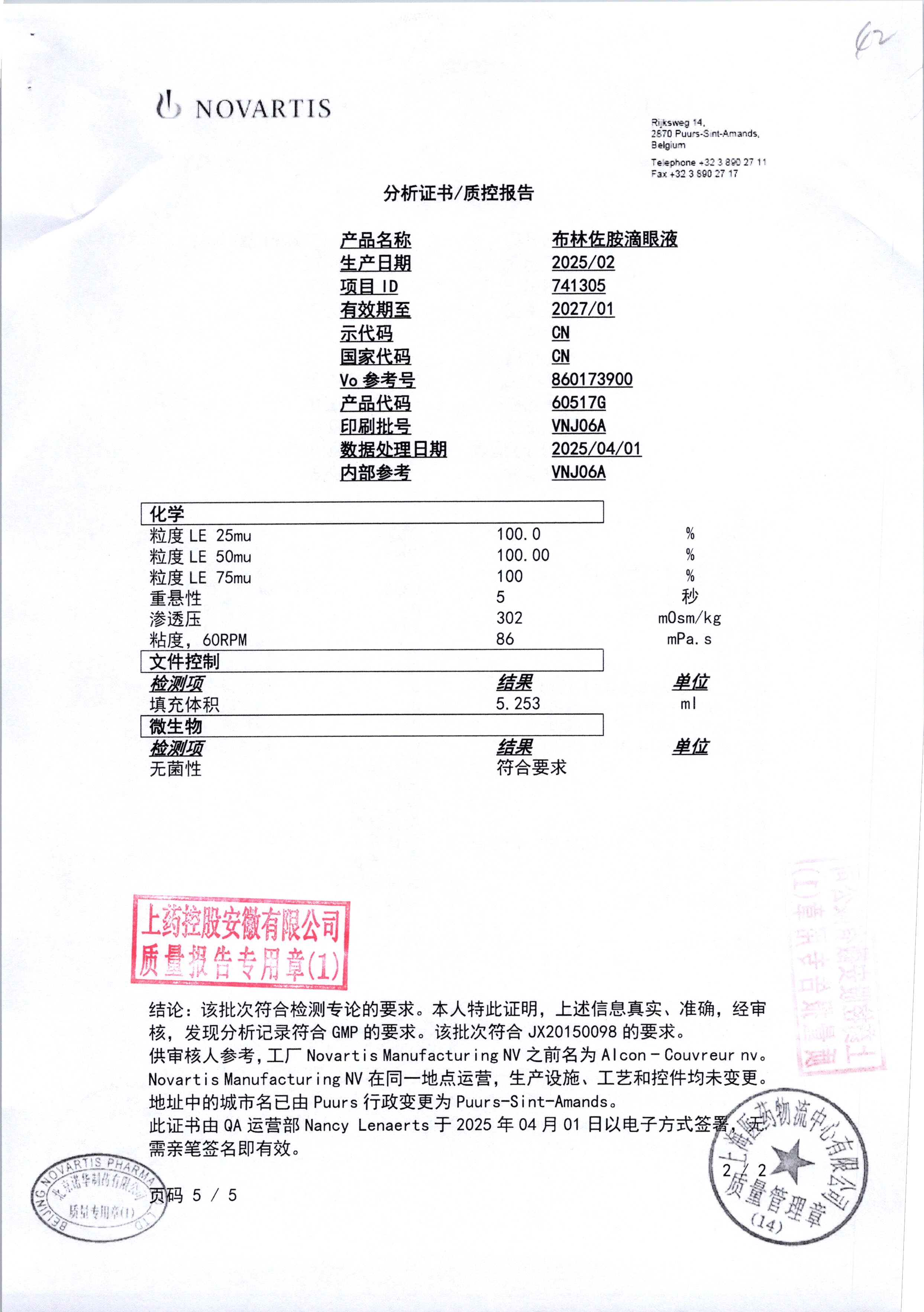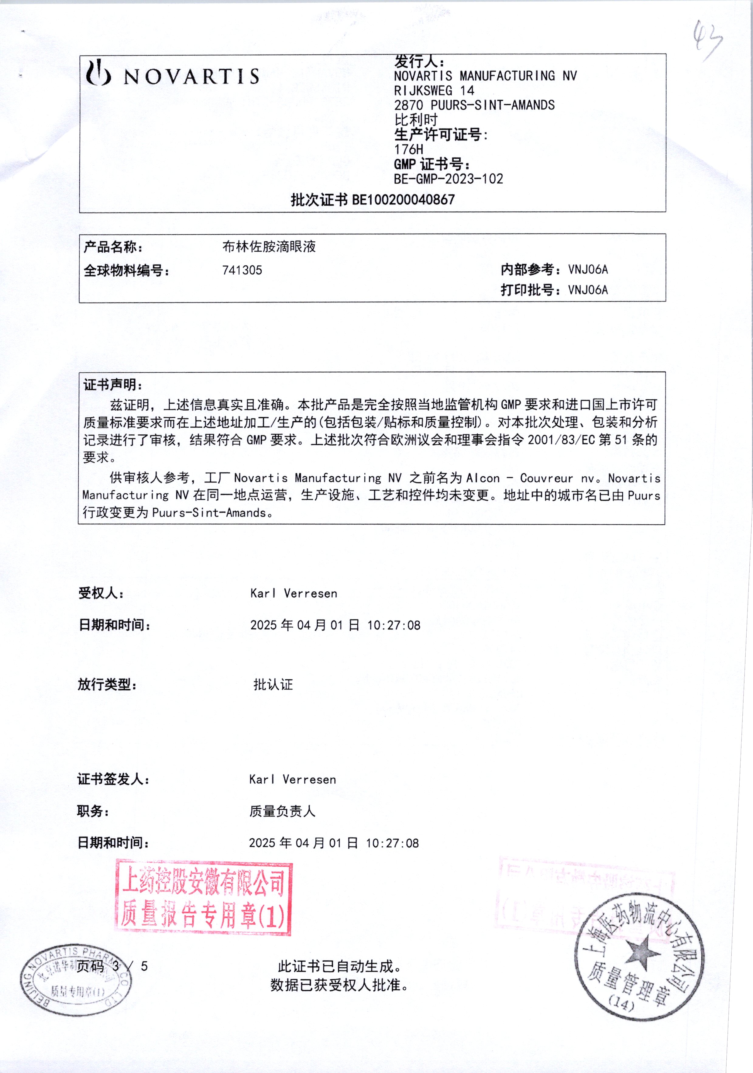 | 布林佐胺滴眼液 | 5ml:50mg | VNJ06A/10 | 查看详情 |