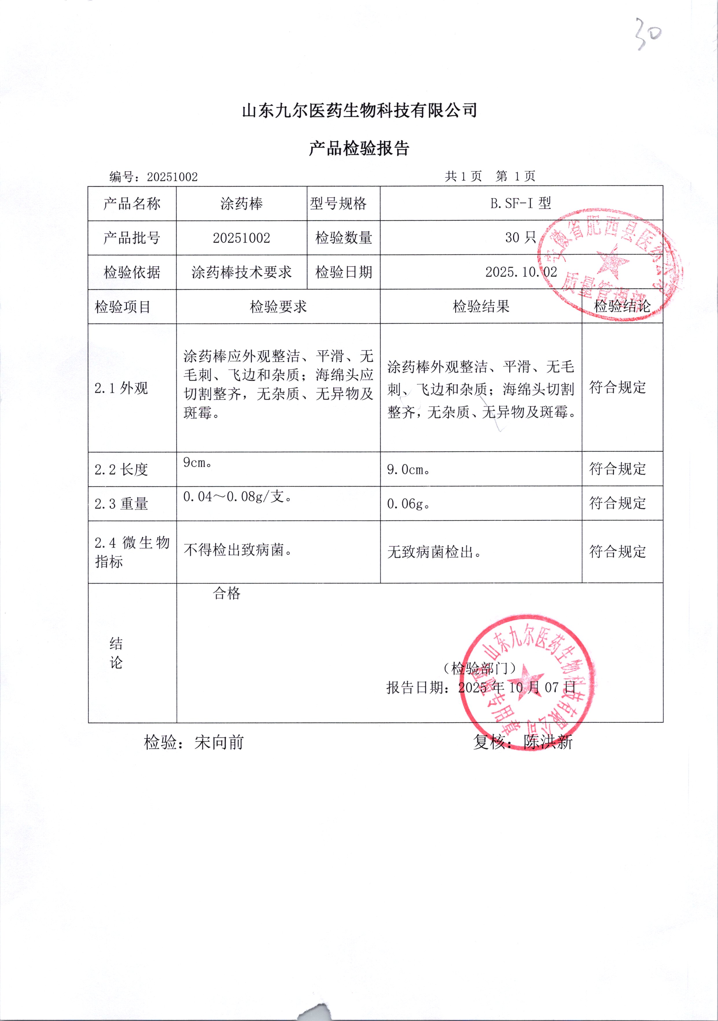 药检报告