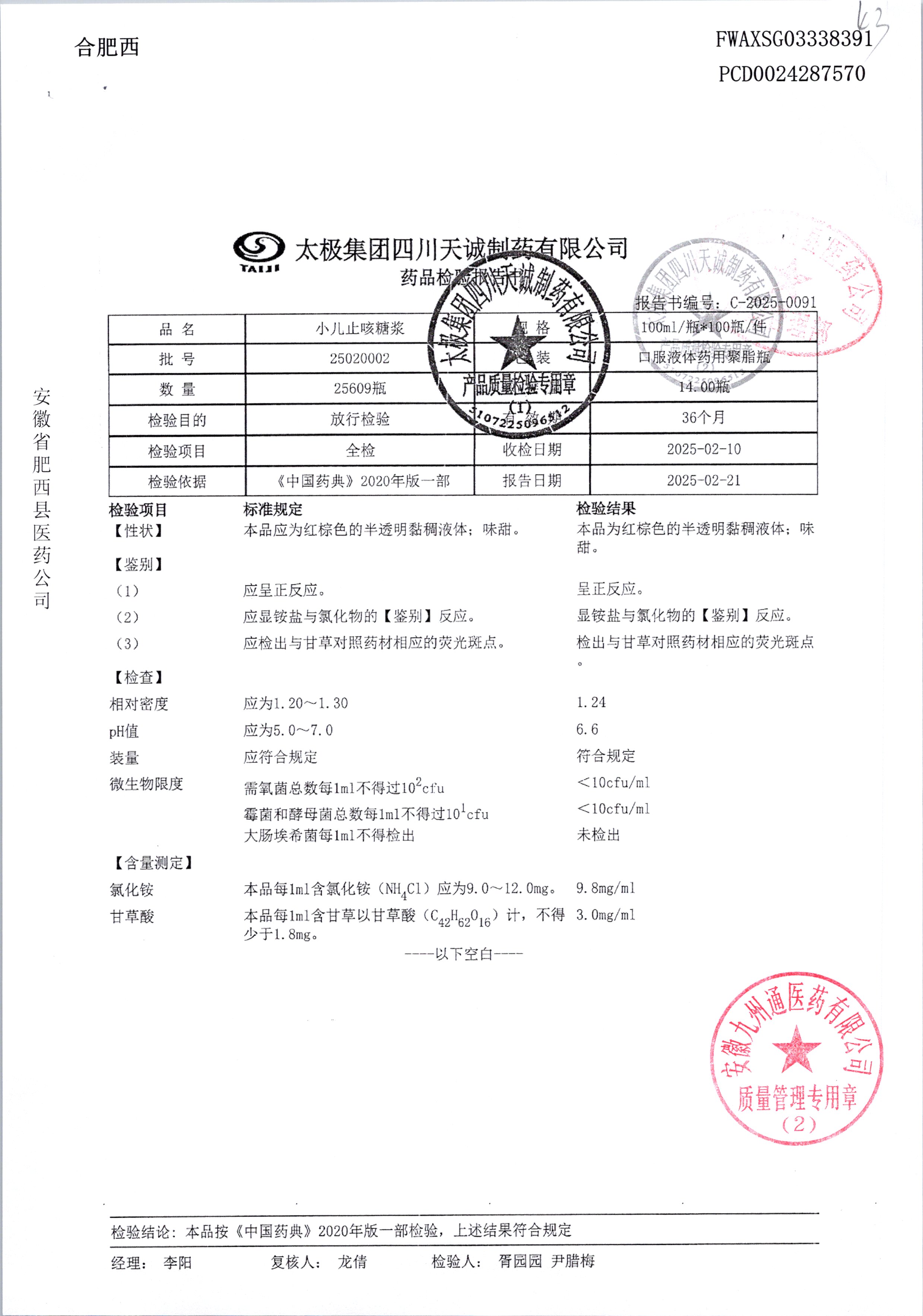 药检报告