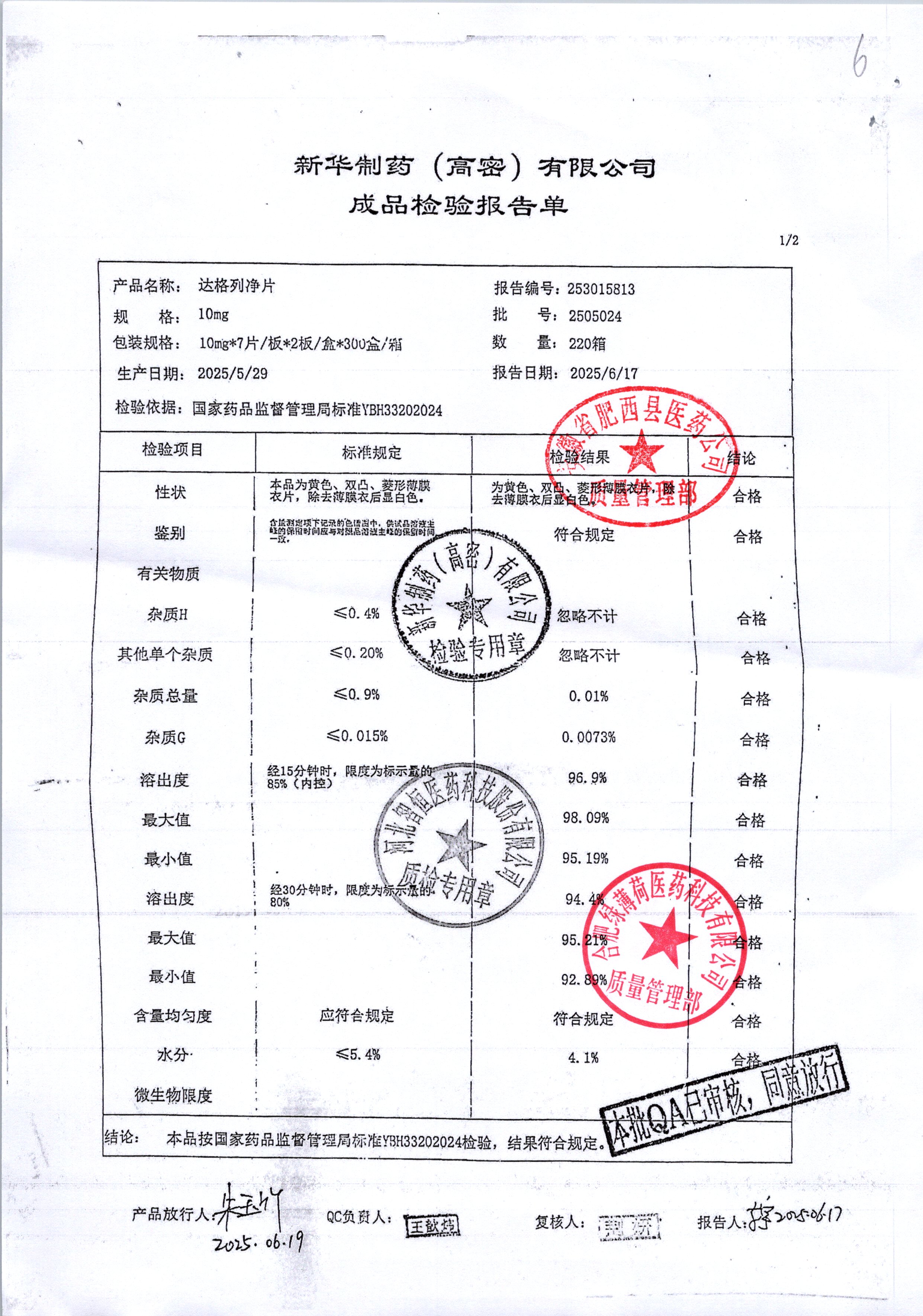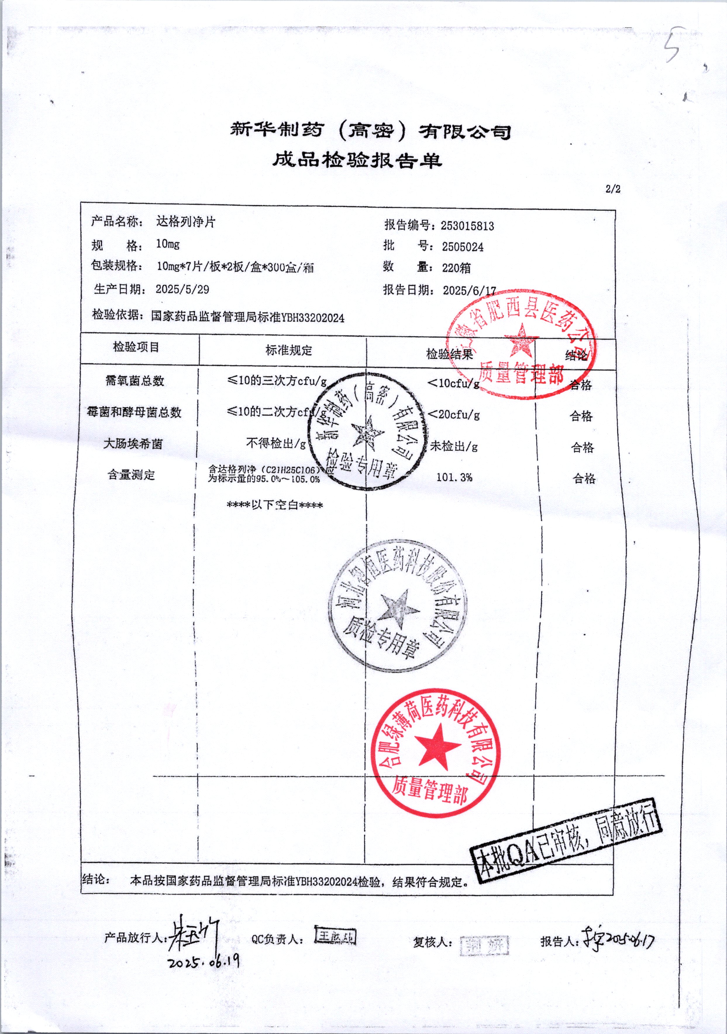 药检报告