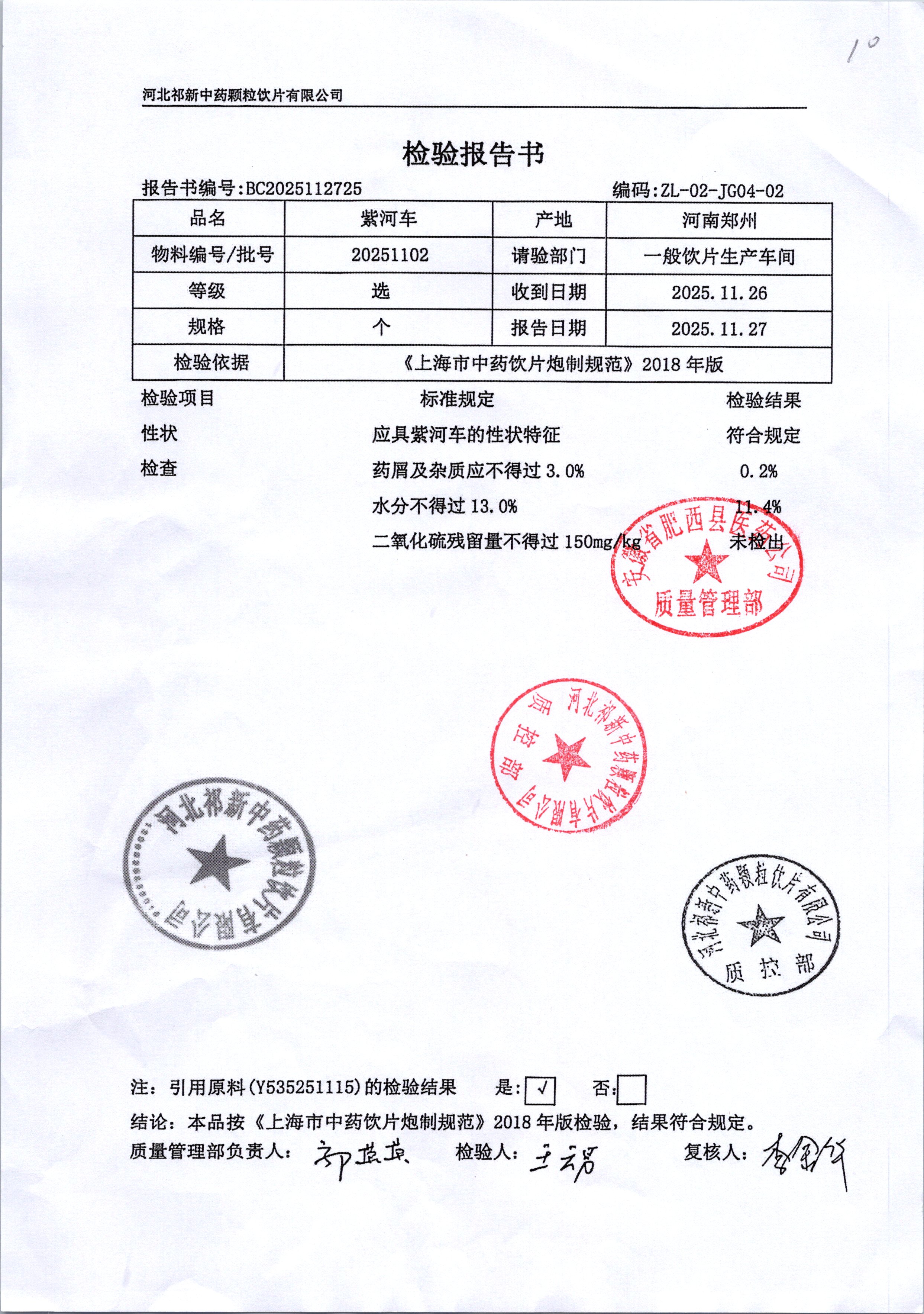 药检报告