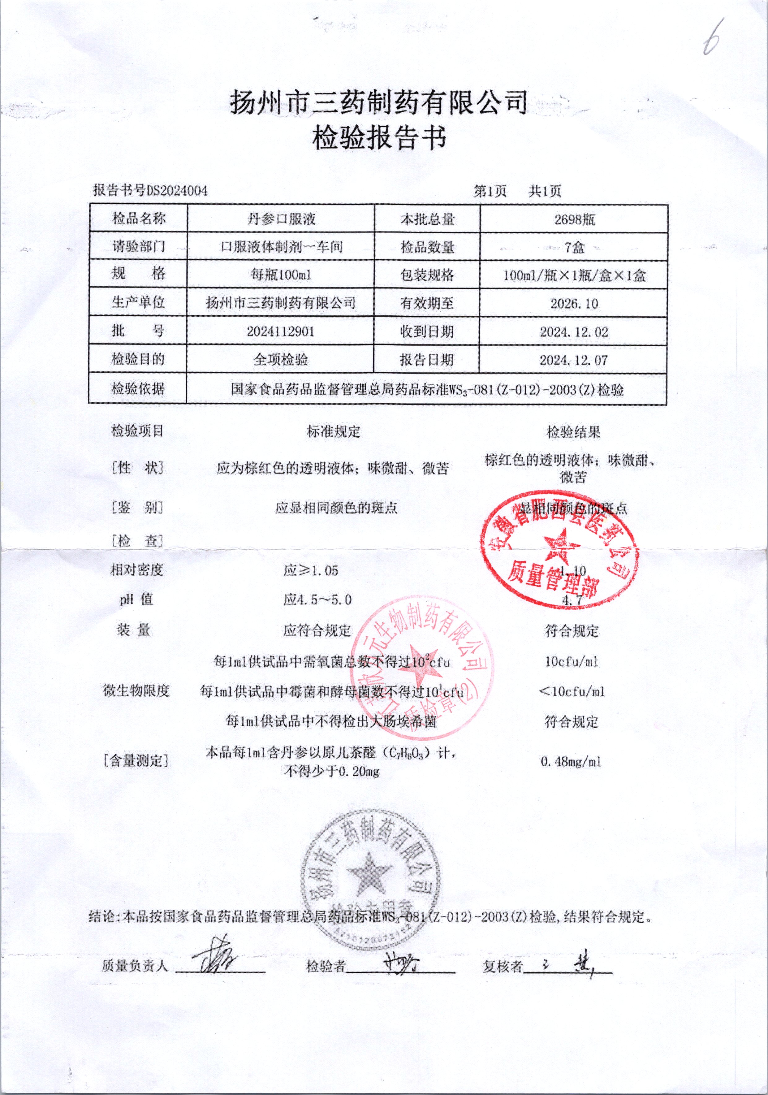 药检报告