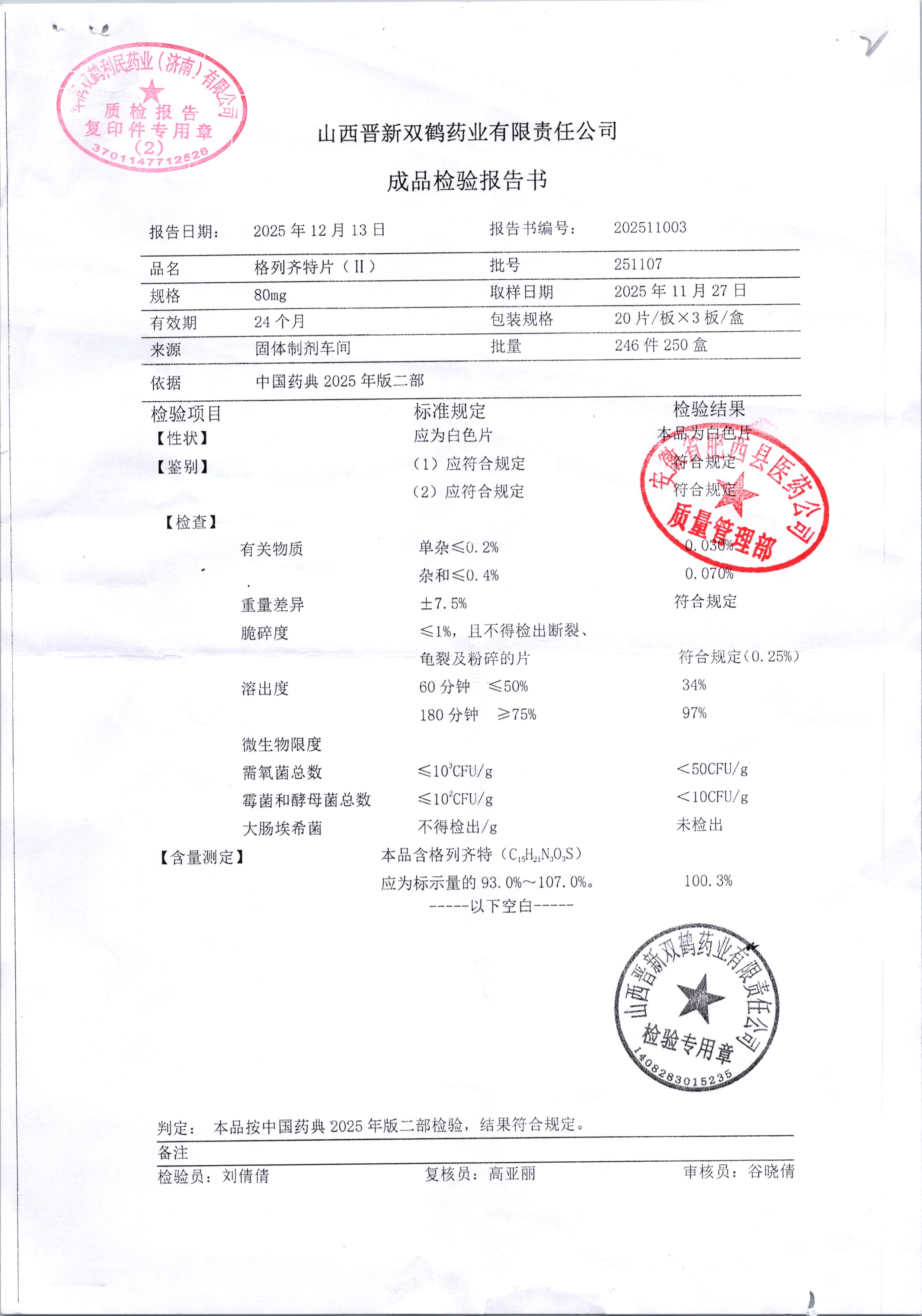药检报告