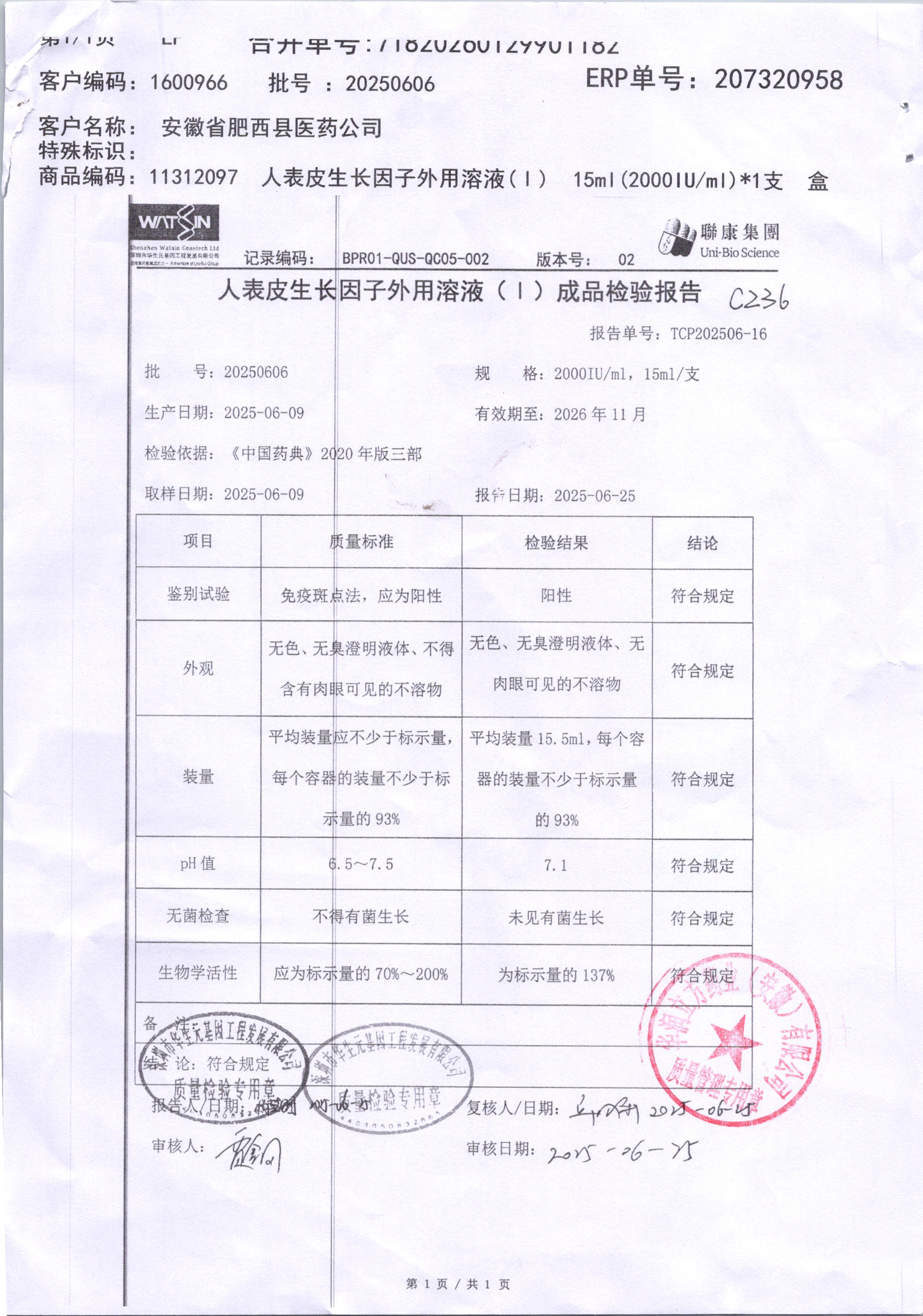 药检报告